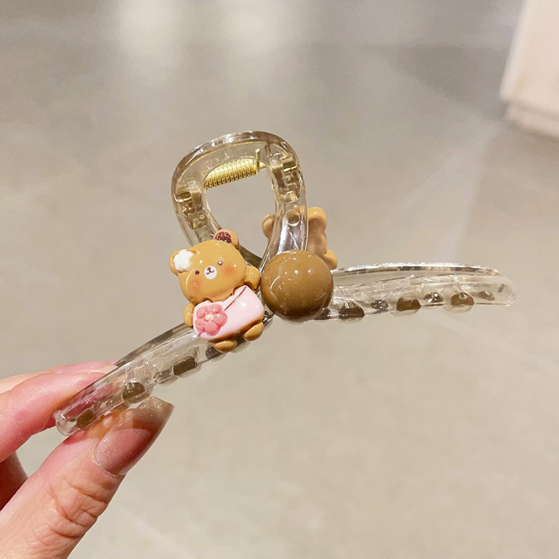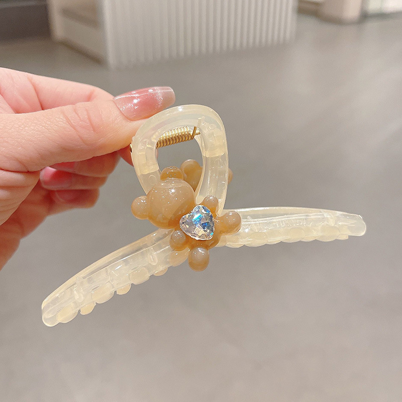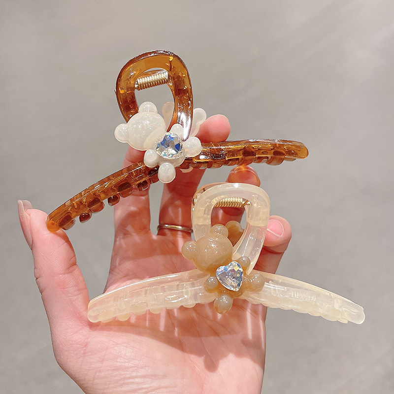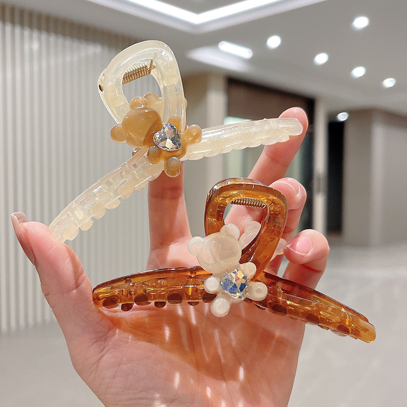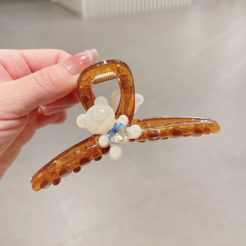 밀크 티 컬러 베어 성인 여성 등 상어 클립 헤어핀 고급 센스 헤어 그랩 대형 헤드웨어 라인스톤 그랩 클립