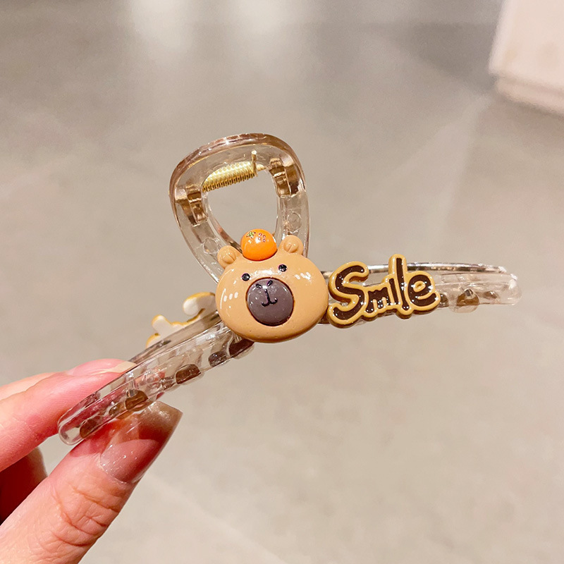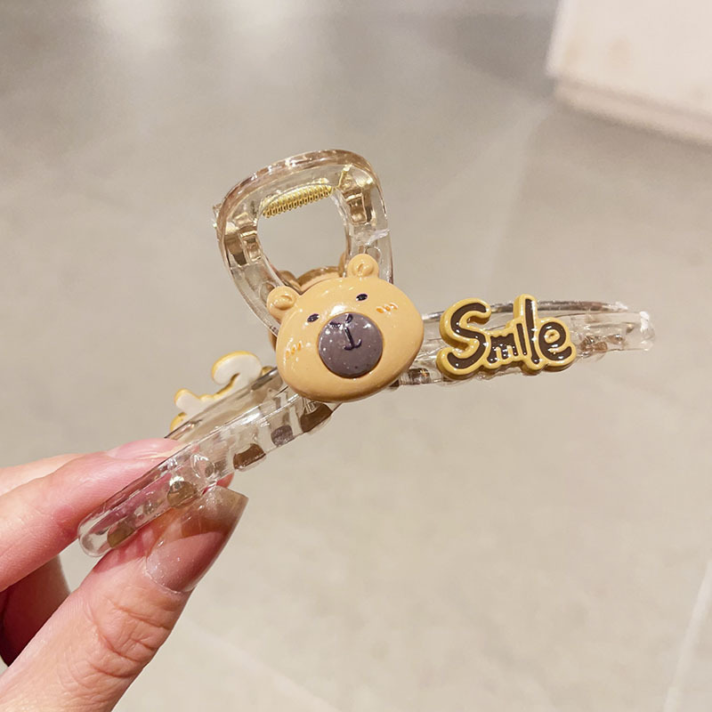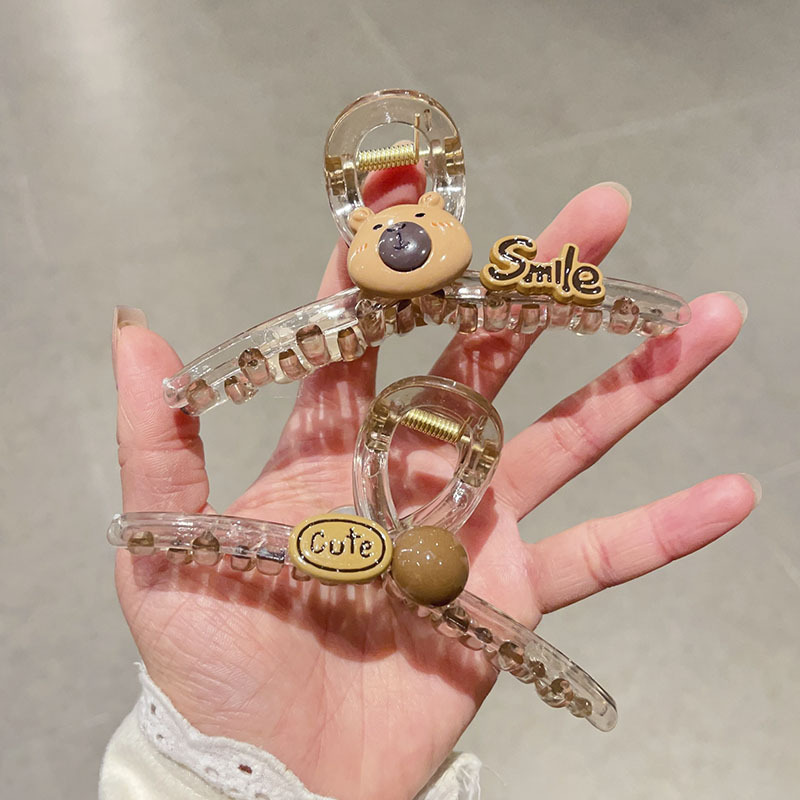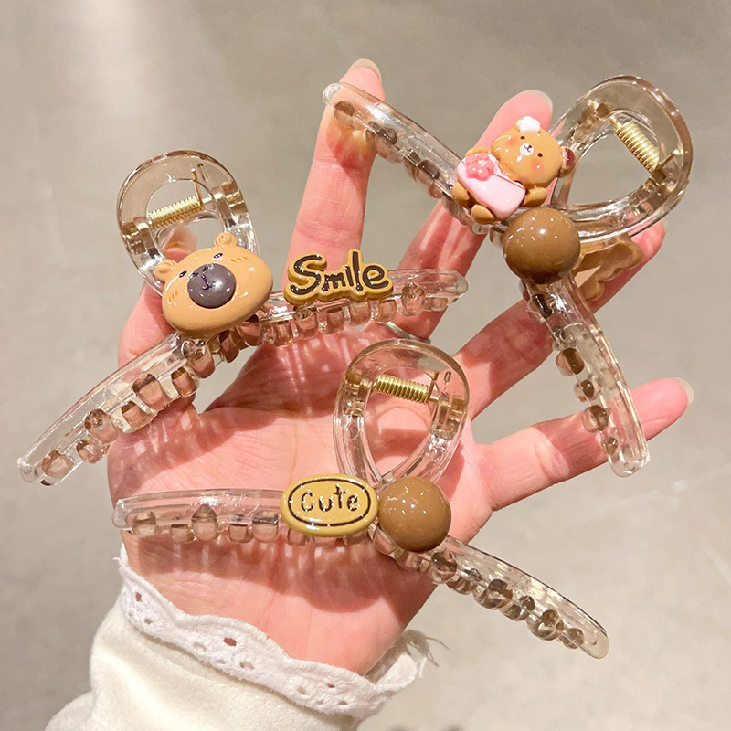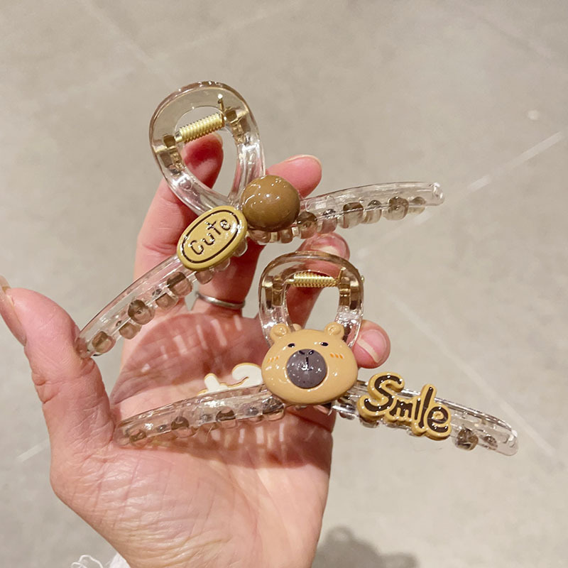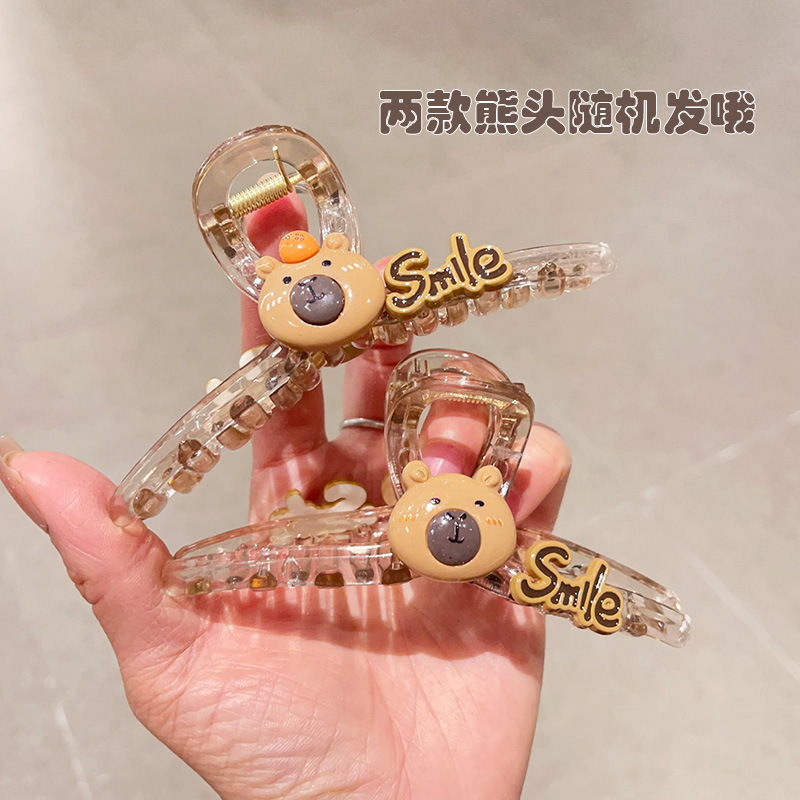밀크 티 컬러 베어 성인 여성 등 상어 클립 헤어핀 고급 센스 헤어 그랩 대형 헤드웨어 라인스톤 그랩 클립