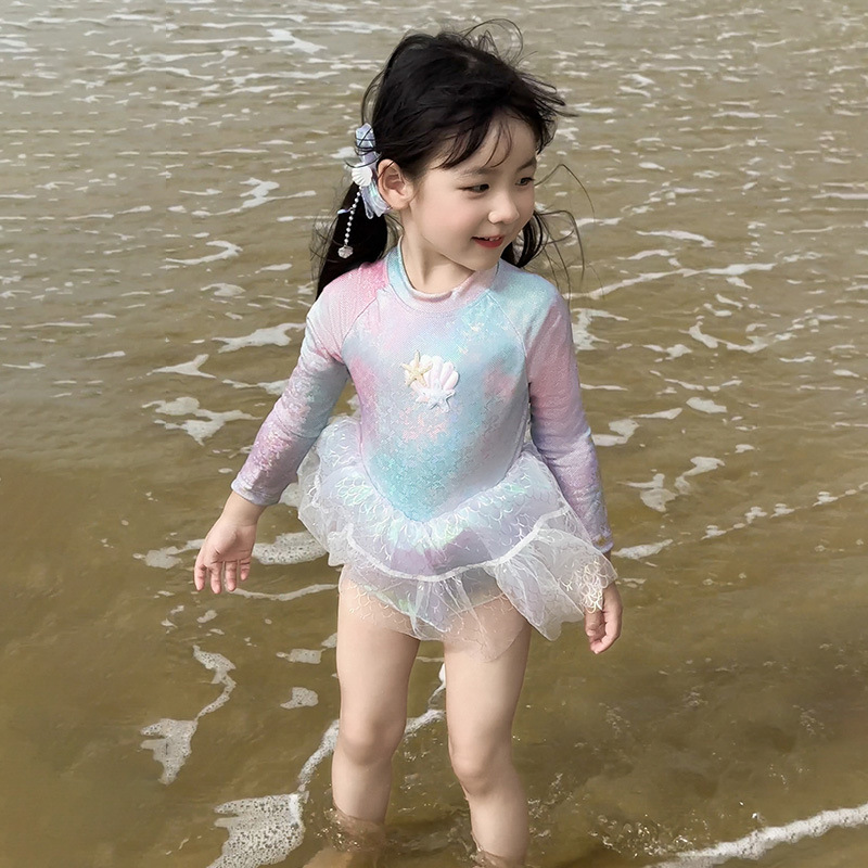 어린이 수영복 소녀 2025 새 어린이 불가사리 쉘 공주 온천 수영복 여자 수영복