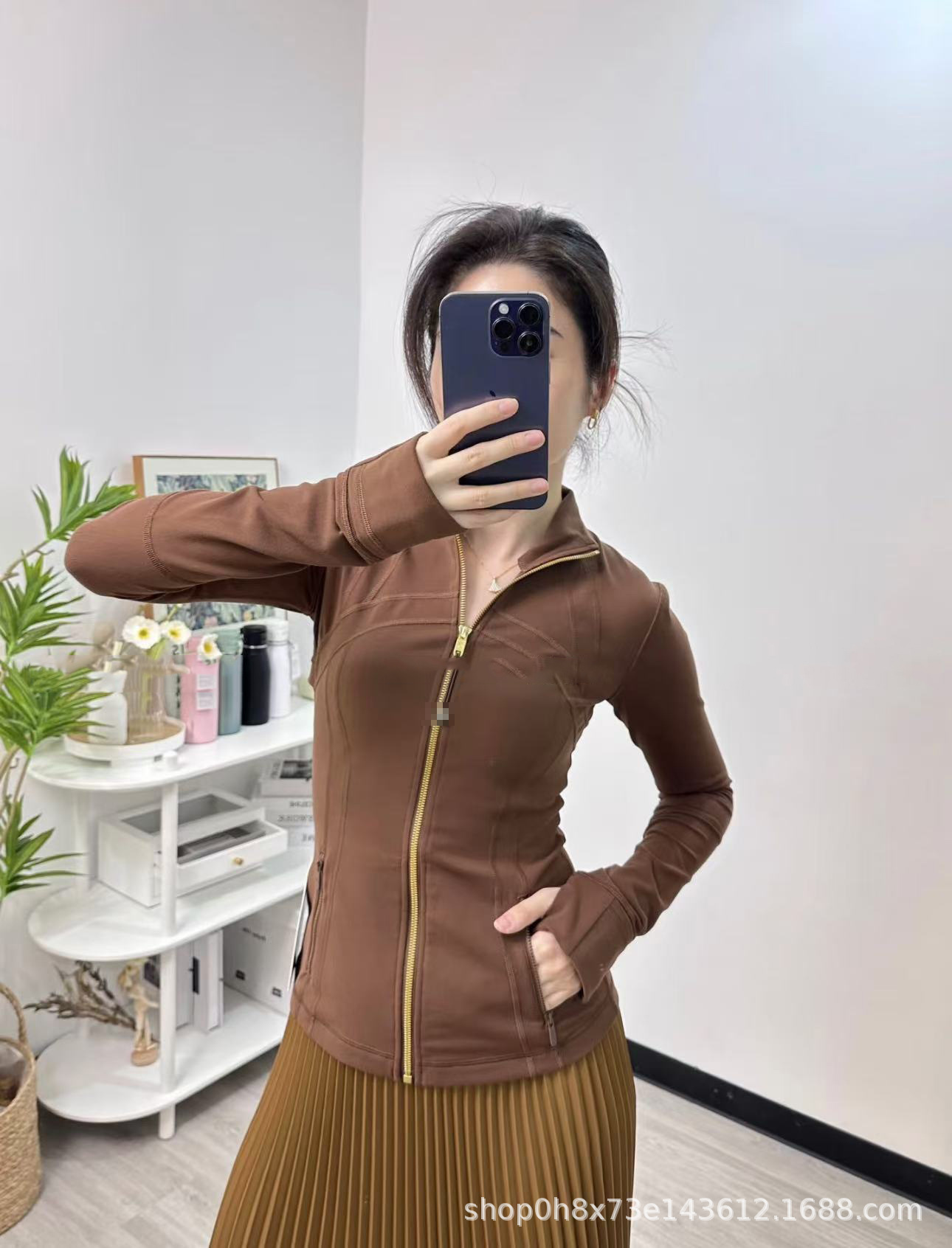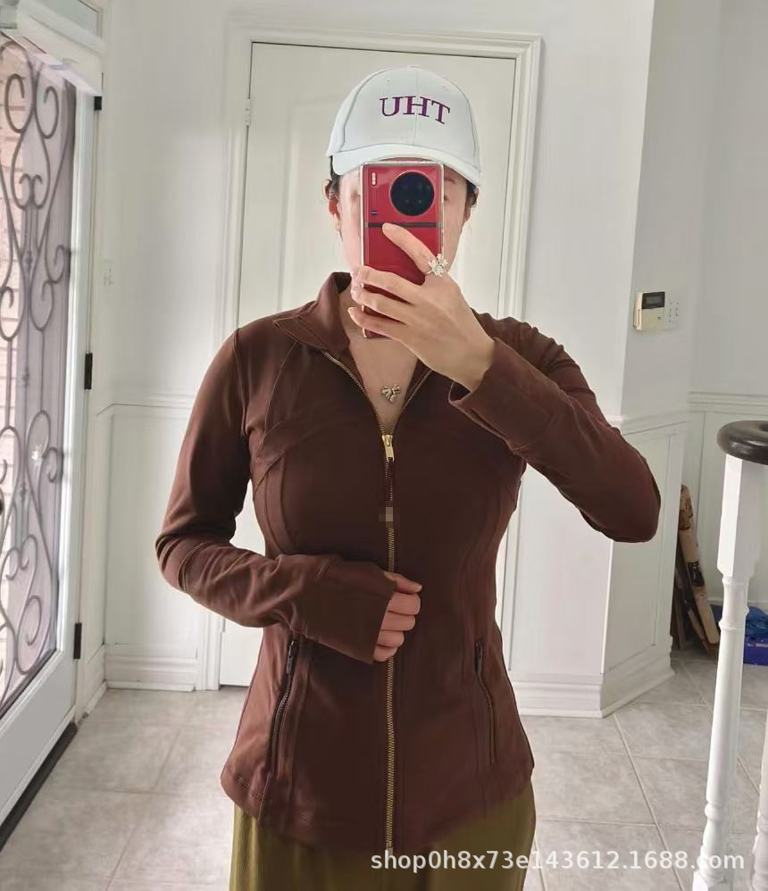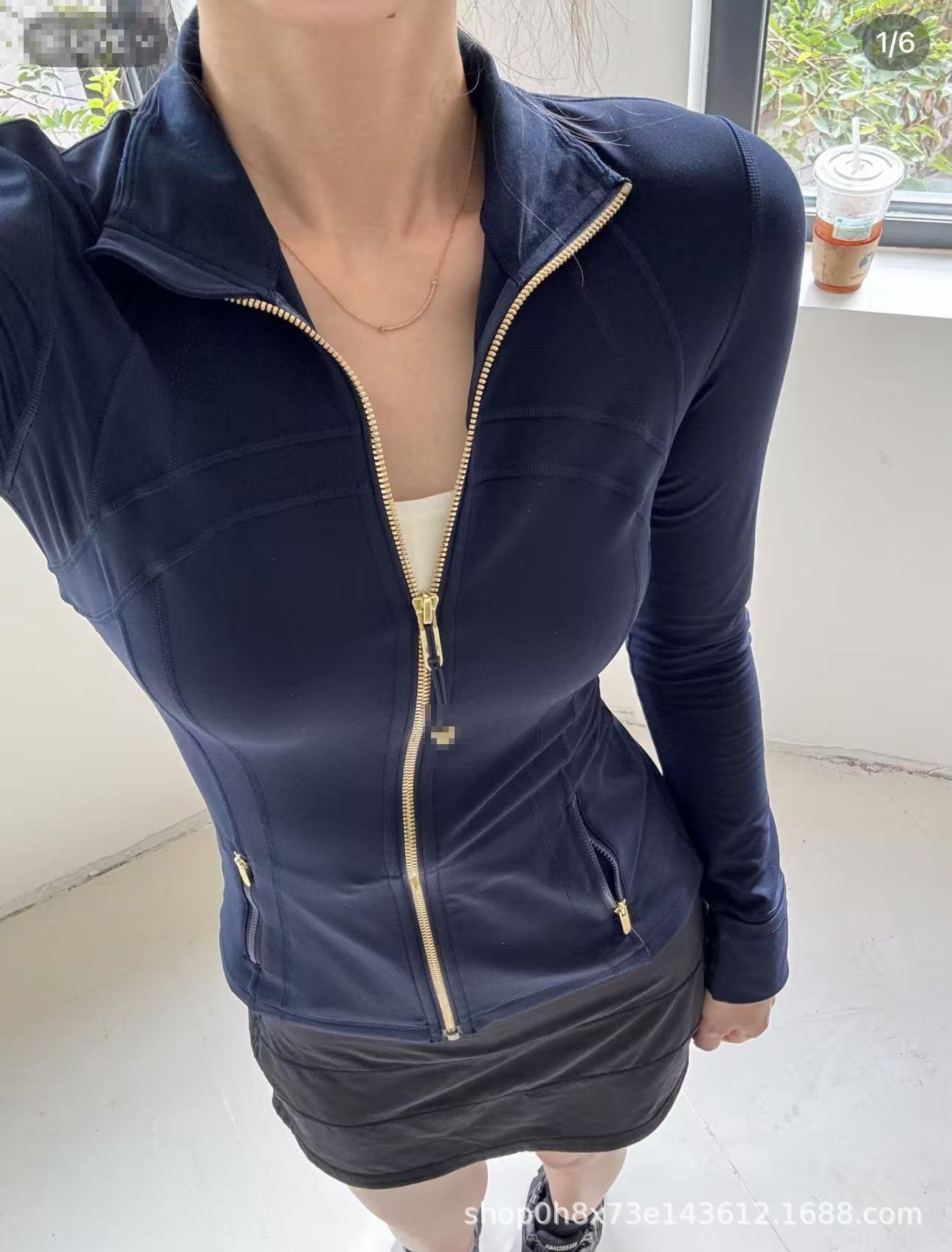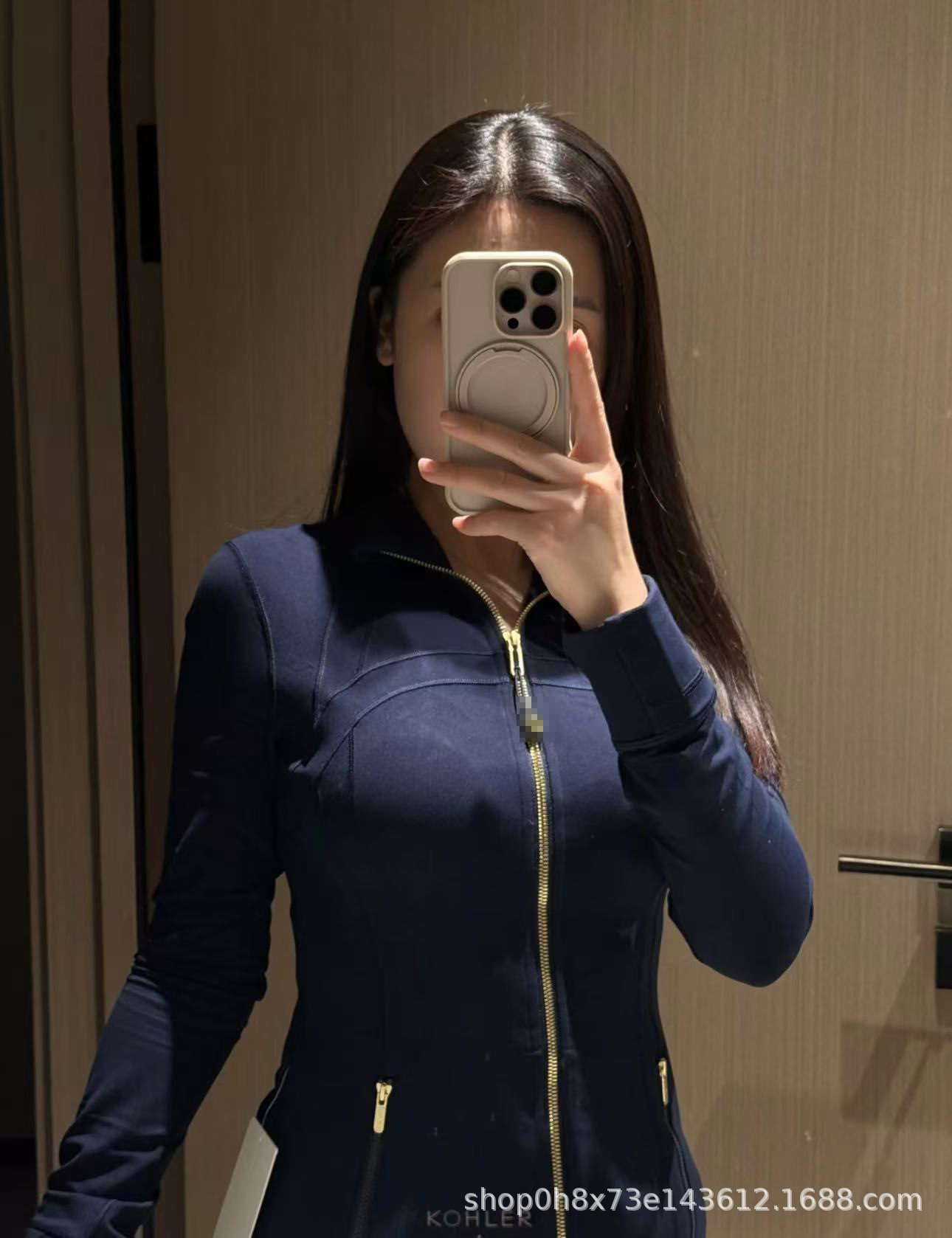 룰루 동일 스타일 정의 골드 라벨 사쿠라 꽃 요가 세트 스포츠 골드 지퍼 타이트 슬림 재킷 코트 여성