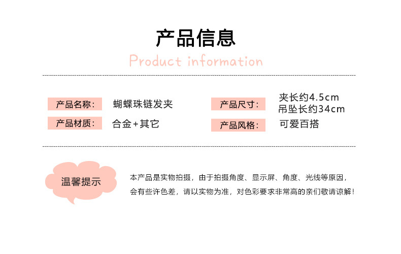 • 3#라이트 핑크 비드 체인 클립 1쌍