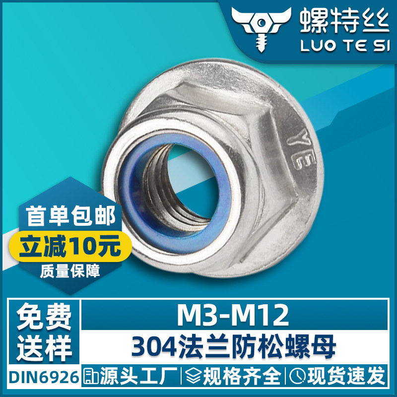 304 스테인레스 스틸 육각형 가스켓 플랜지 너트 나일론 잠금 너트 201 자체 잠금 잠금 너트 M4/M5/M6스토어 가기