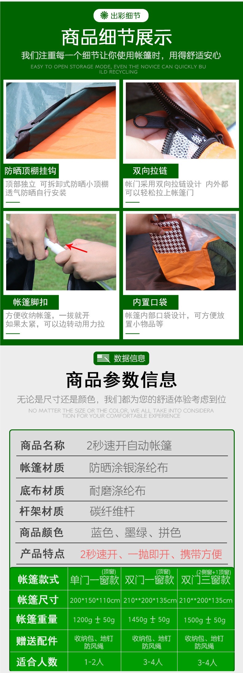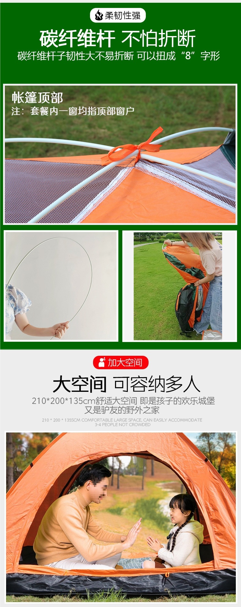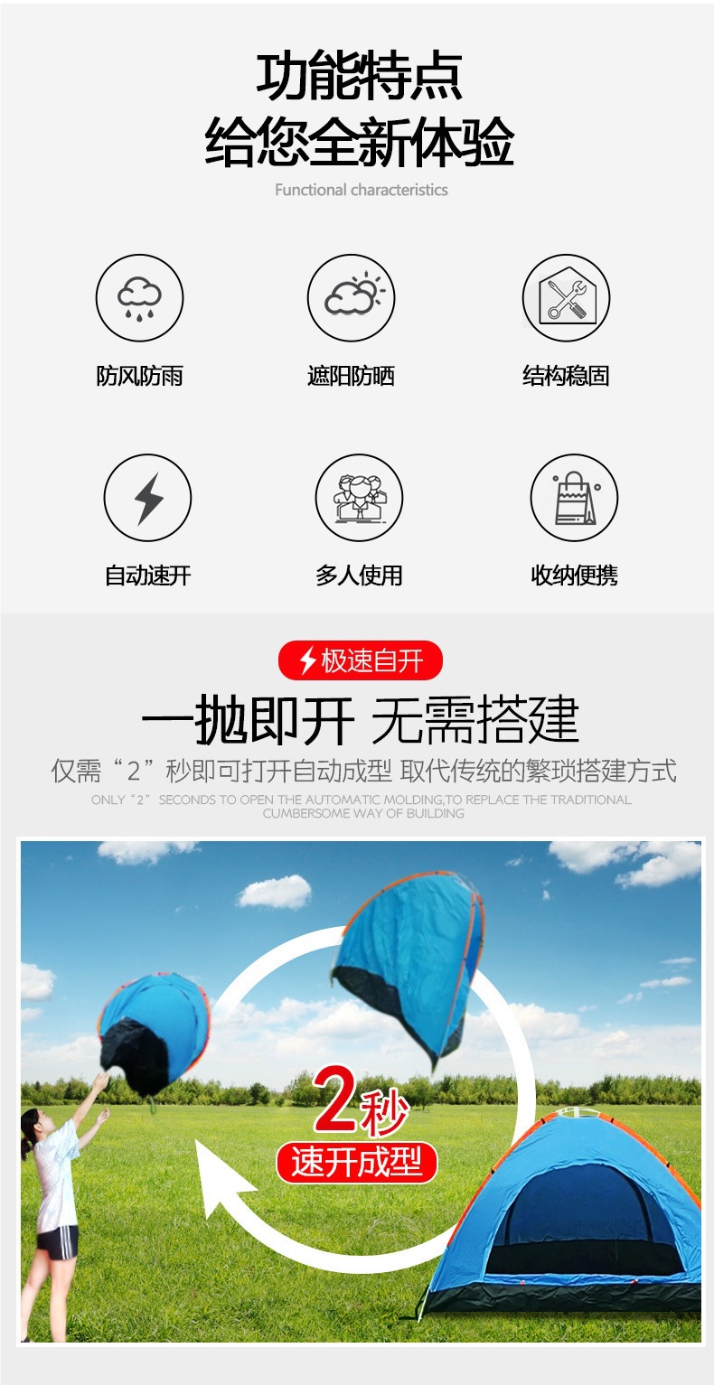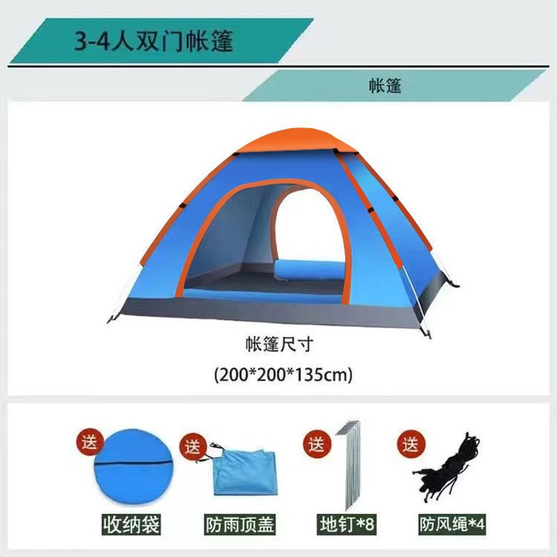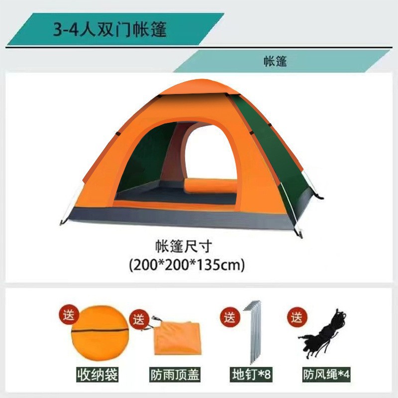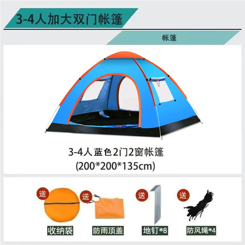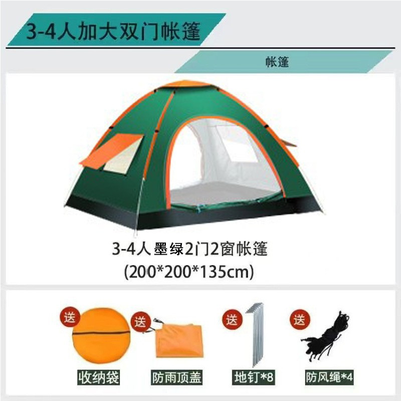 야외 캠핑 텐트, 완전 자동, 2인용, 이중 접이식, 야외용 3~4인용, 휴대용 보관함, 경량, 일회용스토어 가기