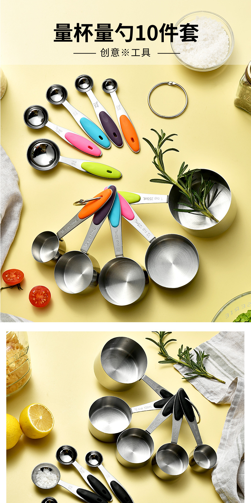 국경 스테인리스 측정 컵 측정 숟가락 10 개 세트 주방 베이킹 측정 컵 측정 숟가락 세트 가정용 측정 숟가락스토어 가기