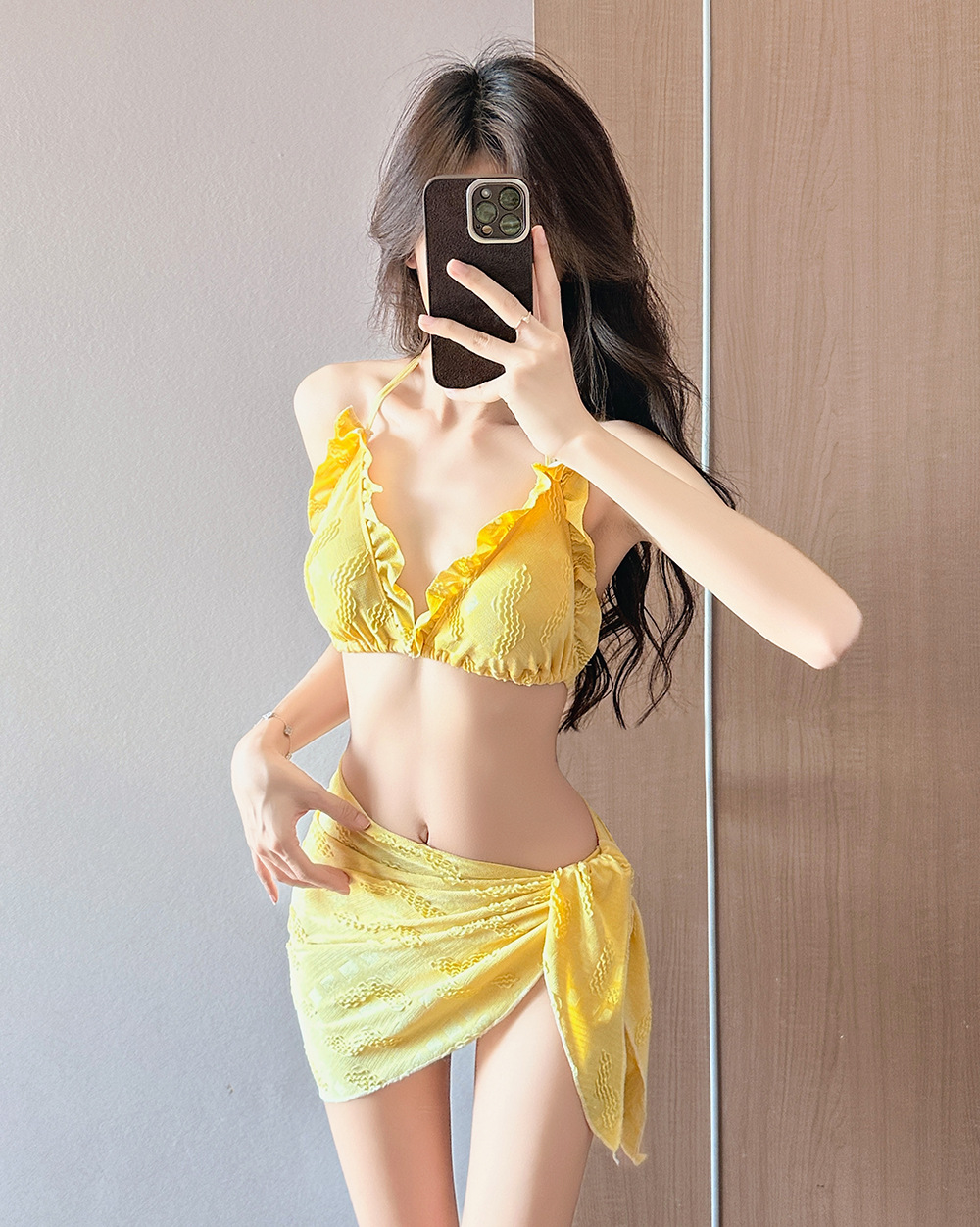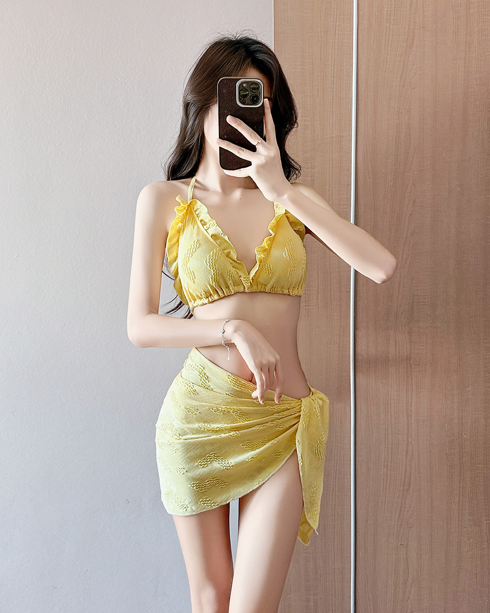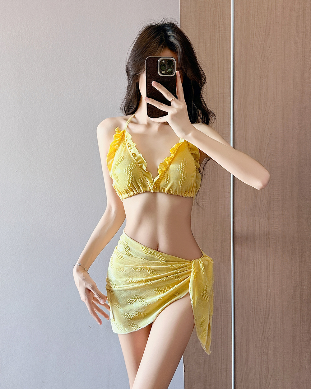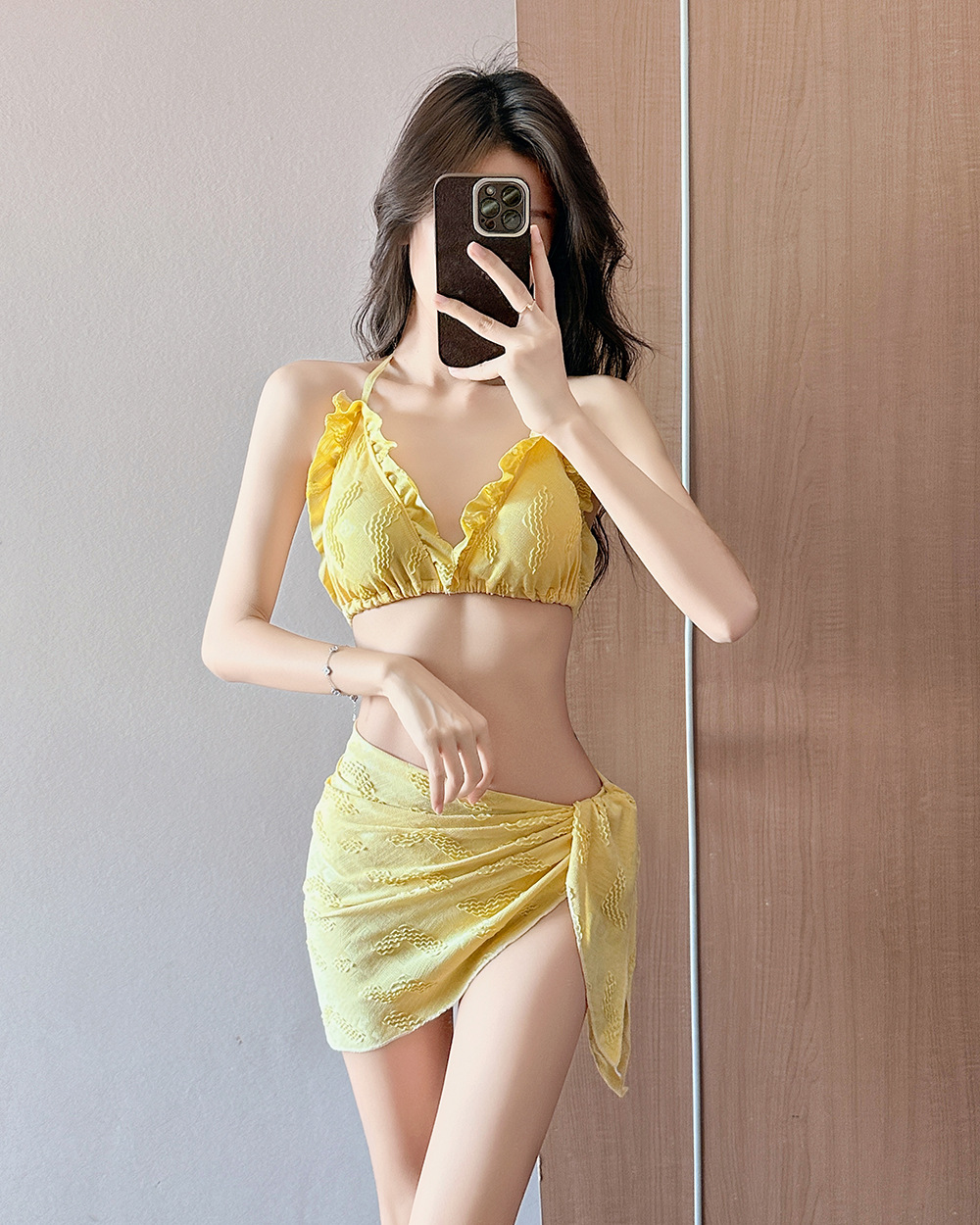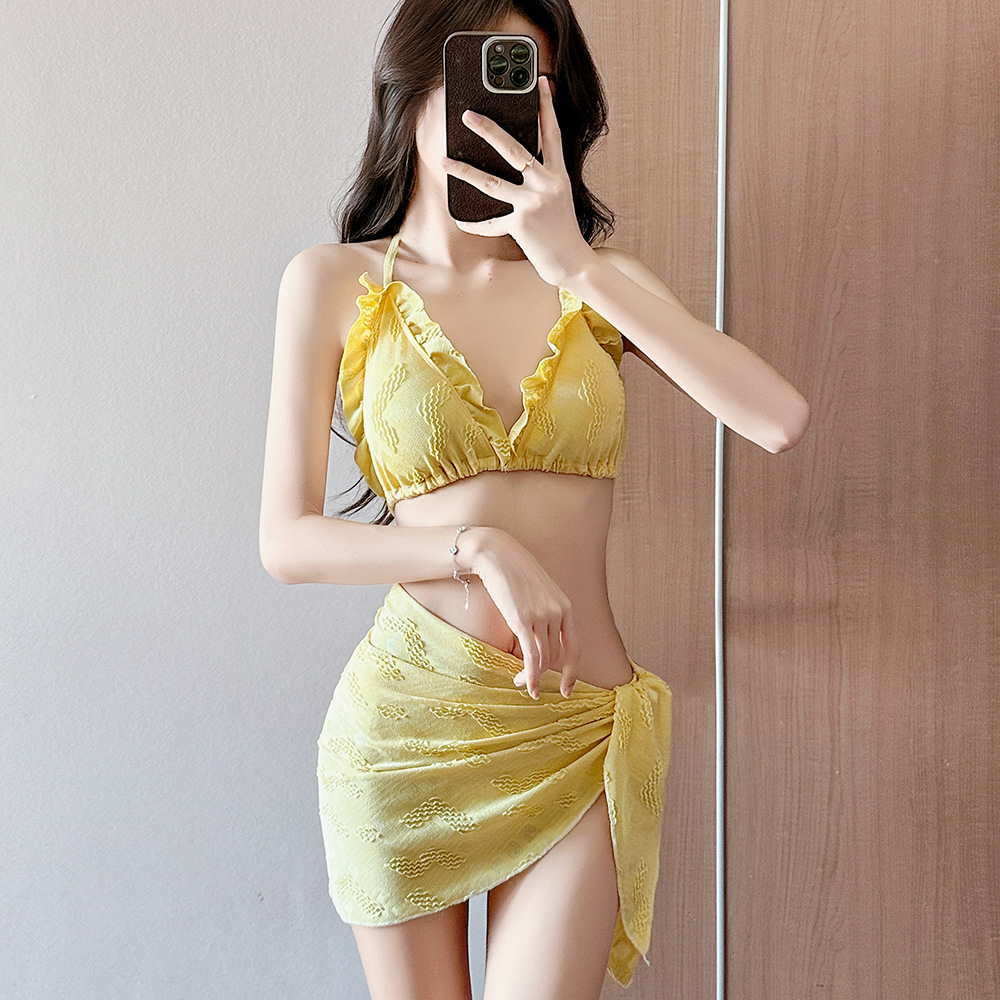 인기 일본 및 한국 수영복 여성 2025 흰색 귀여운 섹시한 비키니 로우 웨이스트 3점 비치 비키니 휴가스토어 가기