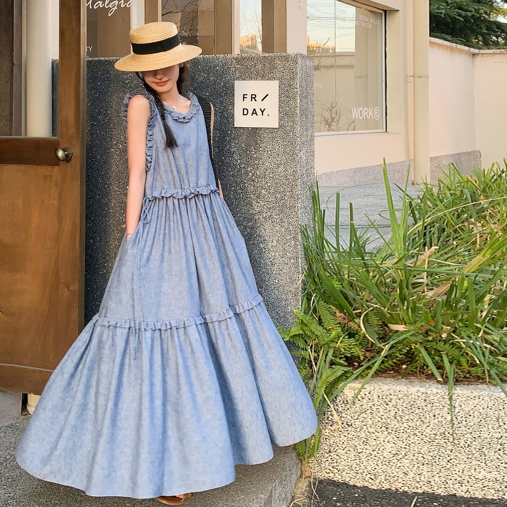 리얼 샷 프랑스 로맨틱 스타일 나무 귀 원피스 2025 새로운 drawstring 느슨한 양면 조끼 스커트스토어 가기