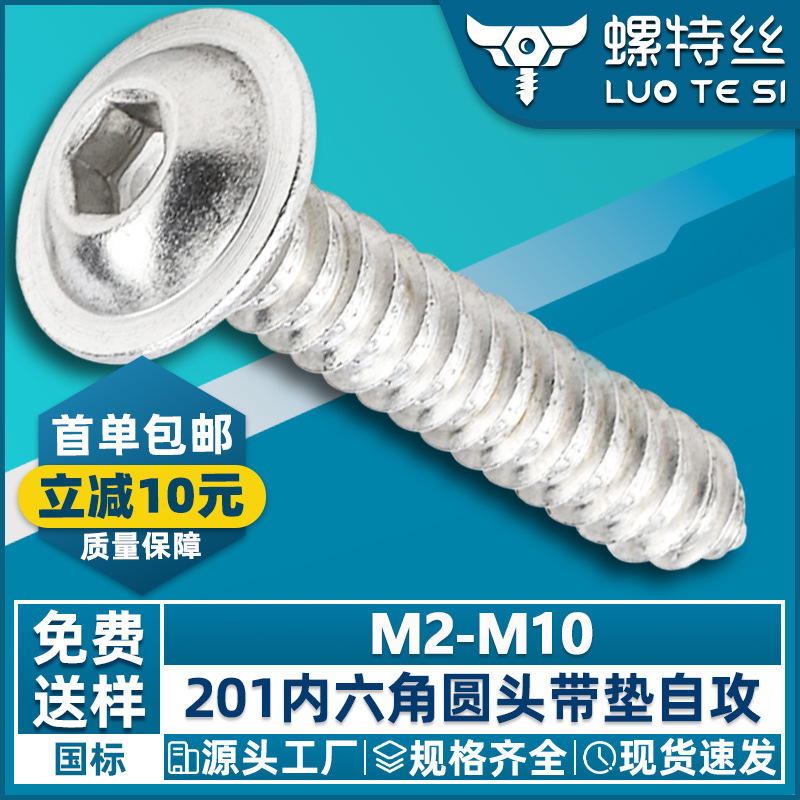 201 스테인레스 스틸 둥근 머리 육각 소켓 나사(패드 포함) 팬 헤드 육각 소켓 태핑 나사 M2.5/M3스토어 가기