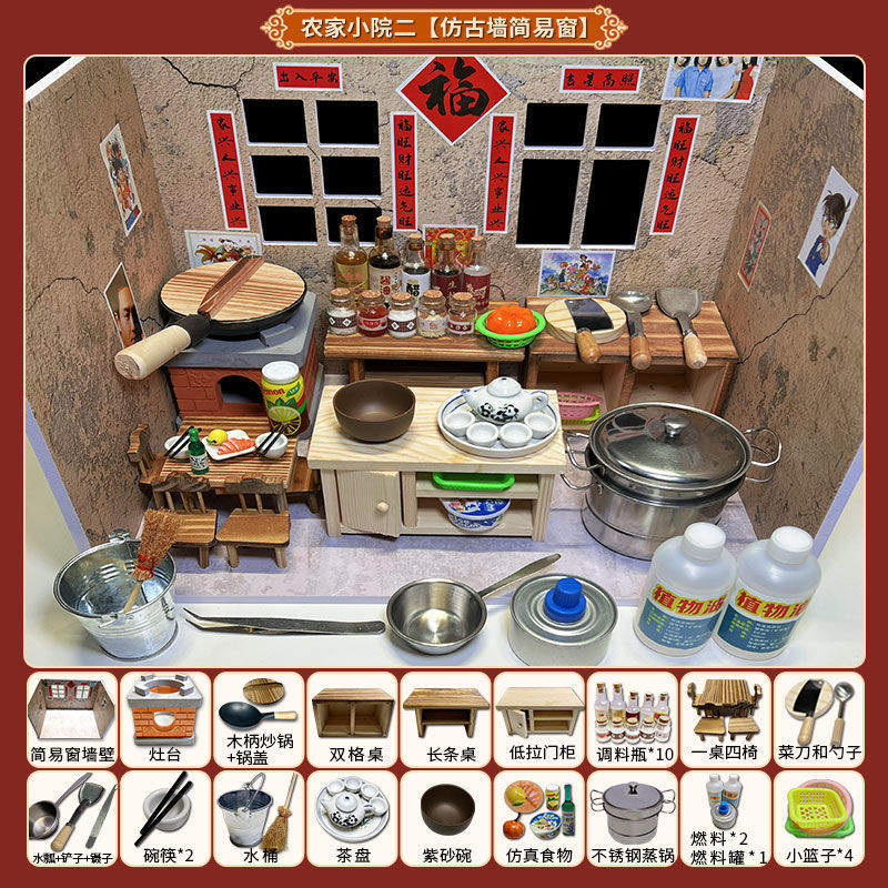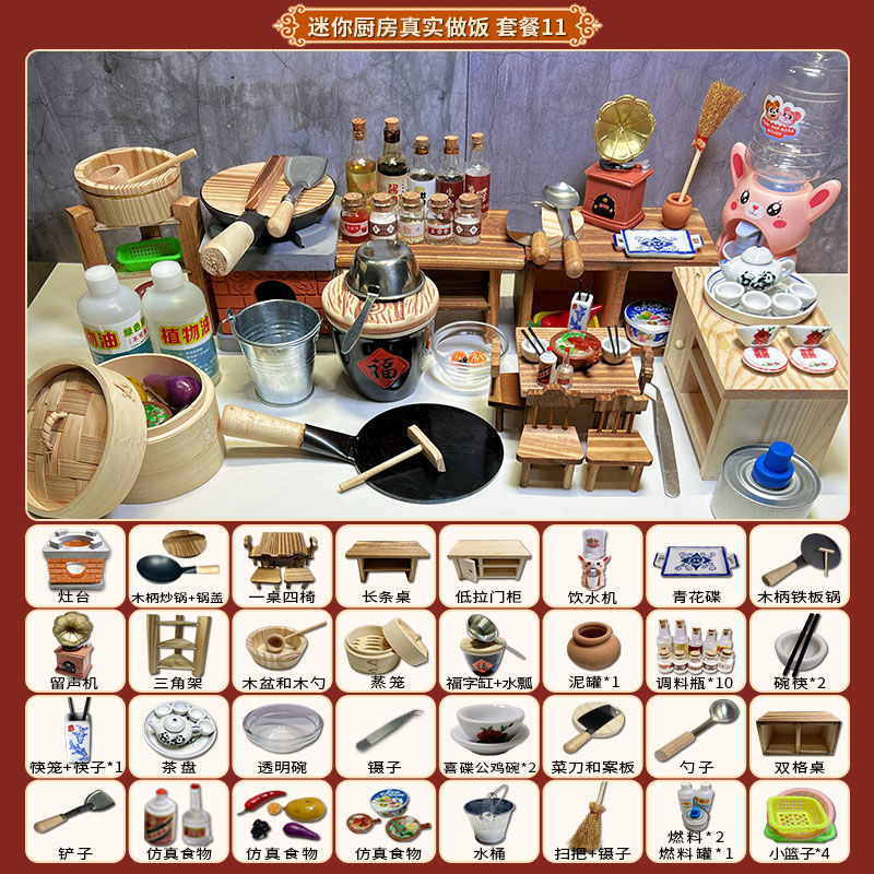 2025 새로운 미니 주방 스토브 어린이 놀이 집 장난감 음식 놀이 미니어처 하우스 농장 전체 세트 실제 요리스토어 가기