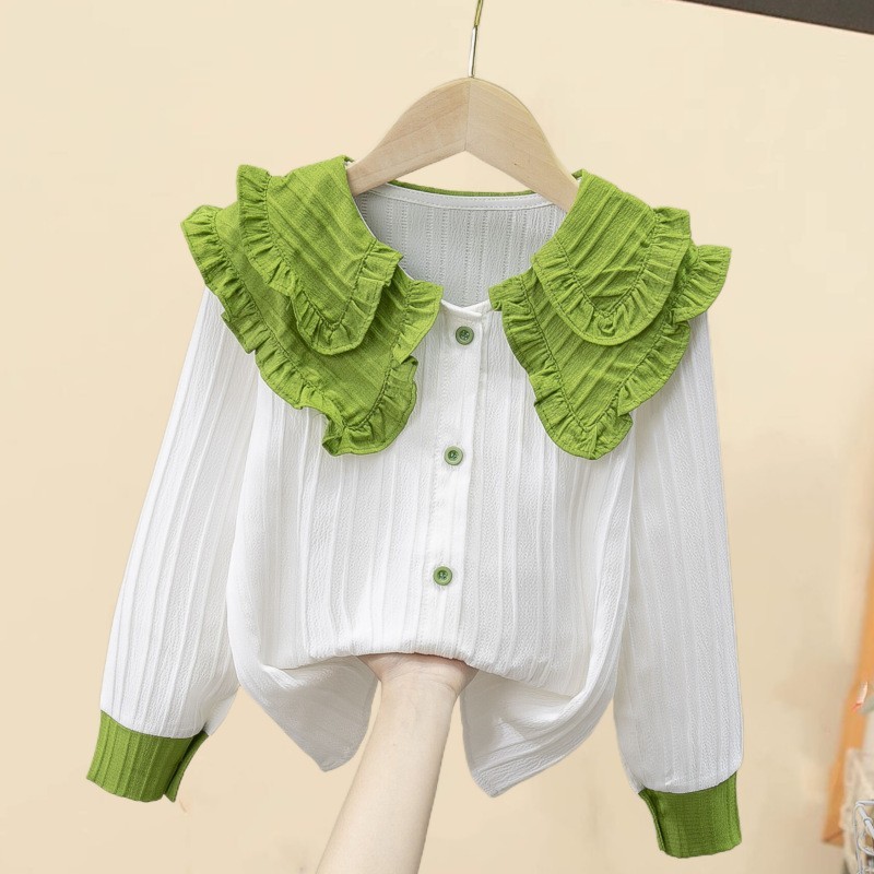 아동용 셔츠 레이스 화이트 여아 하의 셔츠 탑 자외선 차단 의류 중소형 아동복 학생 쉬폰 긴팔