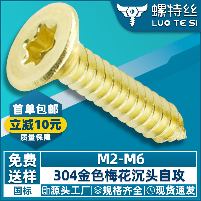 304 스테인레스 스틸 금도금 매화 흡입 머리 태핑 나사 매화 헤드 플랫 헤드 태핑 나사 M3/M4/M5/M6