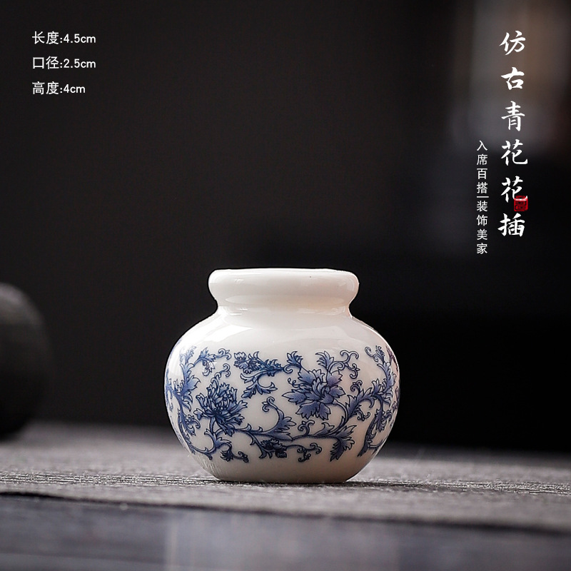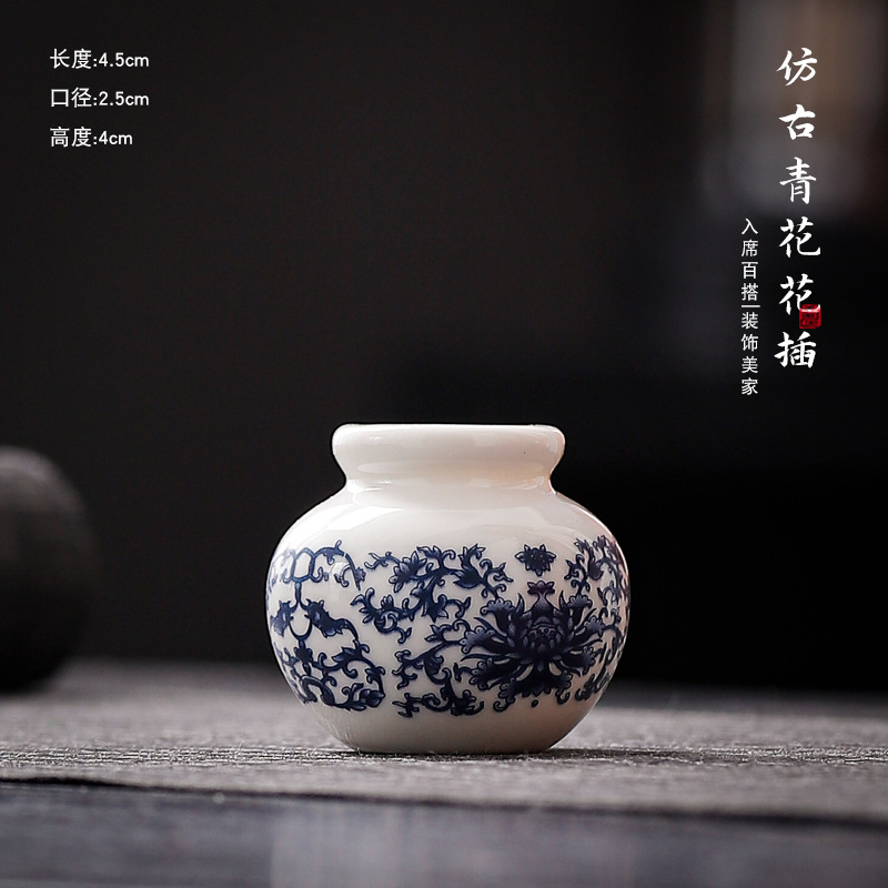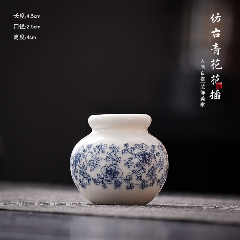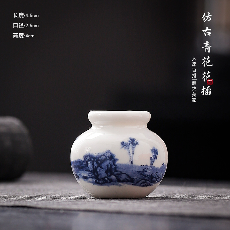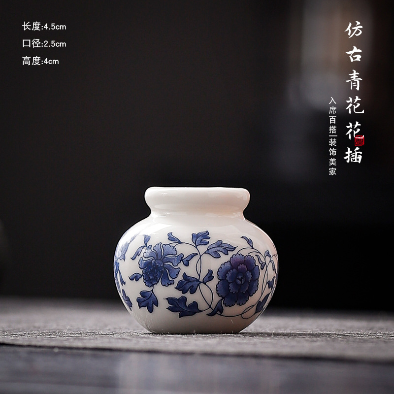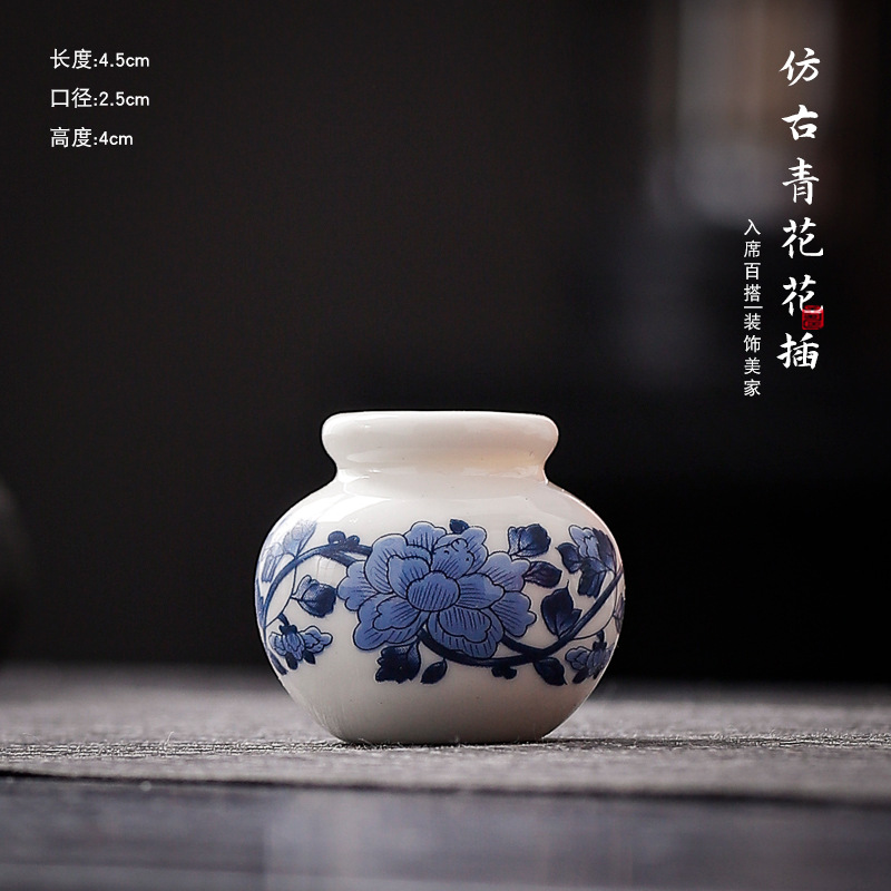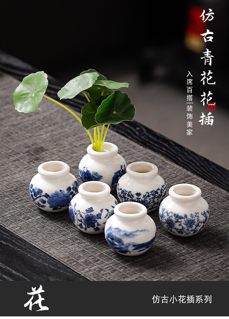 미니 작은 꽃병 장식품 창조적 인 파란색과 꽃 작은 항아리 세라믹 데스크탑 장식 비 다공성 수경 국경