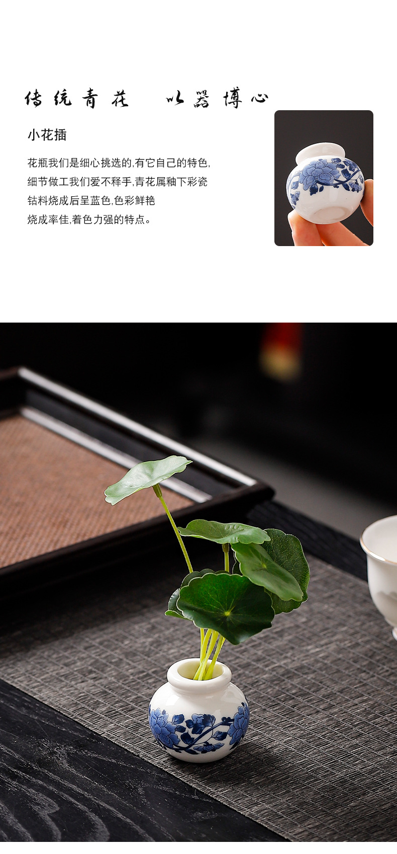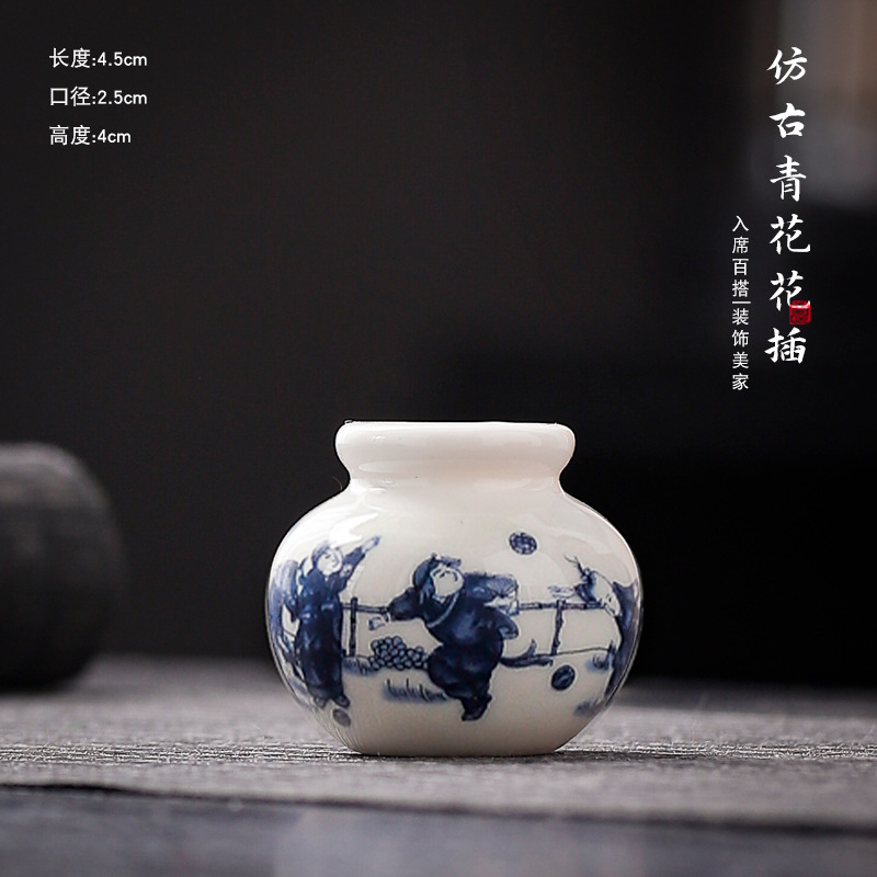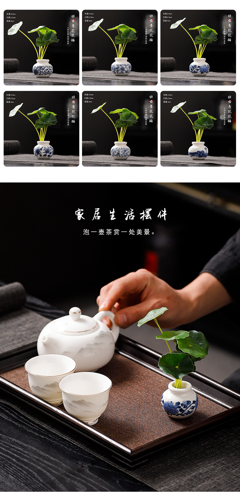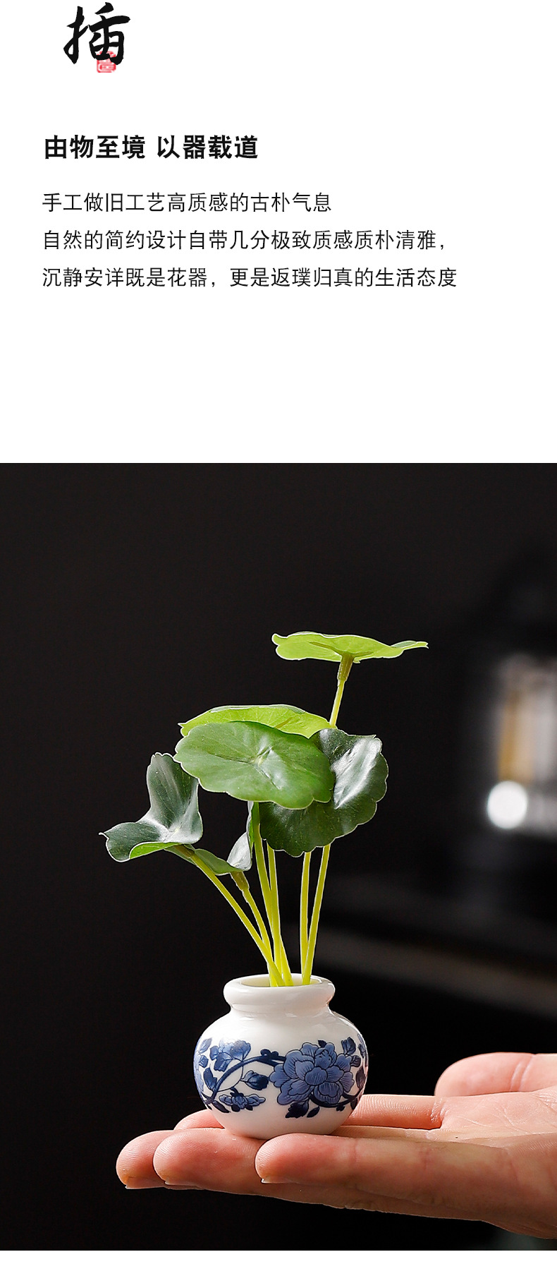 미니 작은 꽃병 장식품 창조적 인 파란색과 꽃 작은 항아리 세라믹 데스크탑 장식 비 다공성 수경 국경