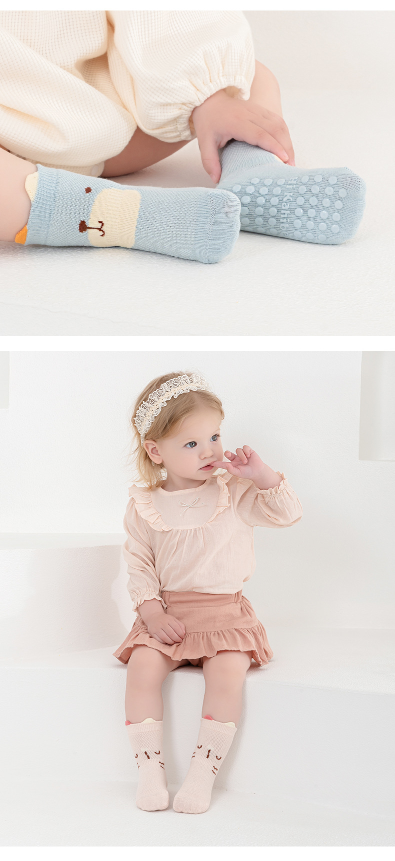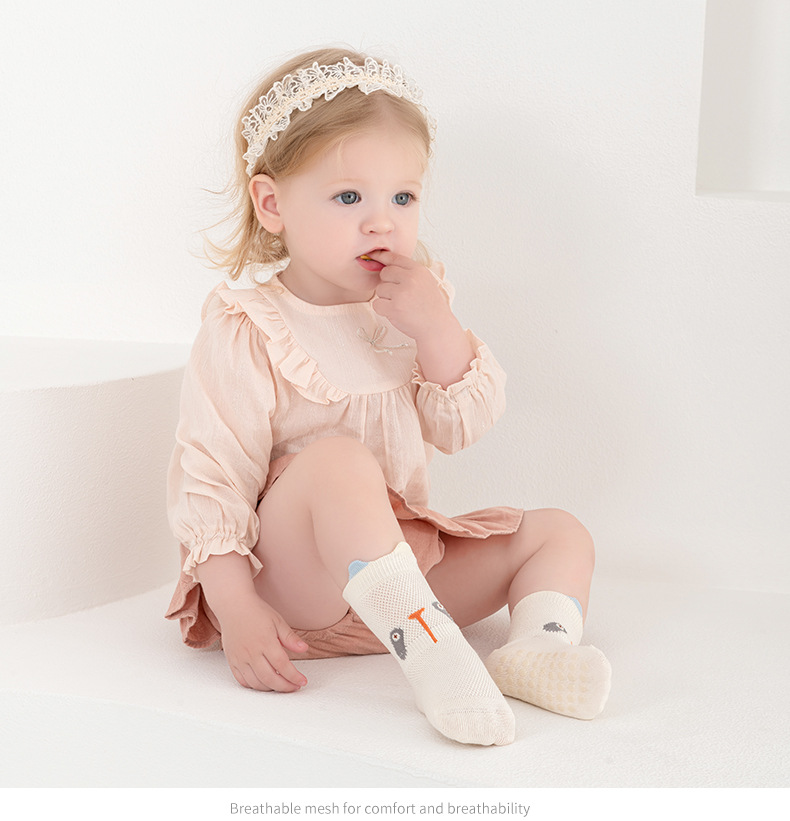 25 아기 양말 봄과 여름 클래스 아기 바닥 양말 미끄럼 방지 유아 만화 중간 튜브 양말 홈 어린이 메쉬