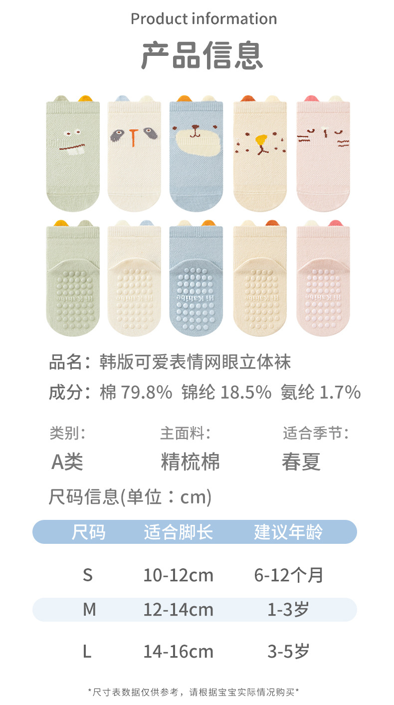 25 아기 양말 봄과 여름 클래스 아기 바닥 양말 미끄럼 방지 유아 만화 중간 튜브 양말 홈 어린이 메쉬스토어 가기