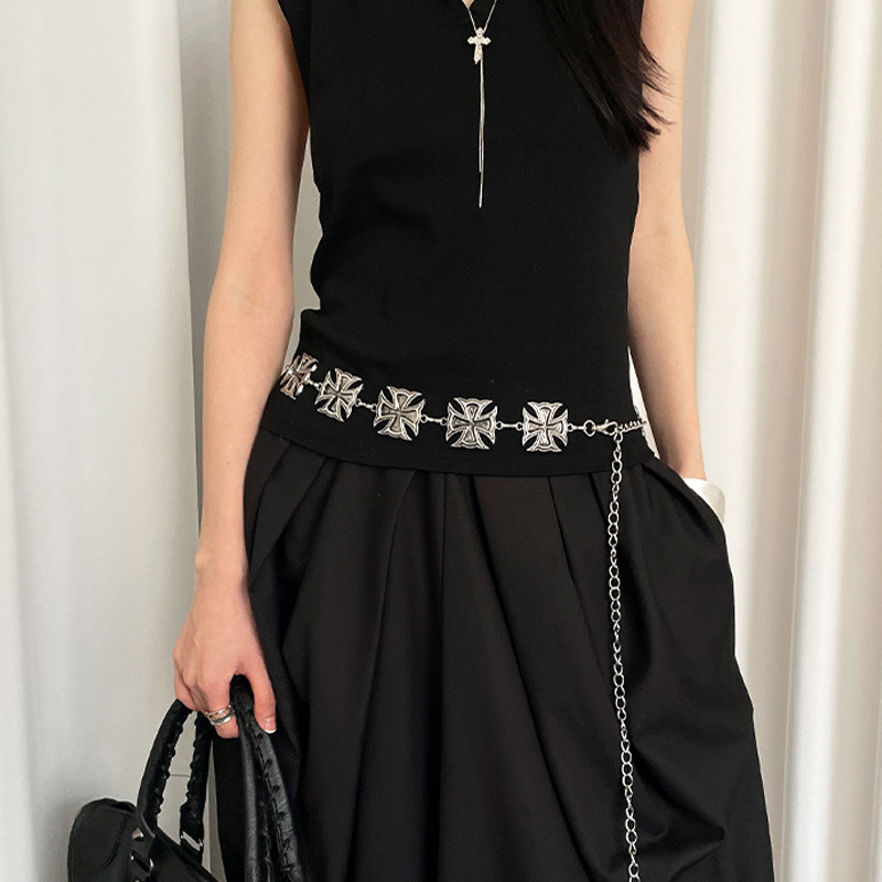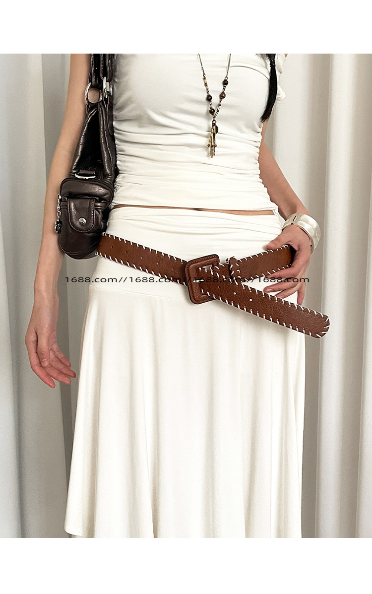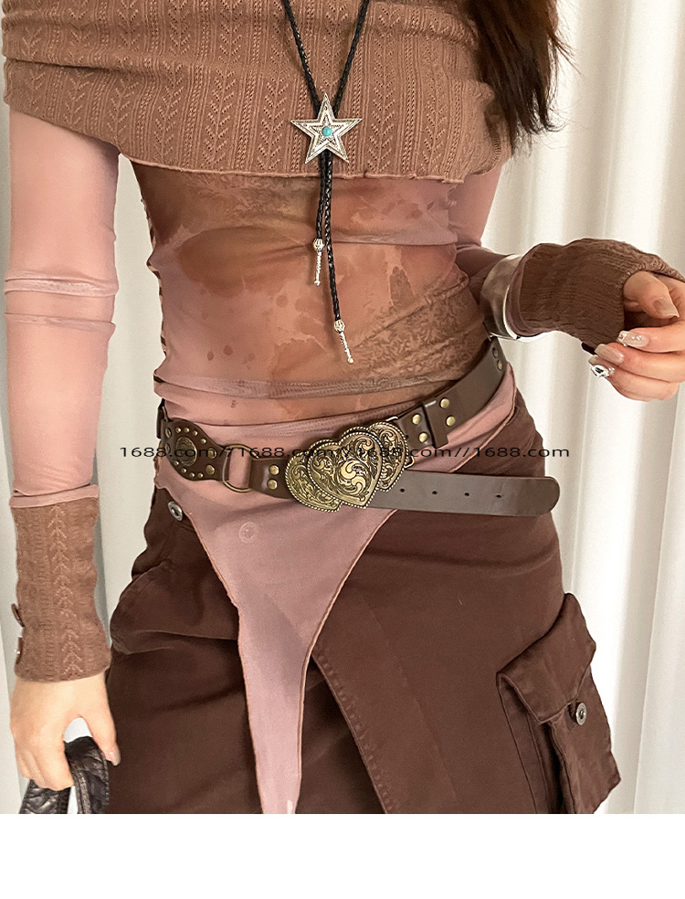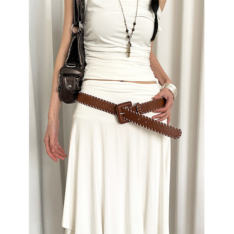 빈티지 미국식 데님 벨트 여성 밀레니엄 스타일 달콤한 쿨 크로스 디자인 모든 경기 바느질 뜨거운 소녀 금속 벨트