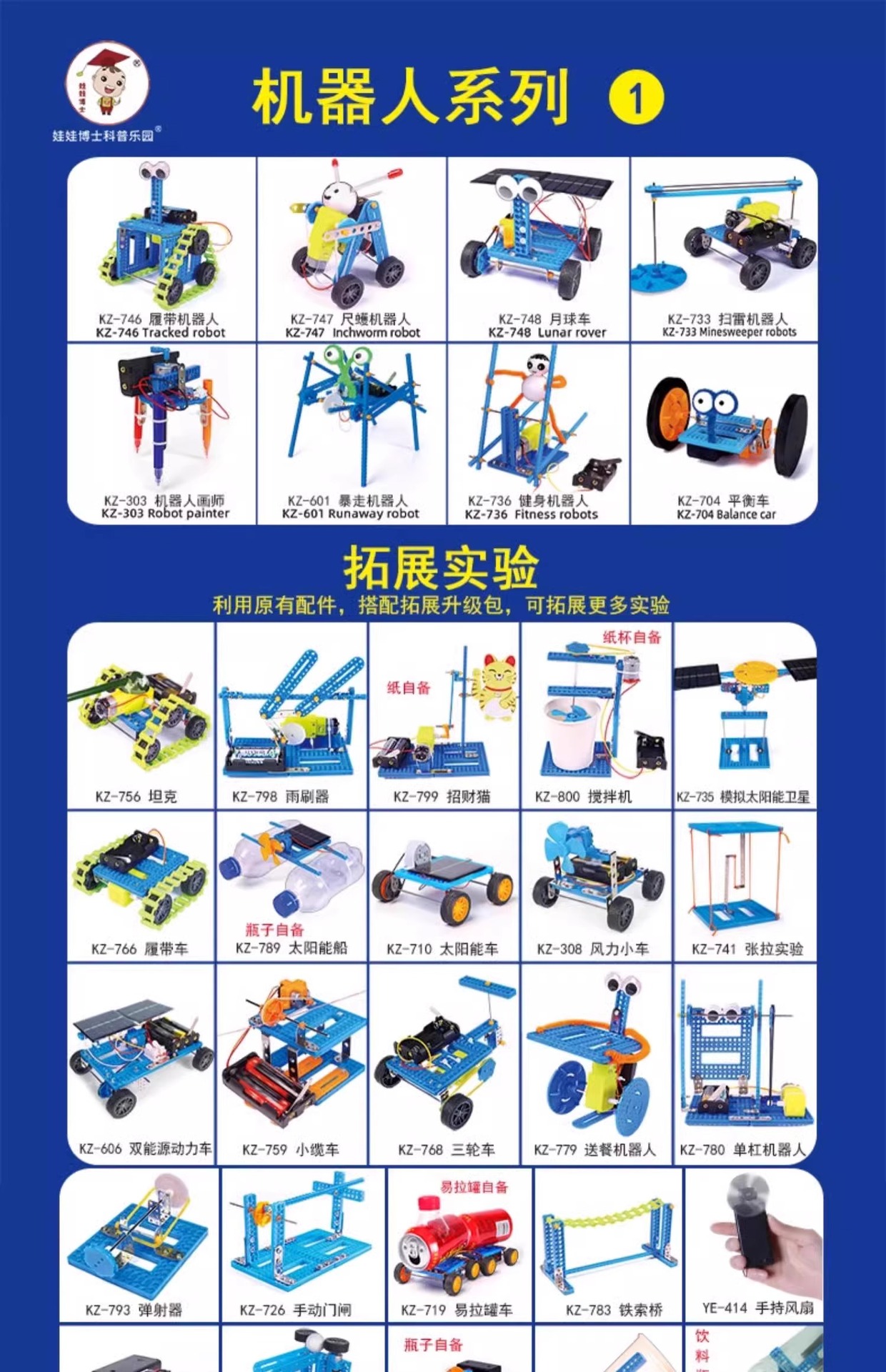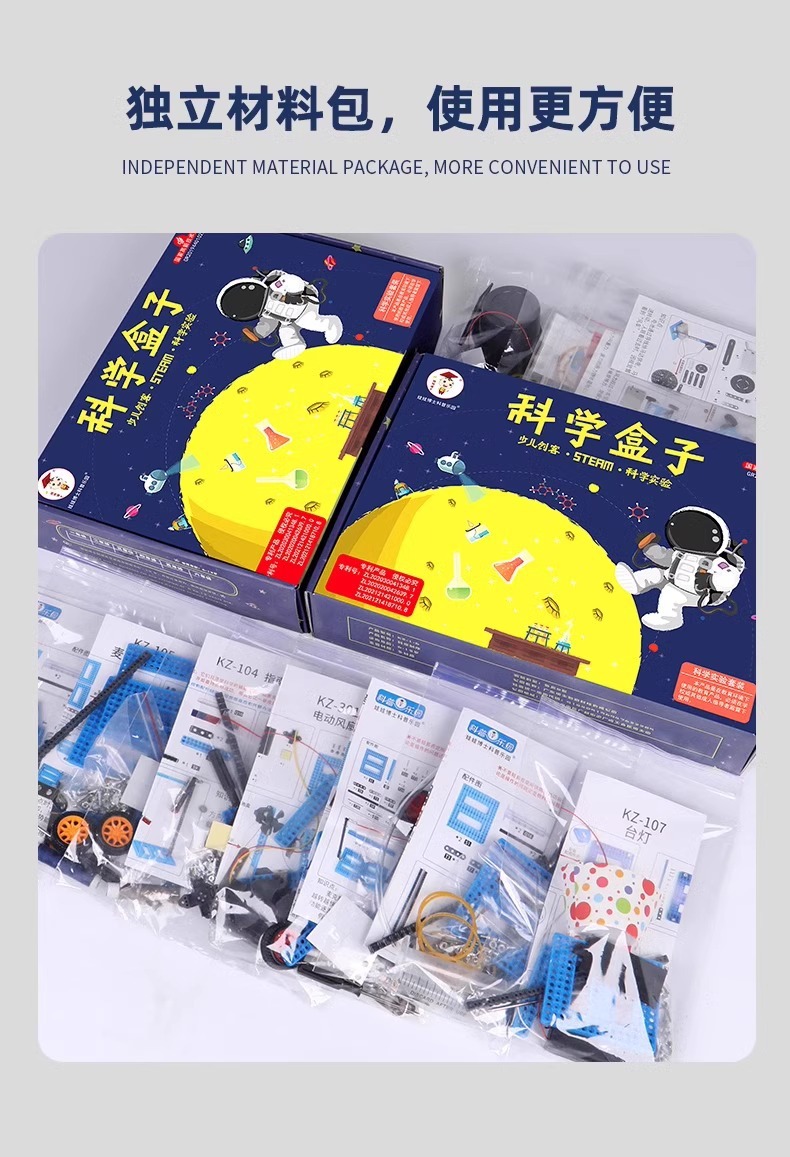 스팀 어린이 재미있는 교육 과학 실험 세트 학생 로봇 수제 DIY 소재 가방 장난감스토어 가기