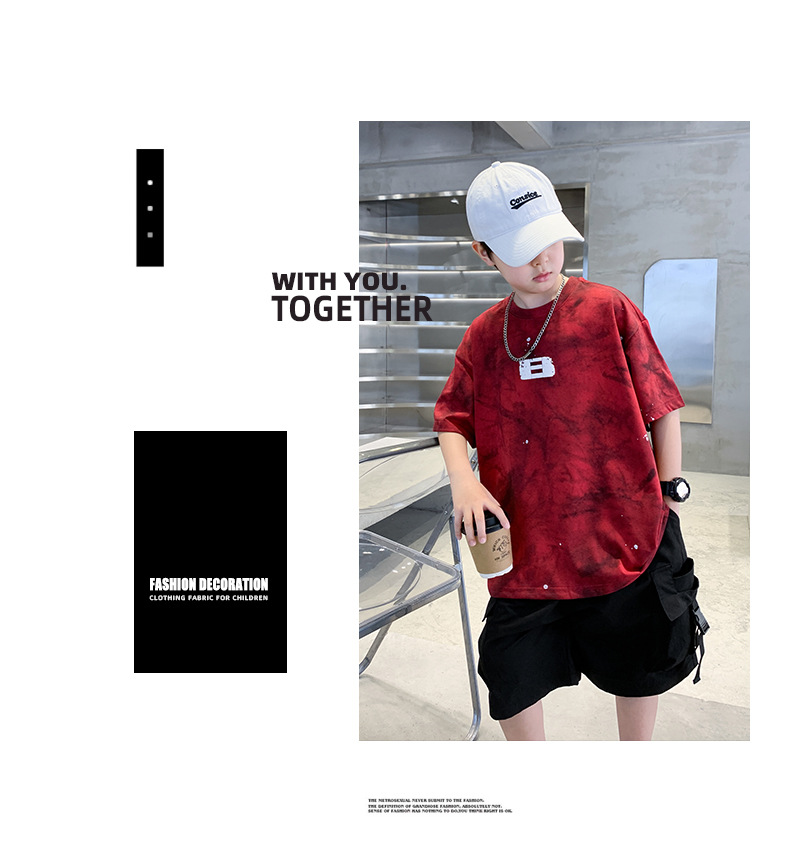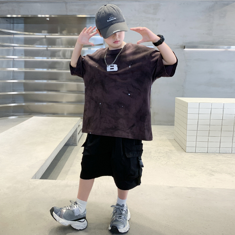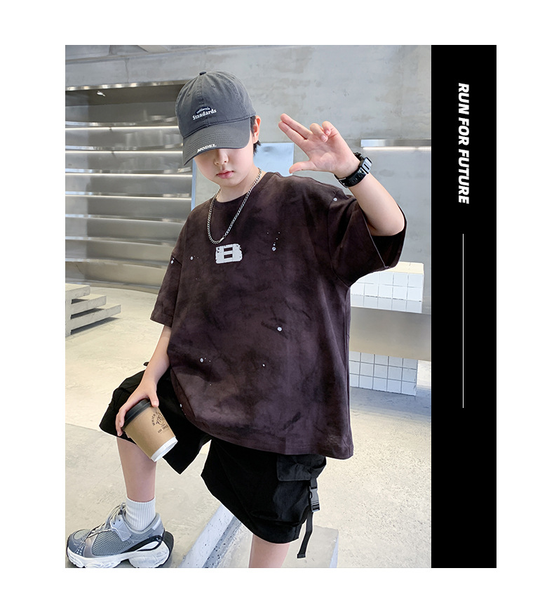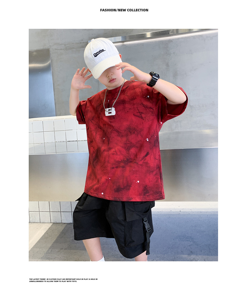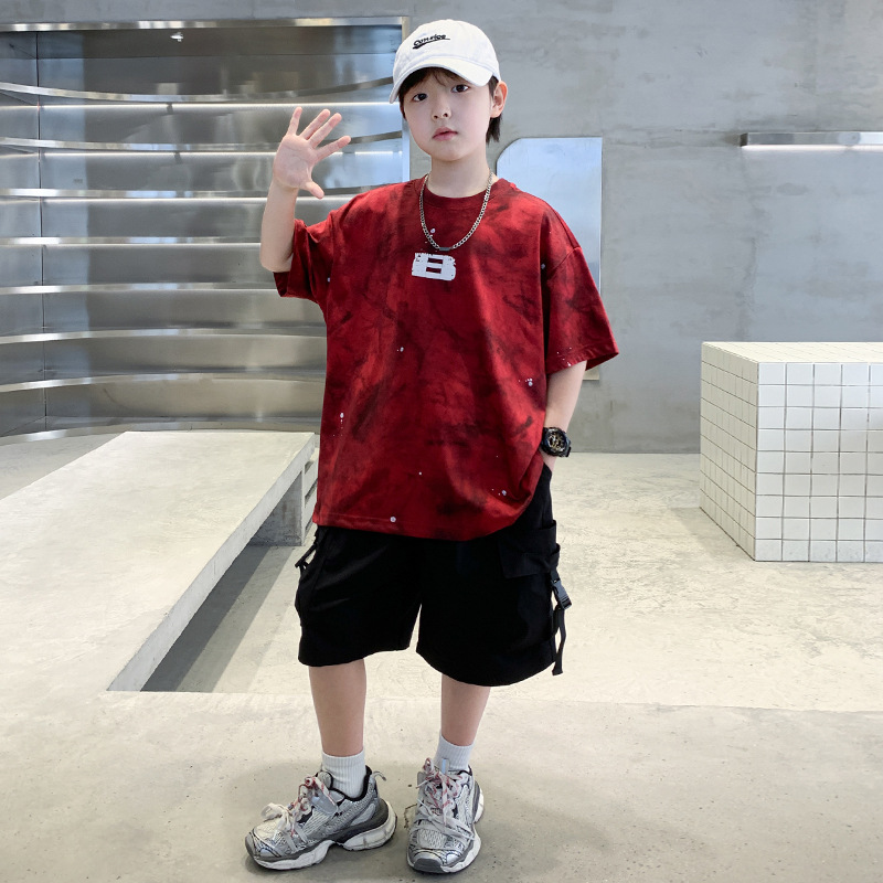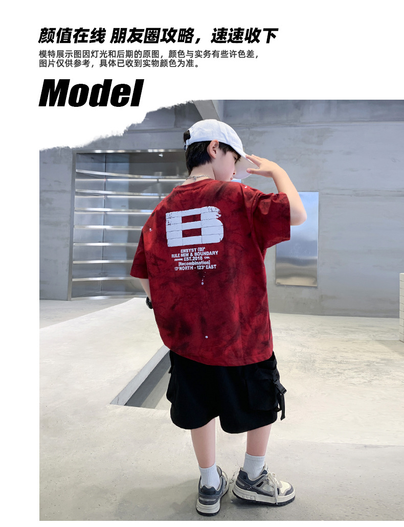 남자들의 여름 넥타이-염료 반바지 2025 세트 뉴 틴 보이즈 캐주얼 티셔츠 빅 보이 투피스 세트 8