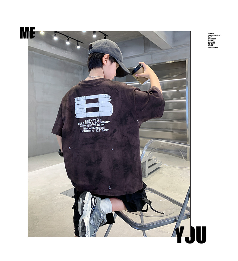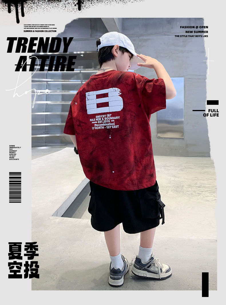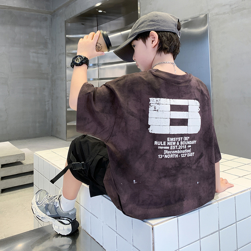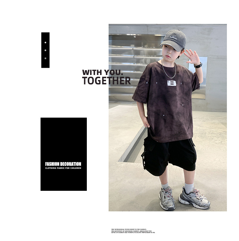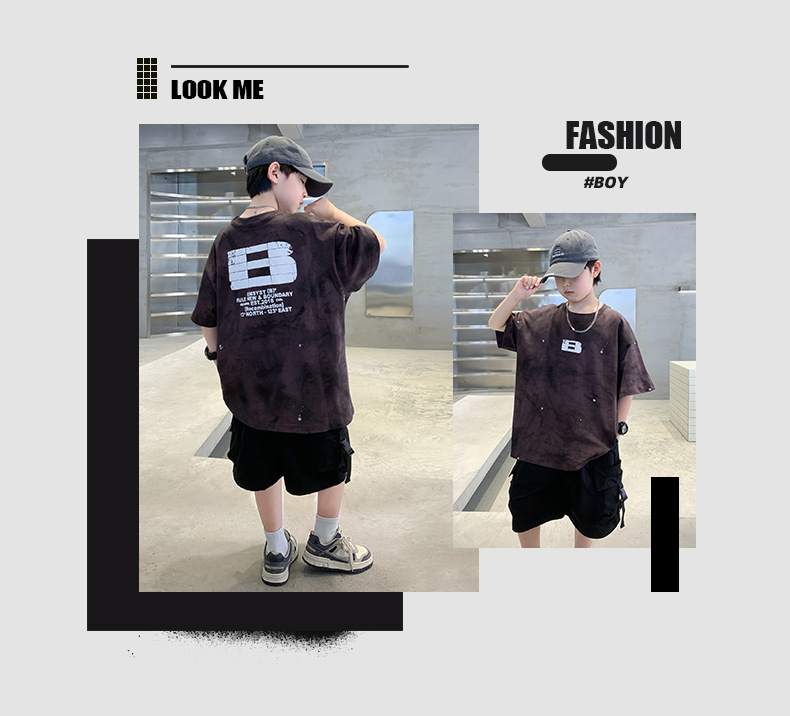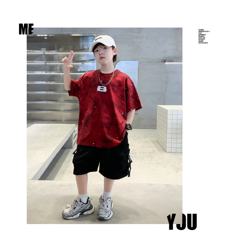 남자들의 여름 넥타이-염료 반바지 2025 세트 뉴 틴 보이즈 캐주얼 티셔츠 빅 보이 투피스 세트 8스토어 가기