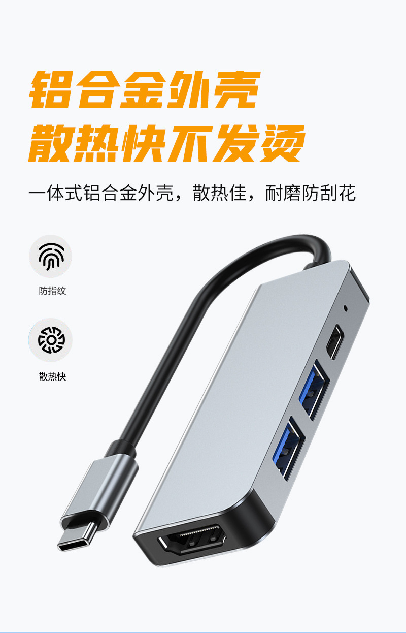 TypeC-HDMI 어댑터 케이블 4-in-1 4K HD 다기능 확장 도크 typeC-HDMI 변환기스토어 가기