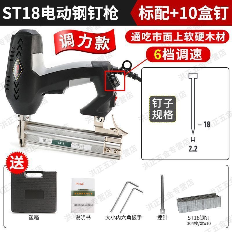 • ST18 전기 강철 못총 [힘 조절 모델] - 원래 표준 + 못 10상자