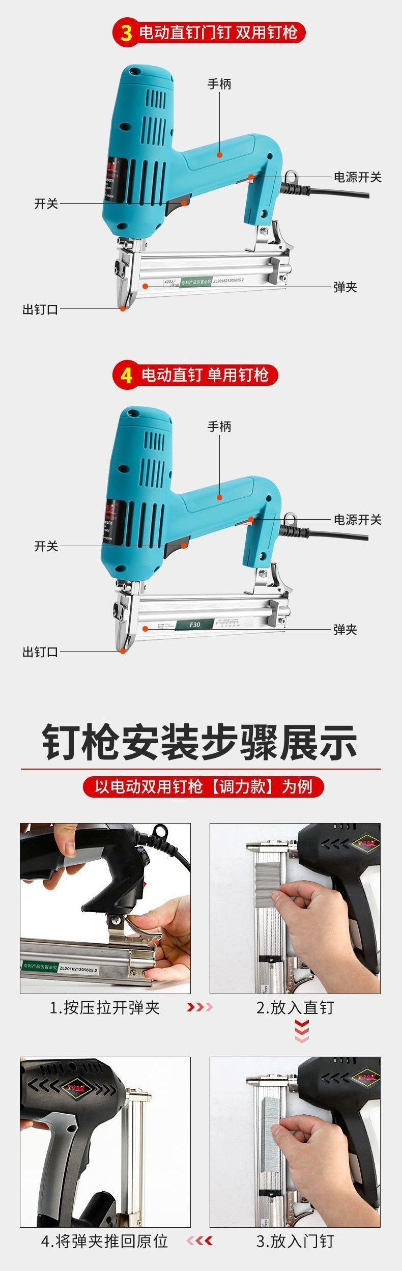 • F30-422 이중 목적 전기 네일 건 [힘 조절 모델] - 원래 표준 + 못 1 상자