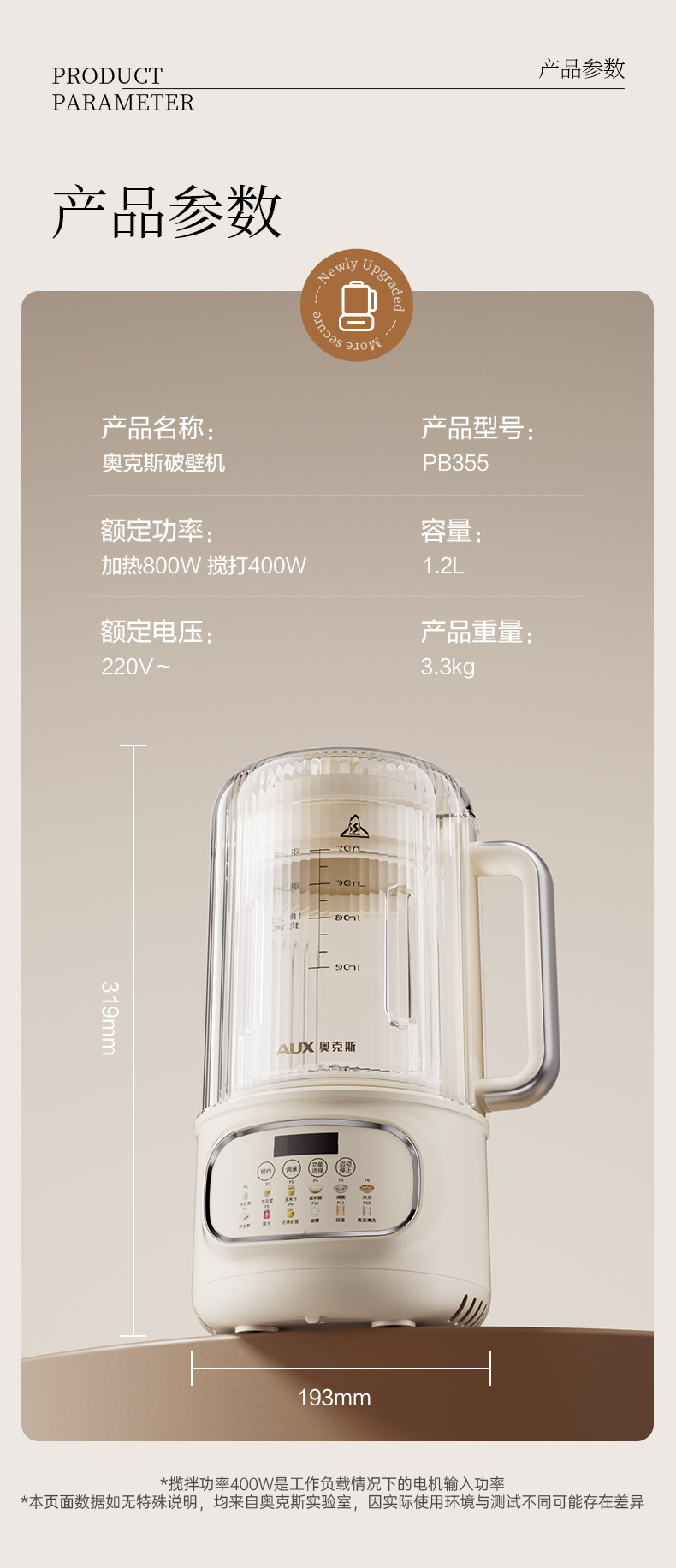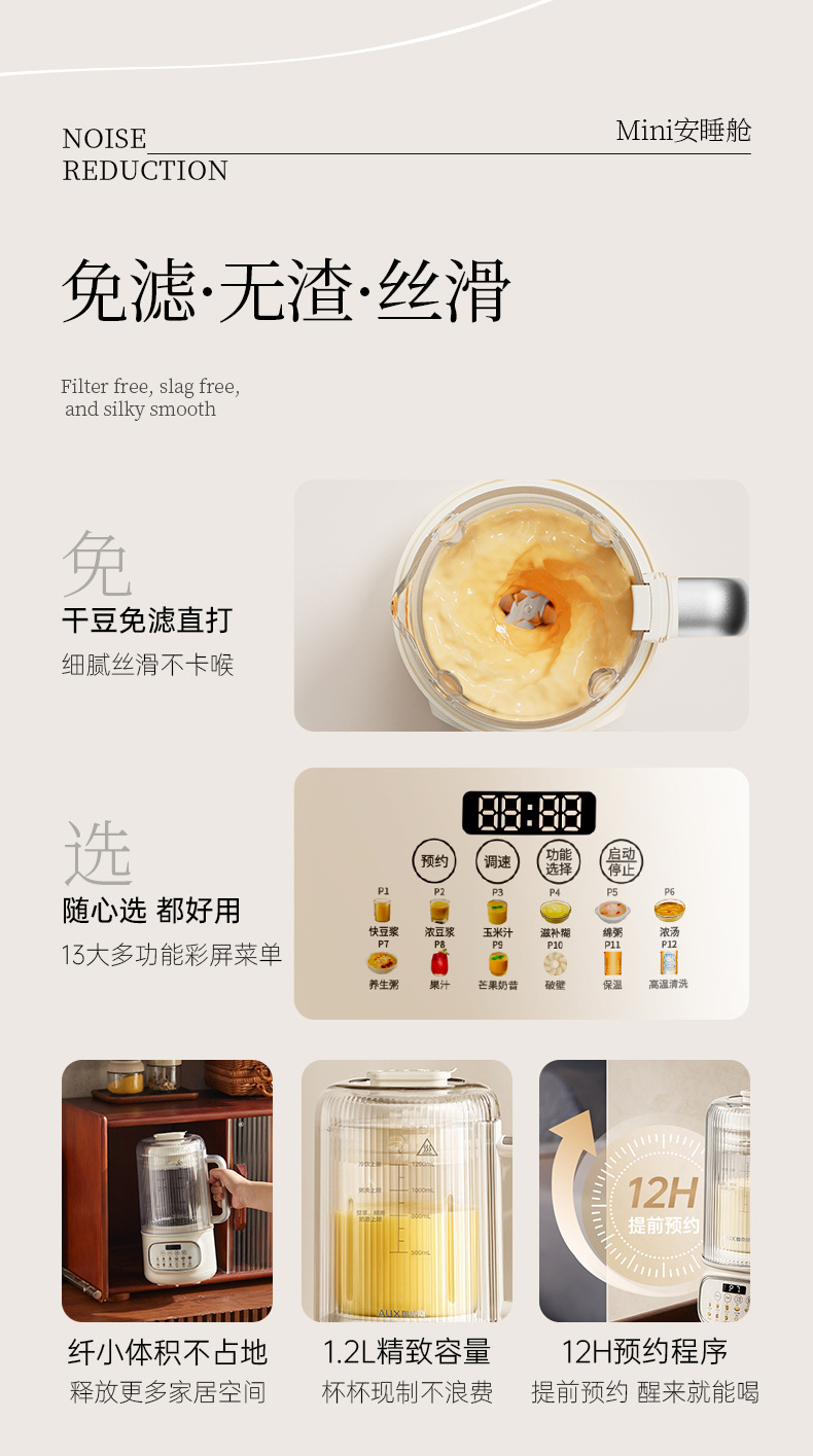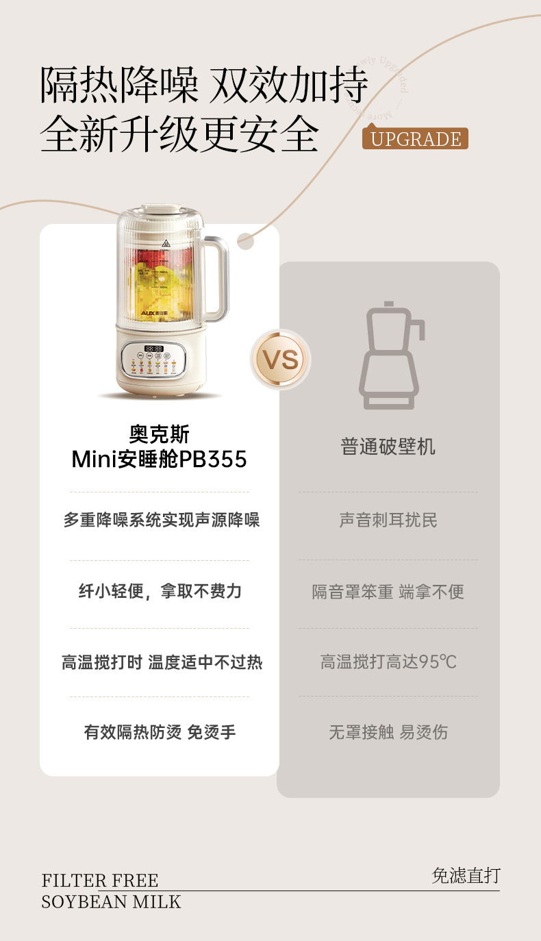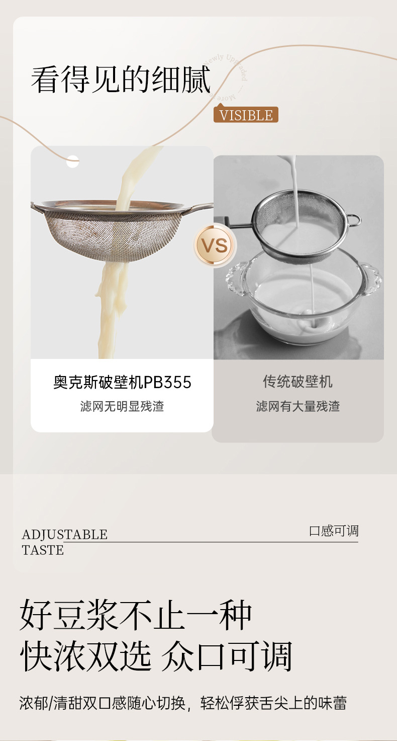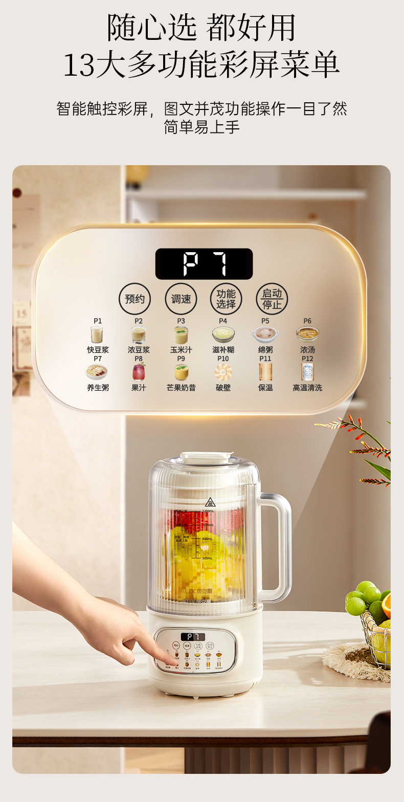 Oaks 1.2L 벽 파괴 기계 PB355 소형 완전 자동 조리 없이 요리 기계 다기능 두유 기계 주서기