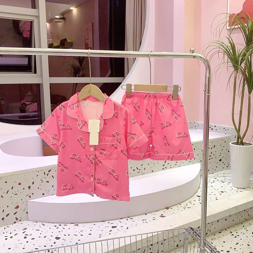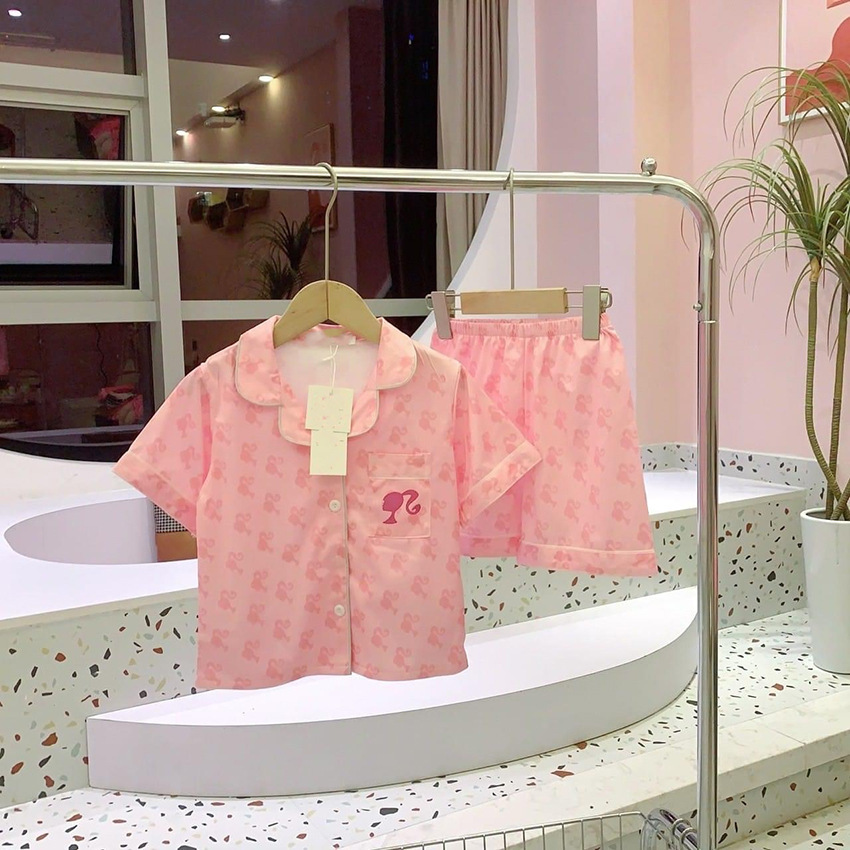 어린이 잠옷 세트 여름 핑크 만화 반팔 반바지 어린이와 소녀의 집 옷 투피스 세트 여름스토어 가기