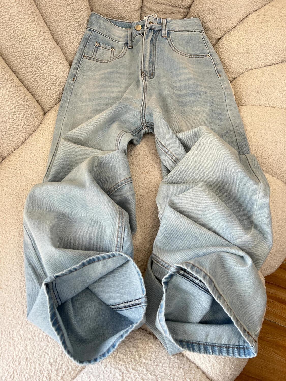 라이트 블루 수 놓은 느슨한 다리 청바지 여성 여름 새로운 높은 허리 슬림 룩 새그 올매치 좁은 넓은 다리 바지스토어 가기