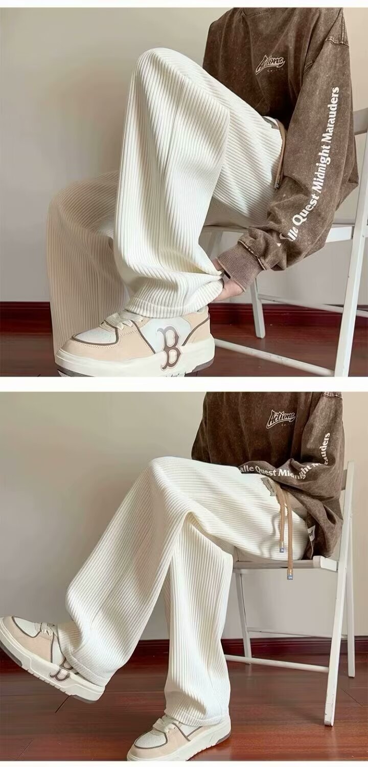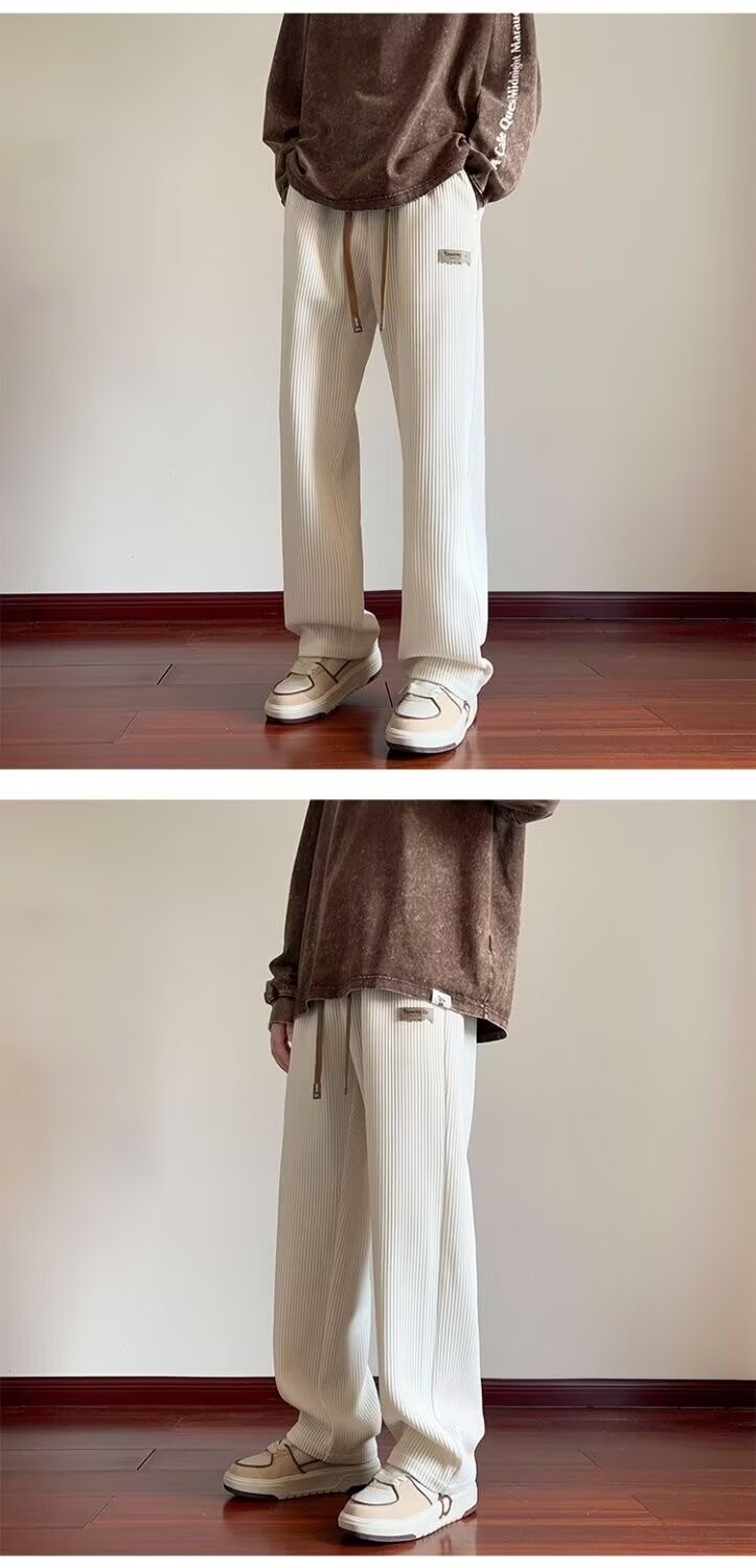 2025 새로운 도착 느슨한 캐주얼 바지 남자 한국 스타일 유행 올 매치 바지 여름 얇은 펜던트 와이드 다리 바지