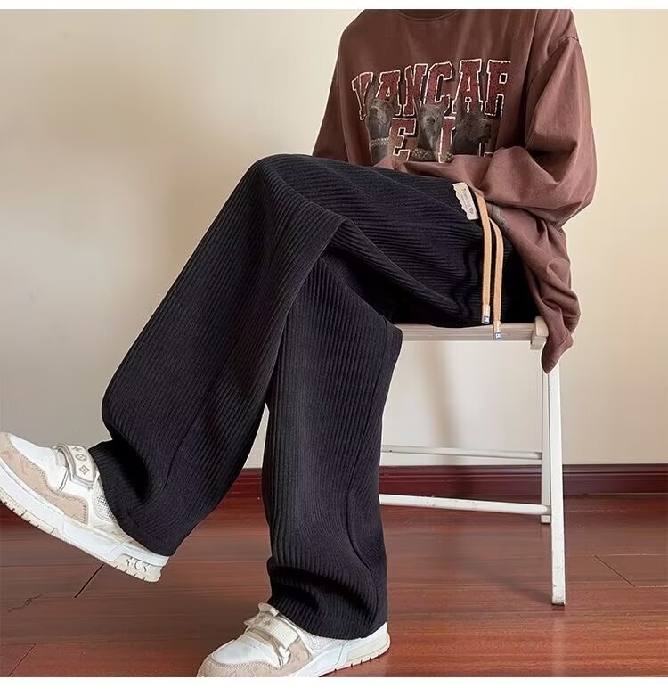 2025 새로운 도착 느슨한 캐주얼 바지 남자 한국 스타일 유행 올 매치 바지 여름 얇은 펜던트 와이드 다리 바지스토어 가기