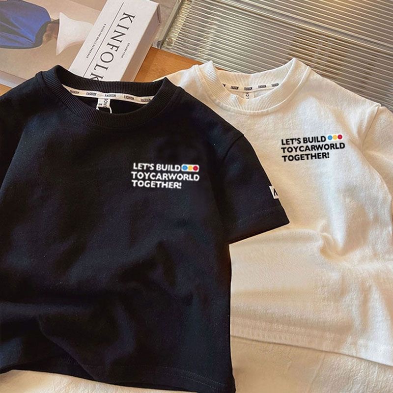 면 여름 소년과 소녀 반팔 티셔츠 어린이 새로운 라운드 넥 탑 느슨한 여름 아기 착용 소녀 티셔츠스토어 가기
