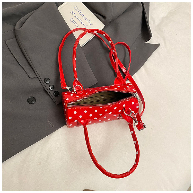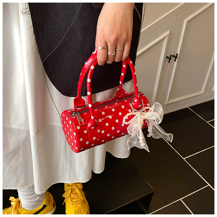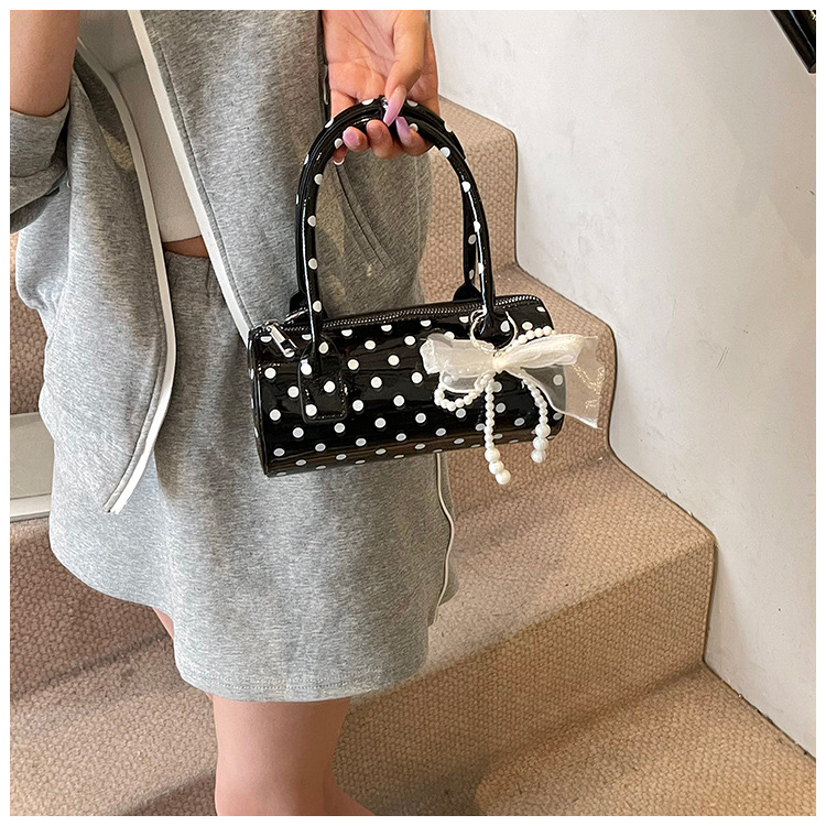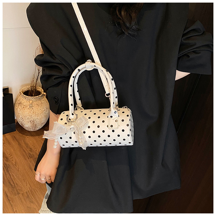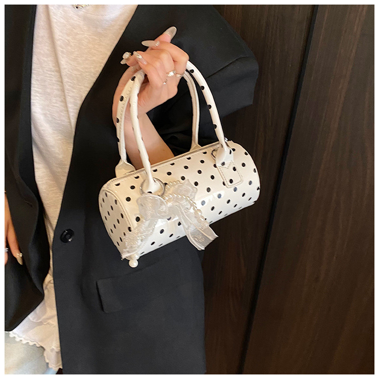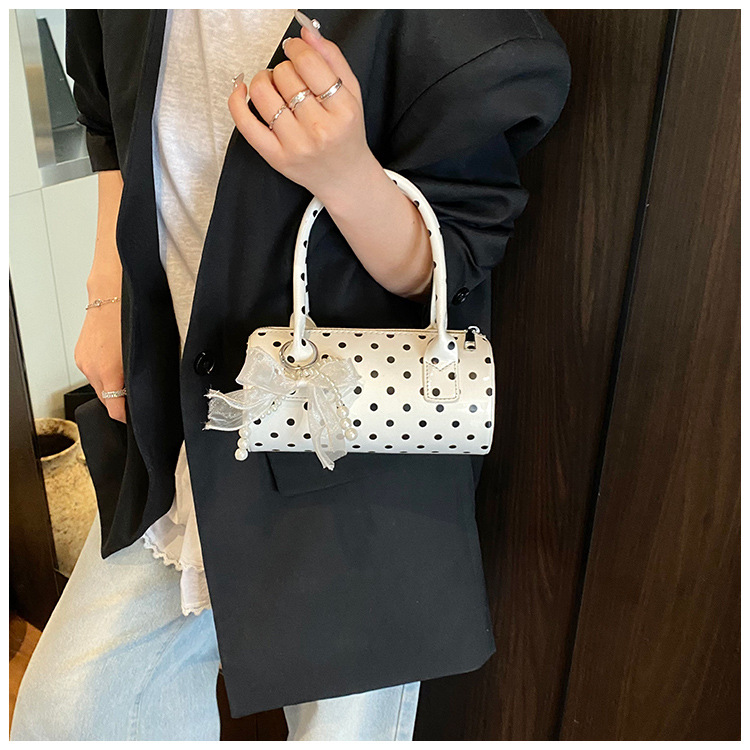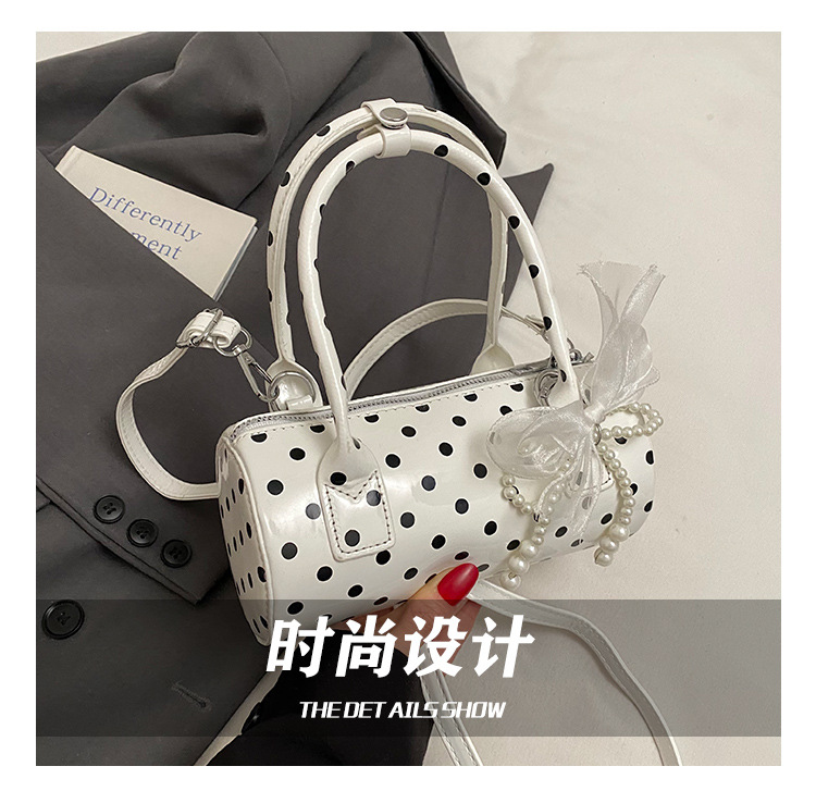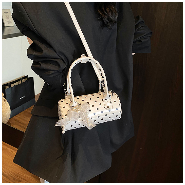 여성을위한 세련된 틈새 폴카 도트 가방 2025 새로운 캐주얼 미니 다용도 크로스 바디 백 한국어 버전 휴대용 원통형 가방스토어 가기