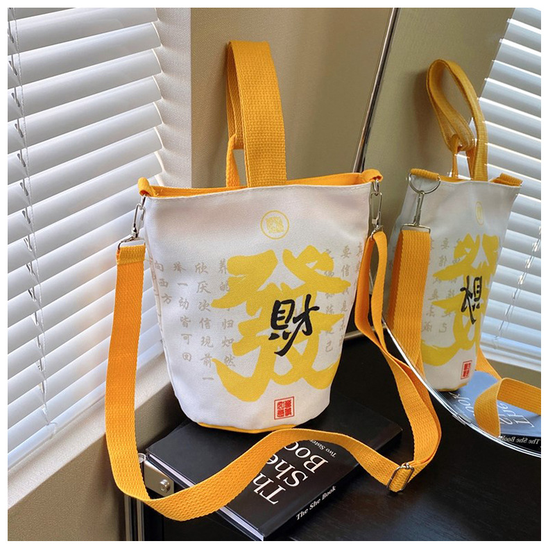 트렌디한 맞춤형 머니백 핸드백 여성용 2025 신형 버킷백 기념품 캔버스 숄더백 캐주얼 슬랜트스토어 가기