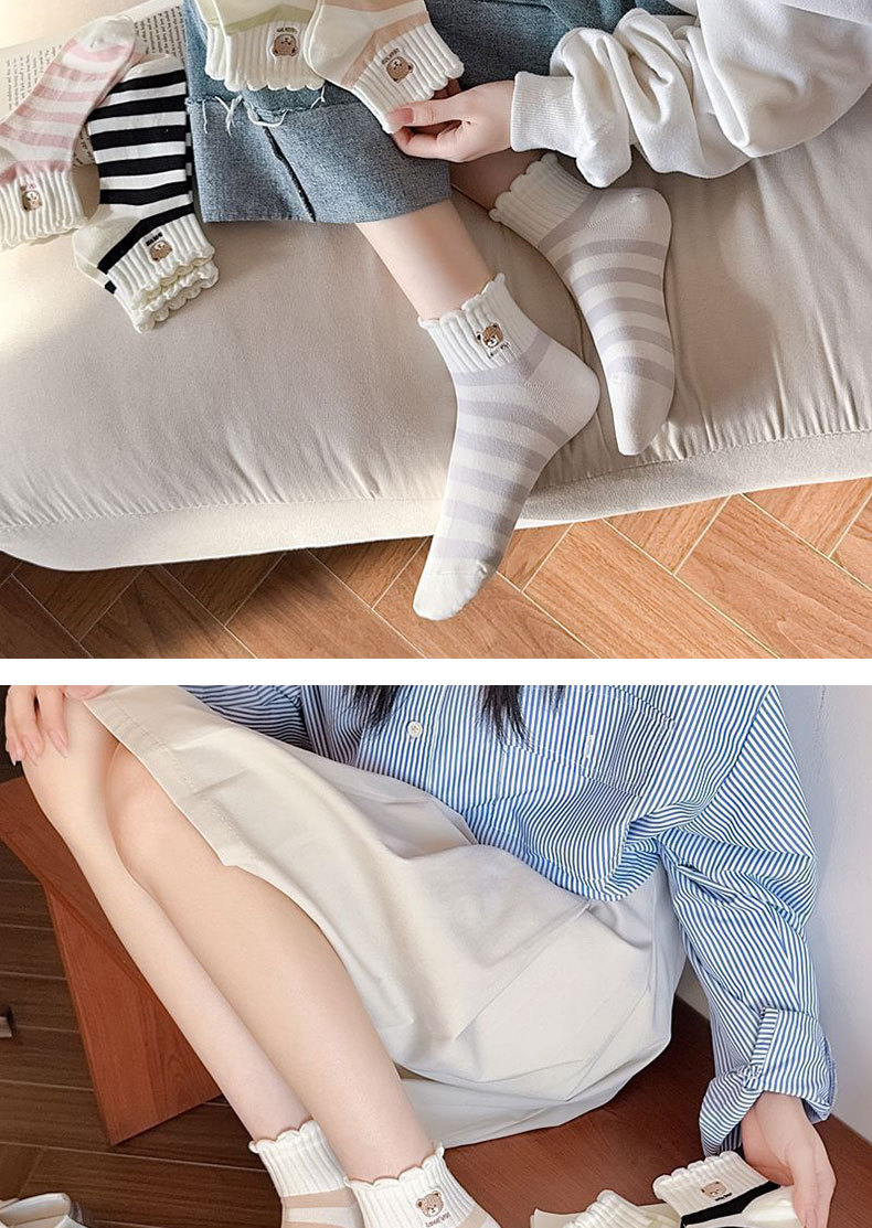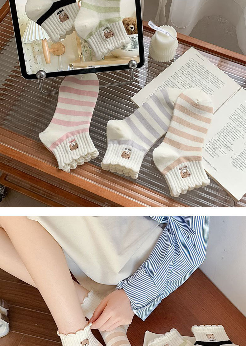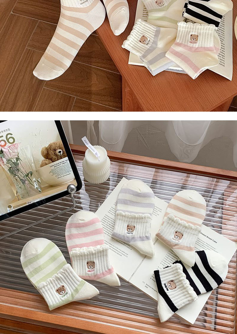 양말 숙녀 양말 땀 흡수성 탈취제 통기성 여름 낮은 튜브 보트 양말 한국 귀여운 곰 짧은 튜브 여성 양말 도매