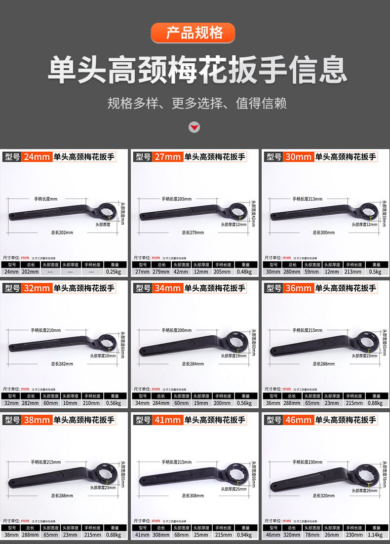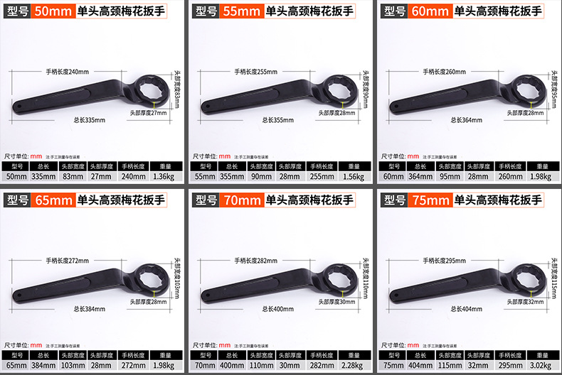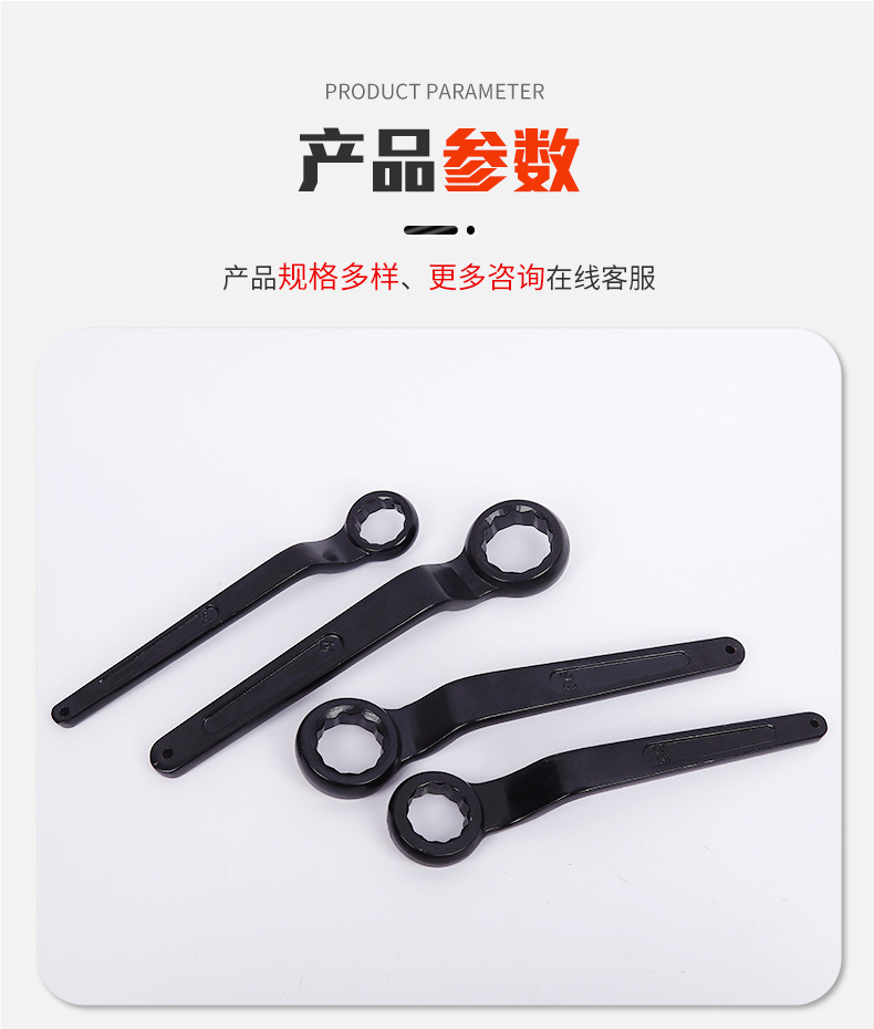 고경도 헤비듀티 하이넥 싱글헤드 플랫니트 렌치, 두꺼운 곡선형 헤드, 연장형 플랫니트 블랙 렌치