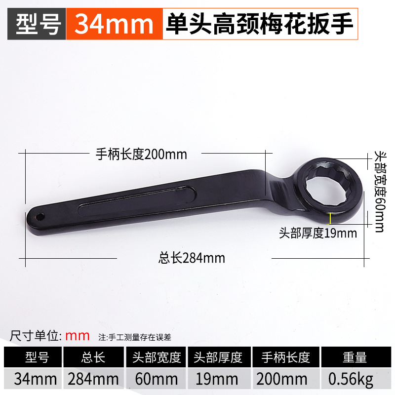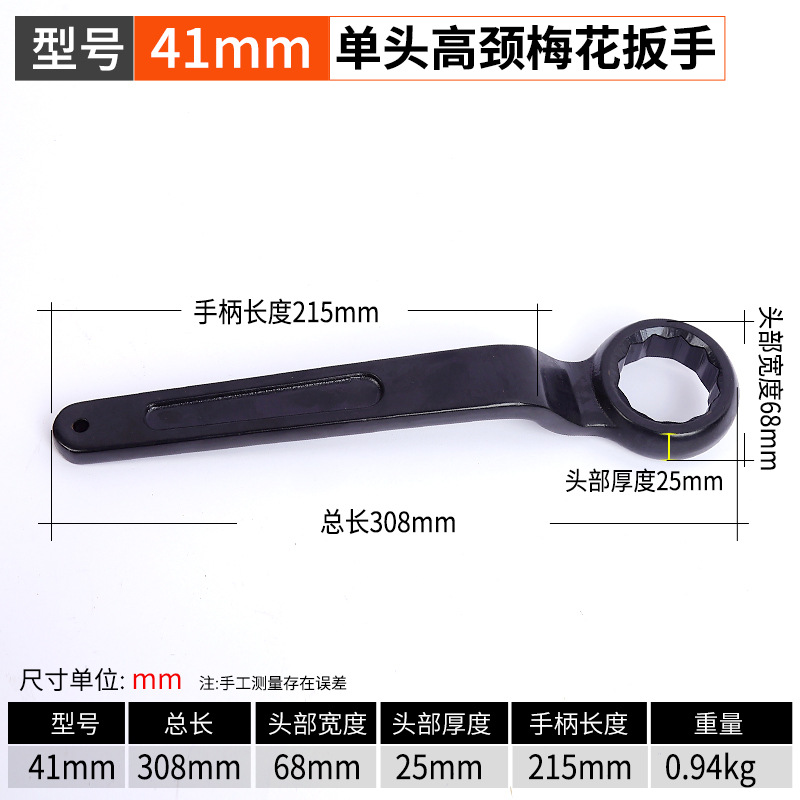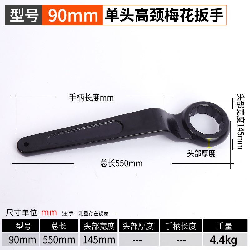 고경도 헤비듀티 하이넥 싱글헤드 플랫니트 렌치, 두꺼운 곡선형 헤드, 연장형 플랫니트 블랙 렌치스토어 가기