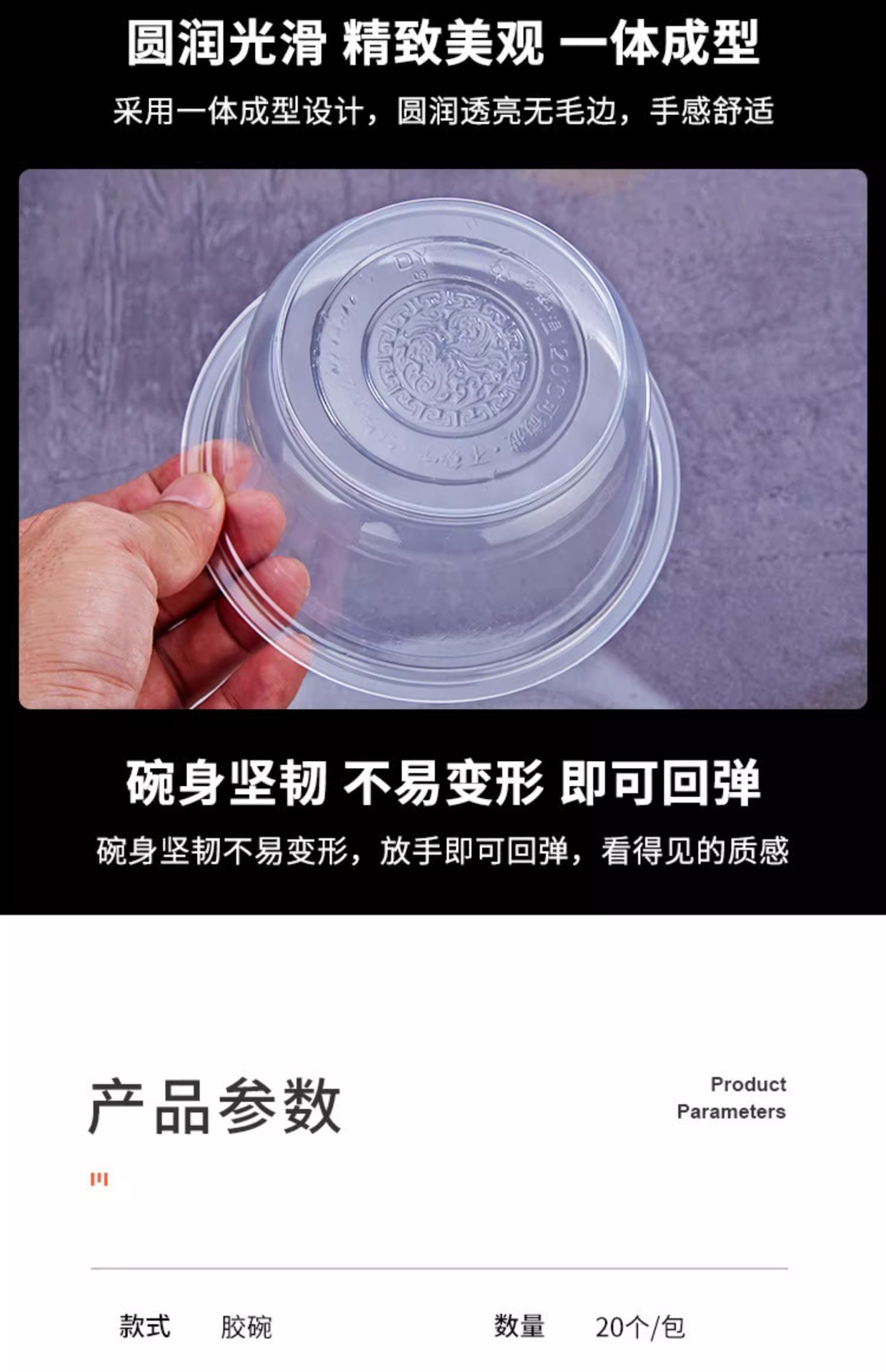 일회용 그릇 두꺼운 플라스틱 그릇 가정용 연회 패스트 푸드 수프 그릇 테이크 아웃 상업용 환경 친화적 인 원형 투명 도시락 상자