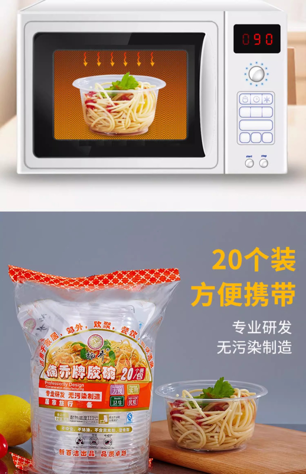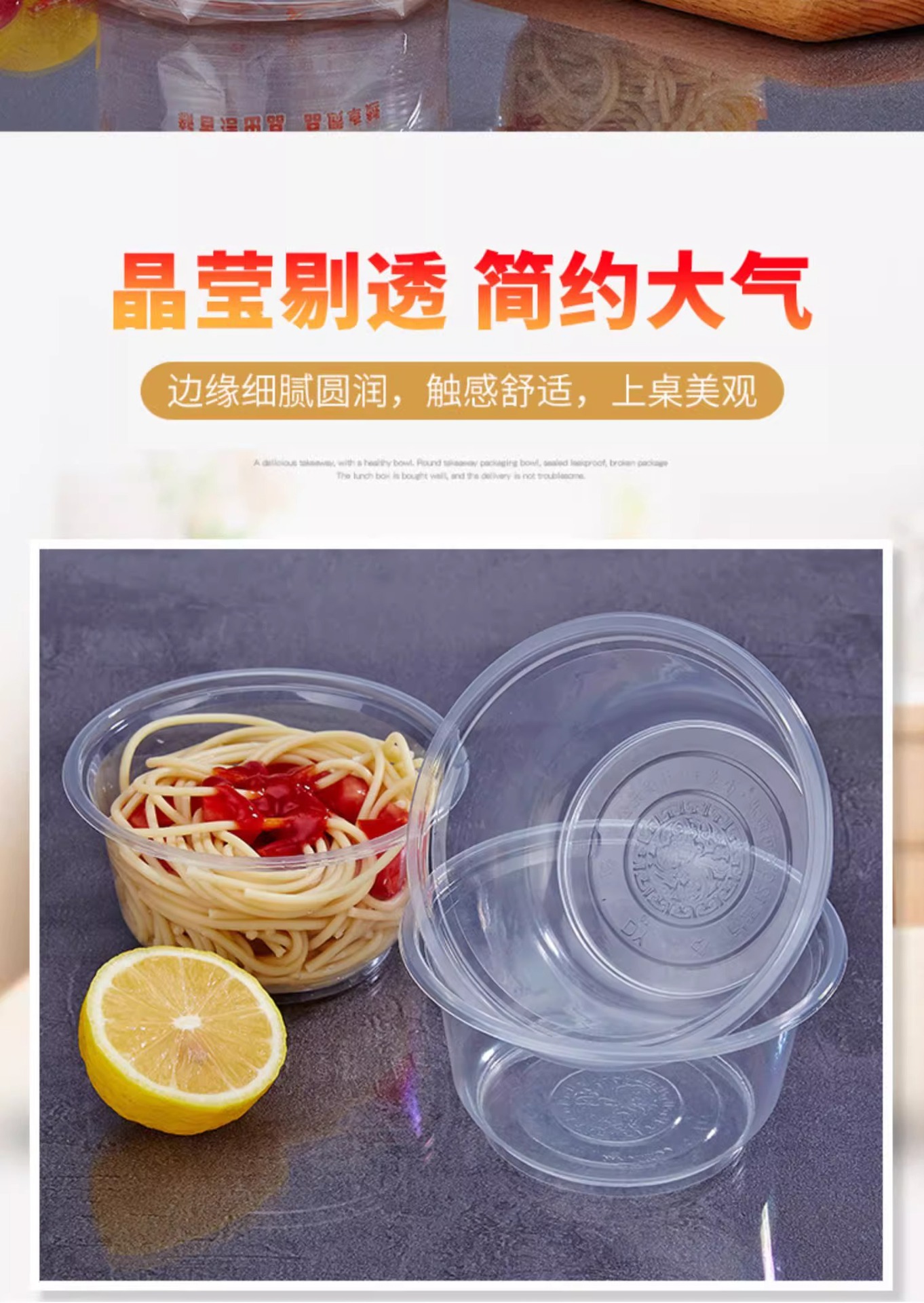 일회용 그릇 두꺼운 플라스틱 그릇 가정용 연회 패스트 푸드 수프 그릇 테이크 아웃 상업용 환경 친화적 인 원형 투명 도시락 상자스토어 가기