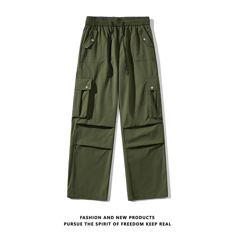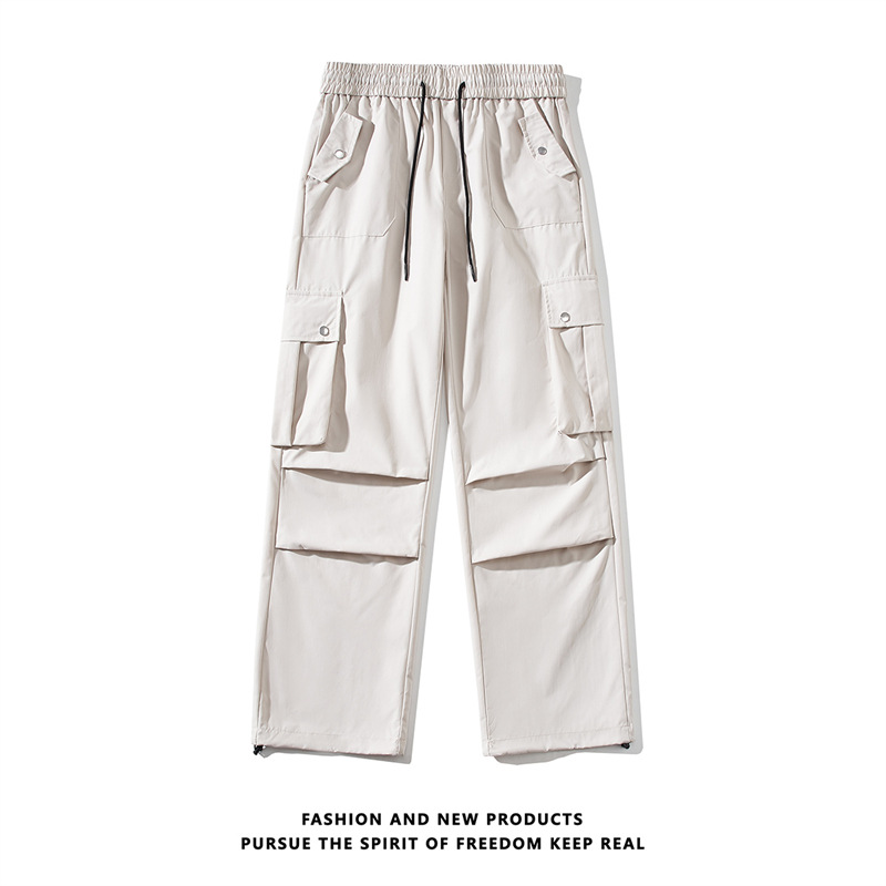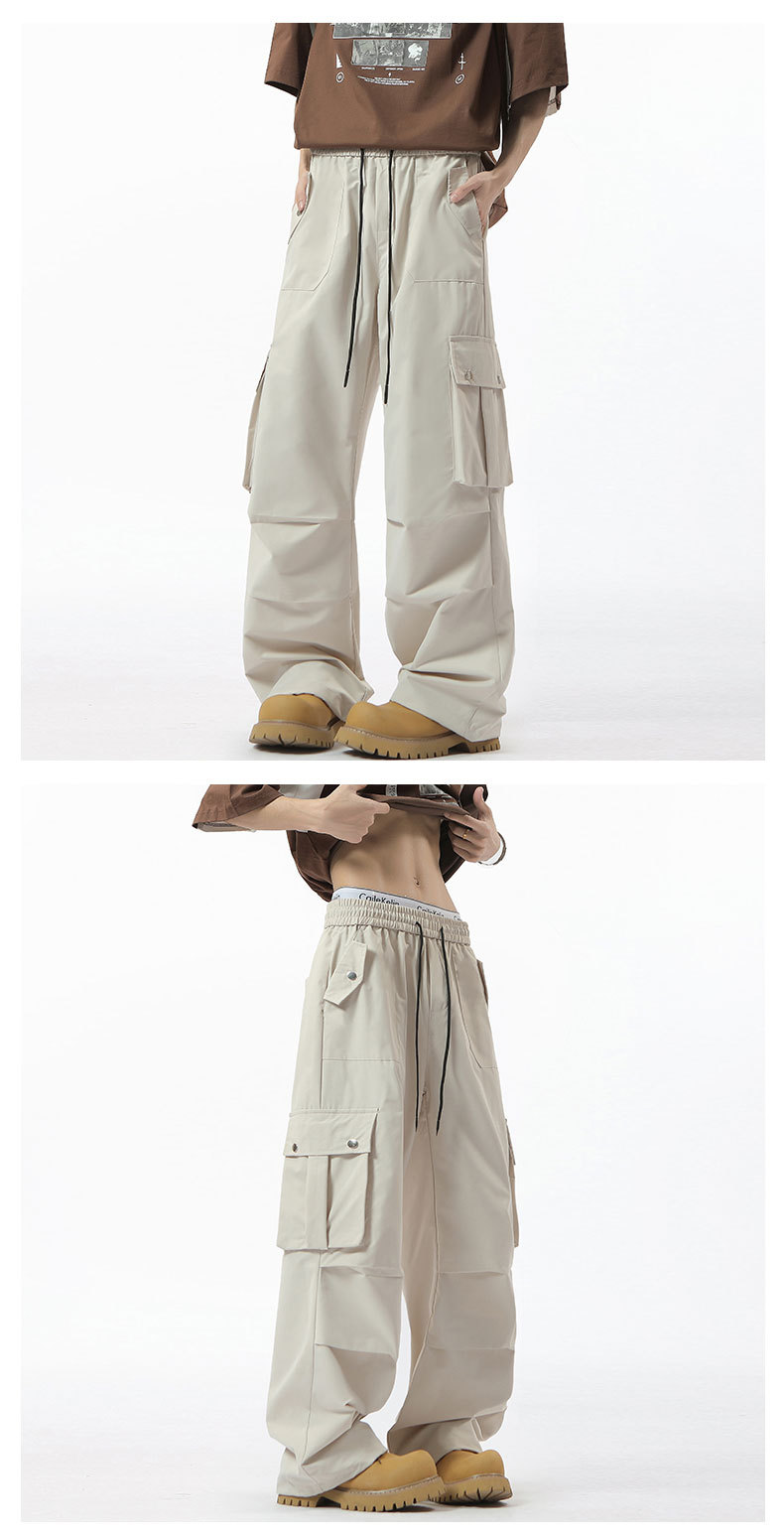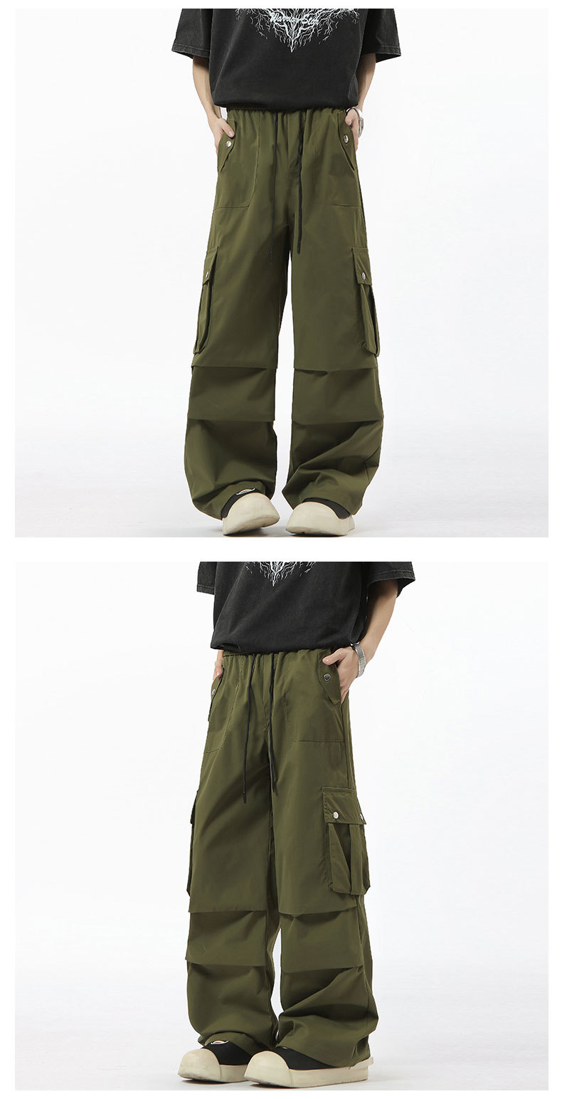 미국 스타일의 트렌디 한 브랜드 낙하산 크레인 바지 남성 여름 복고풍 캐주얼 대형 포켓 디자인 센스 틈새 느슨한 스트레이트 바지