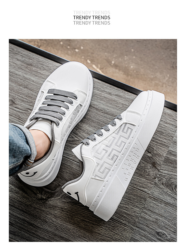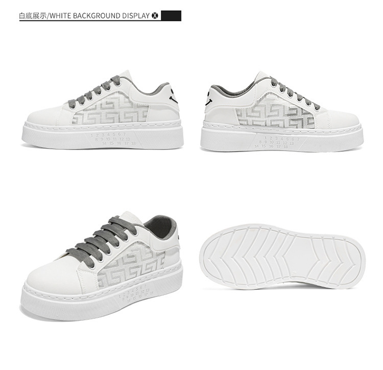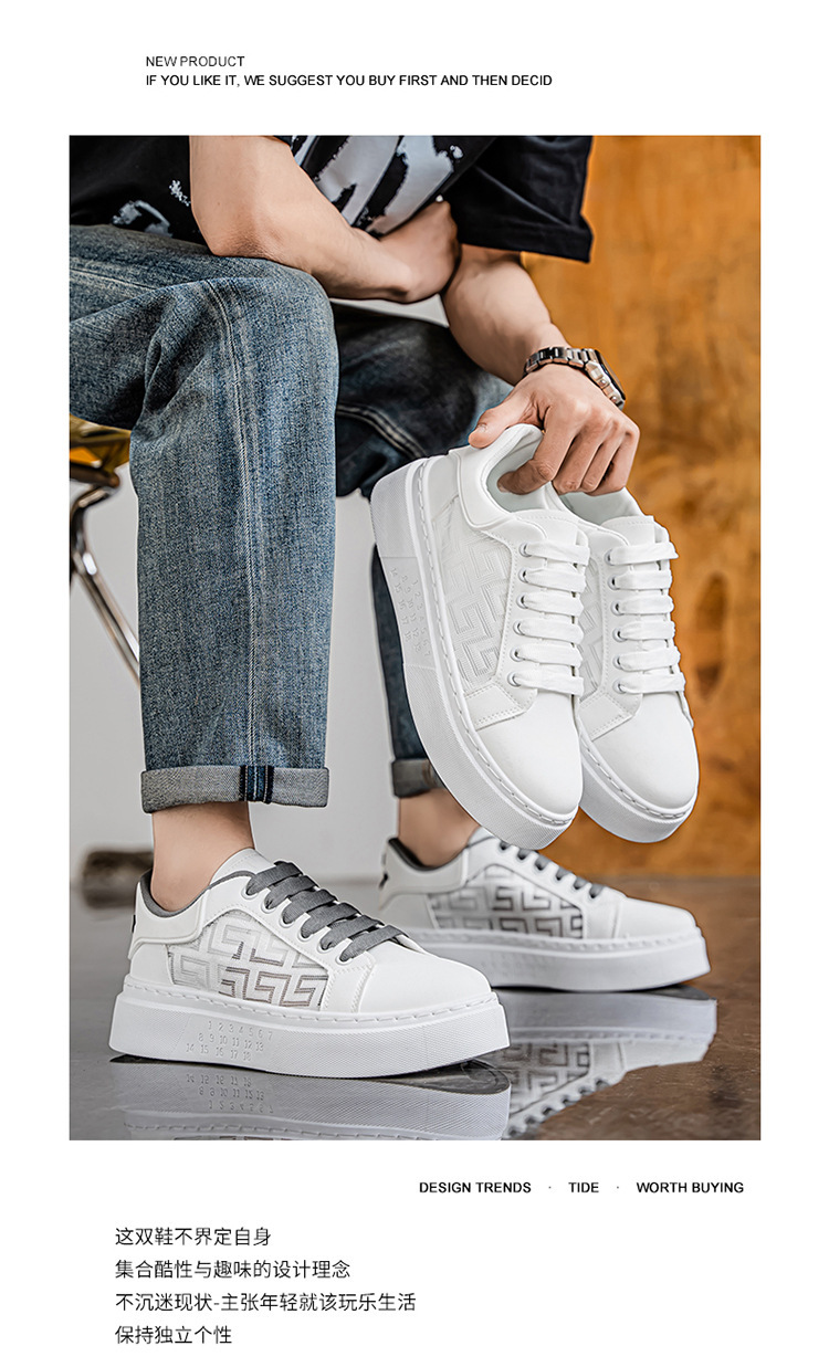 남성 신발 여름 남성 학생을위한 새로운 통기성 중공 흰색 신발 트렌디 남성용 올매치 두꺼운 스포츠 캐주얼 신발스토어 가기