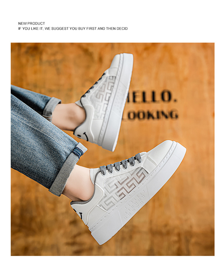남성 신발 여름 남성 학생을위한 새로운 통기성 중공 흰색 신발 트렌디 남성용 올매치 두꺼운 스포츠 캐주얼 신발