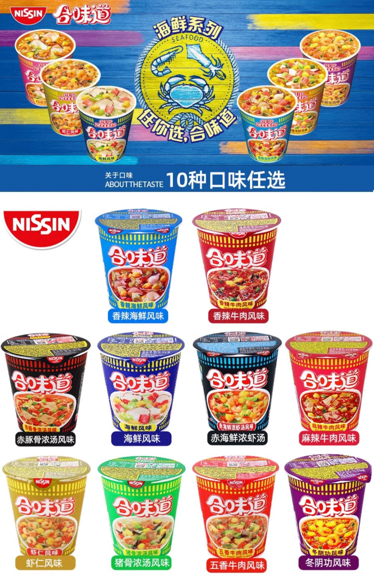 Nishin Heyi 맛 작은 컵 국수 인스턴트 국수 전체 상자 도매 믹스 Barreled 즉석 국수 밤 음식 게으른 사람들스토어 가기