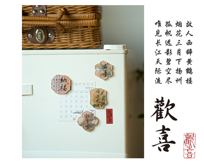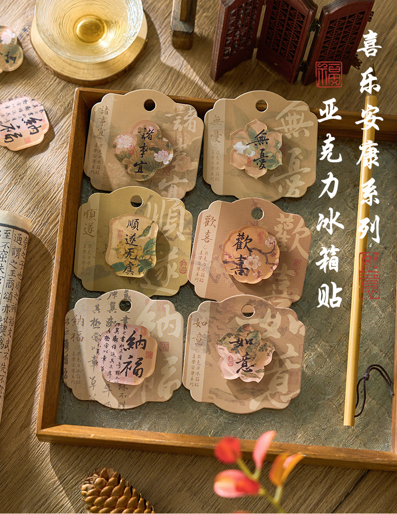 초기 거품 아크릴 냉장고 스티커 팬 주도 부동 조명 시리즈 골동품 서예 캐릭터 특수 모양의 마그네틱 냉장고 스티커스토어 가기