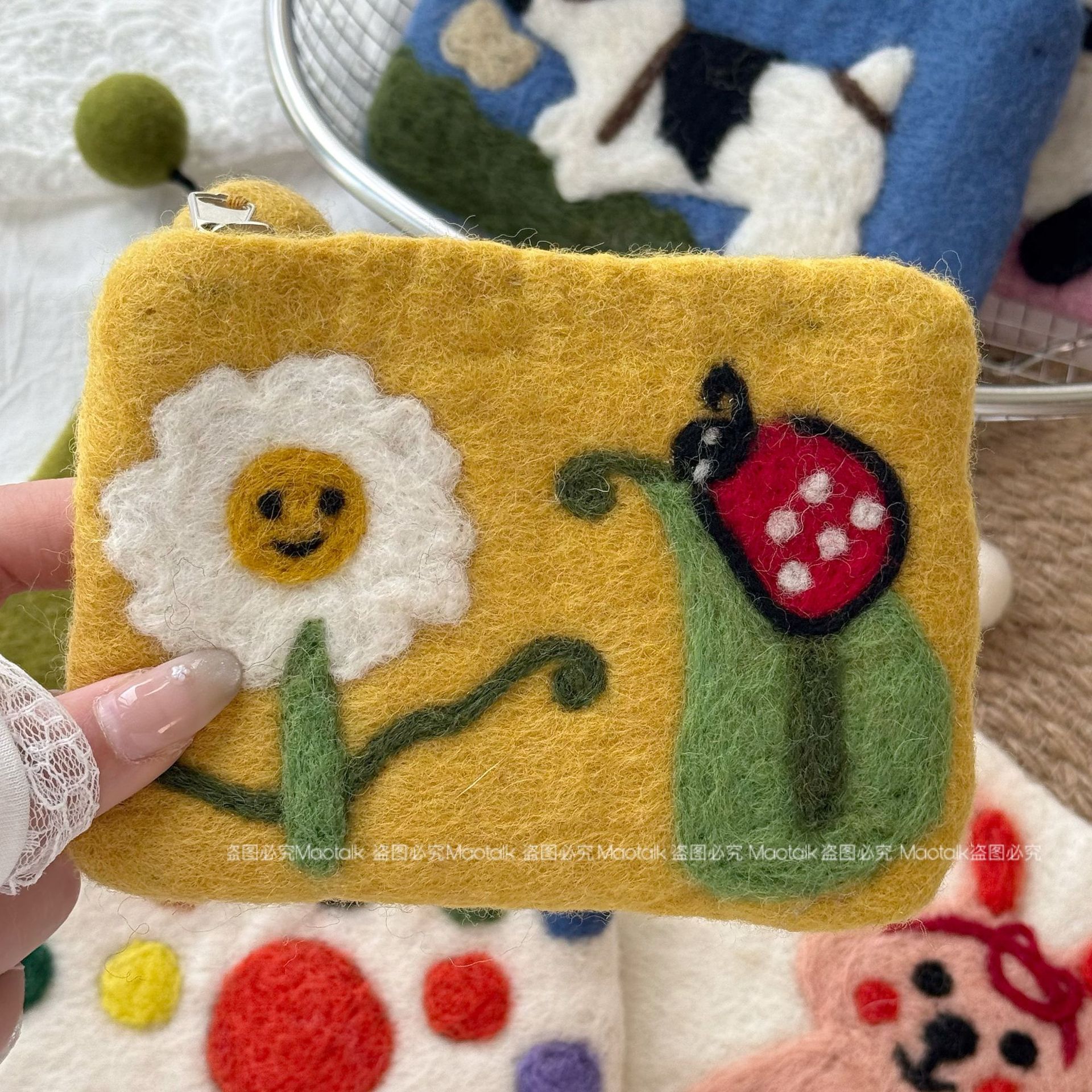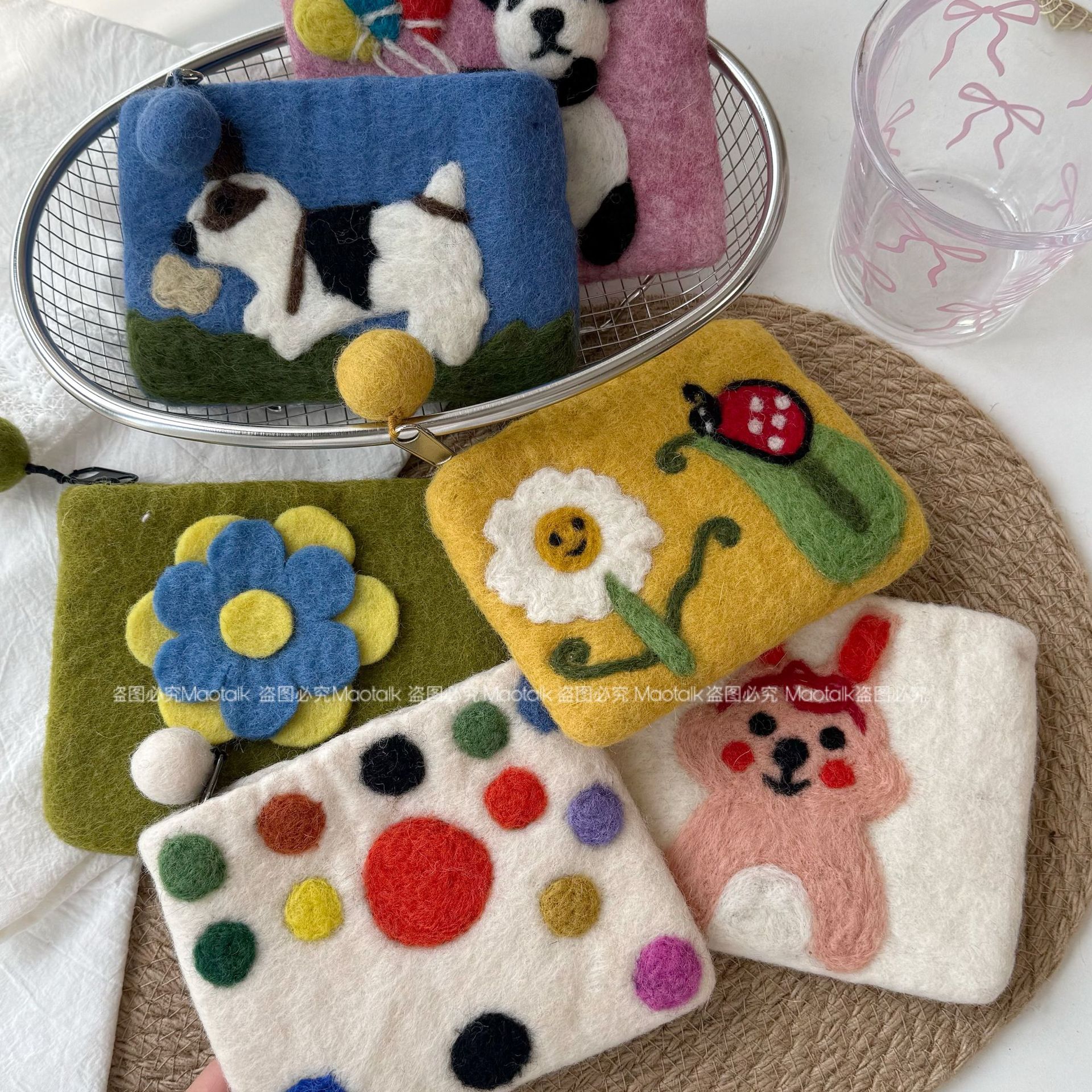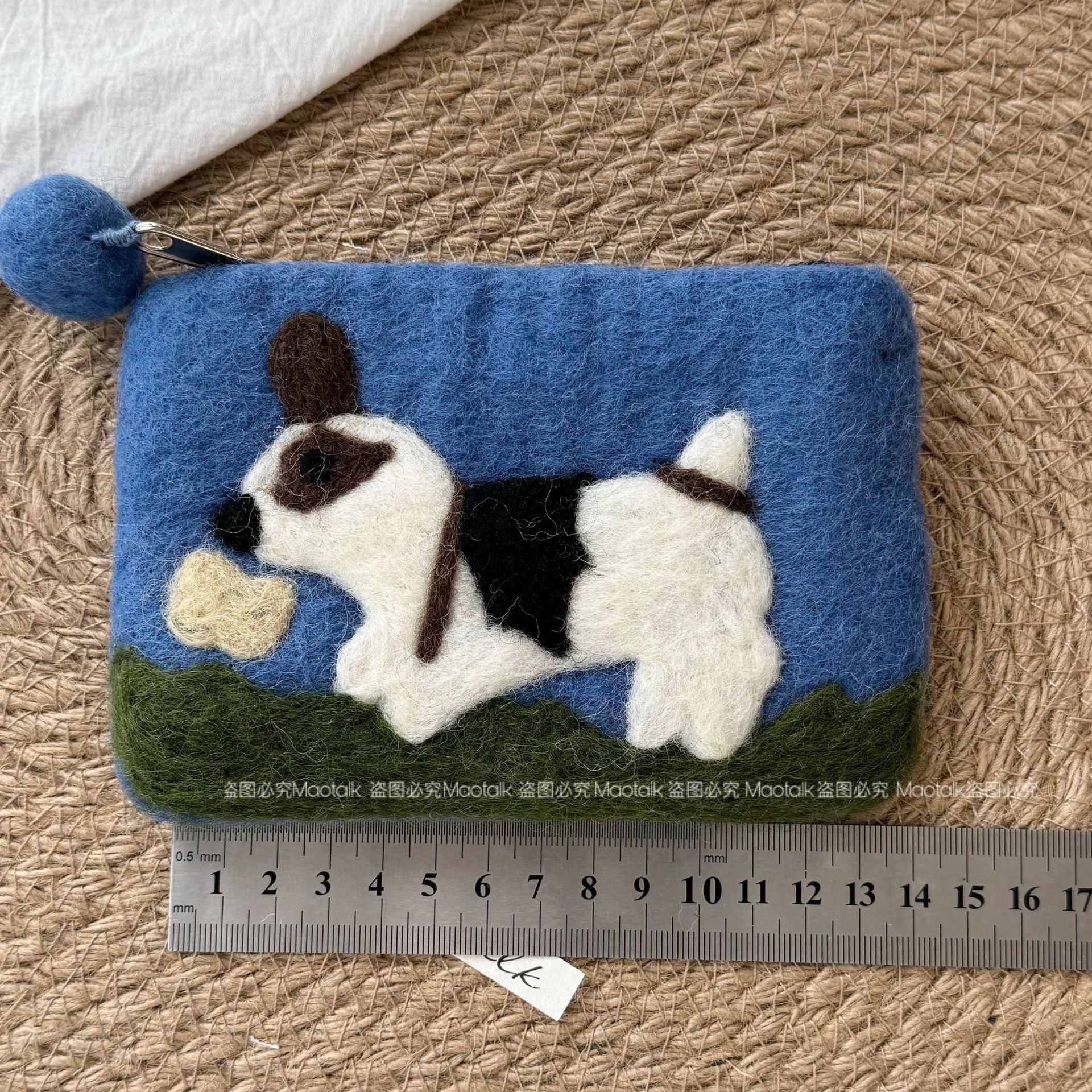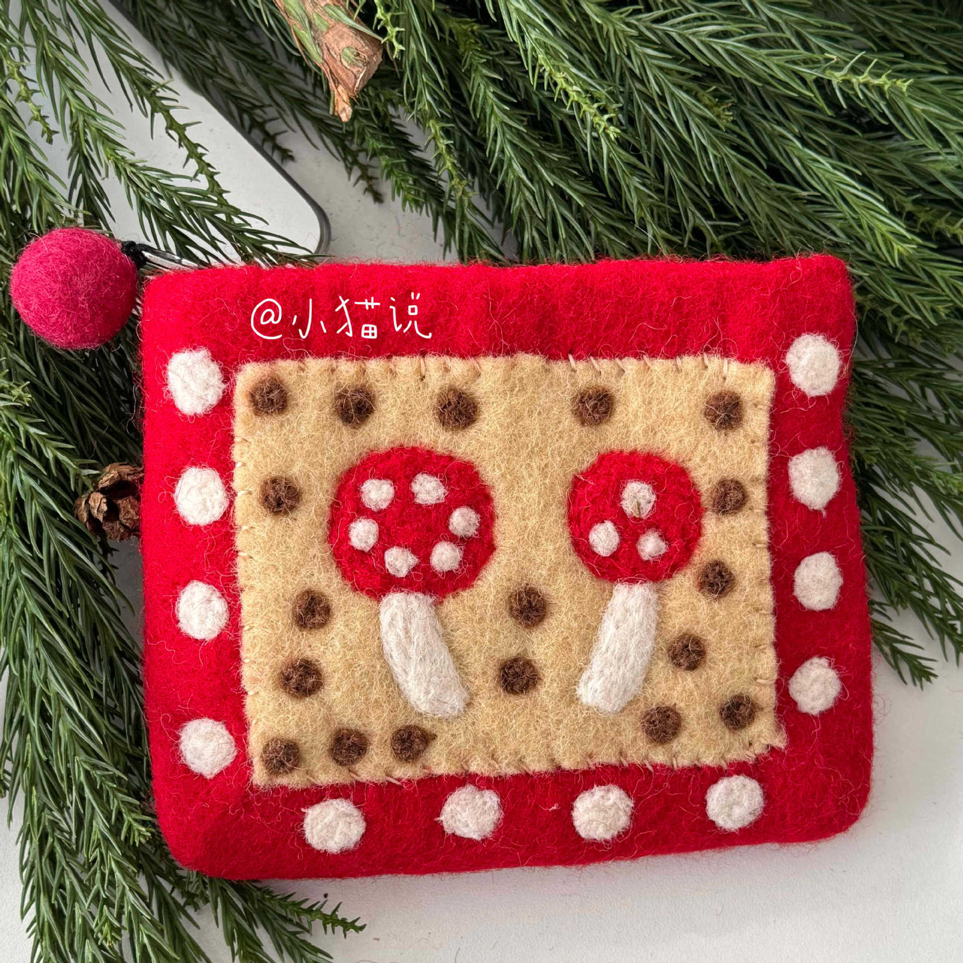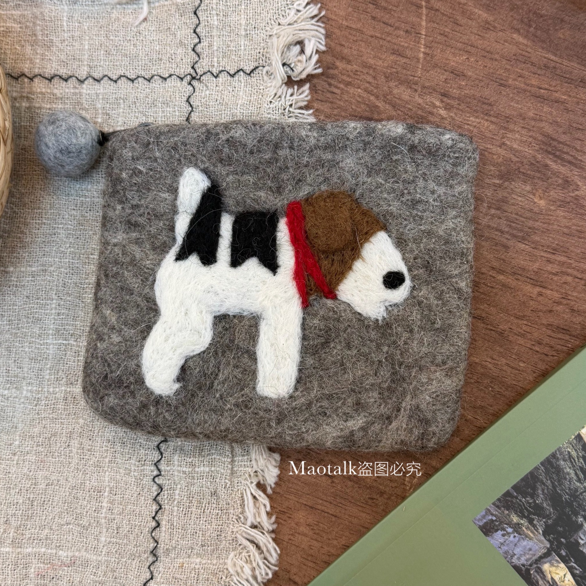 네팔 수제 양모 펠트 동전 지갑 카드 가방 귀여운 동물 강아지 지갑 비글 개 빨간 버섯 카드 가방스토어 가기