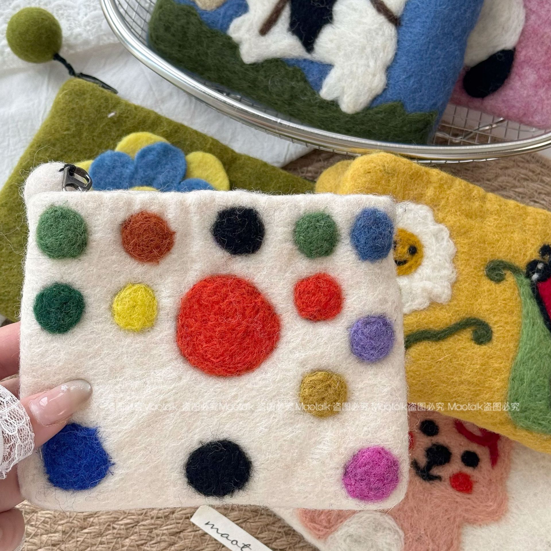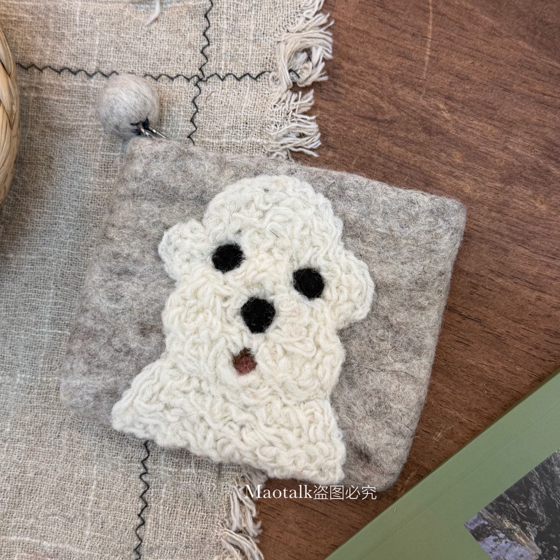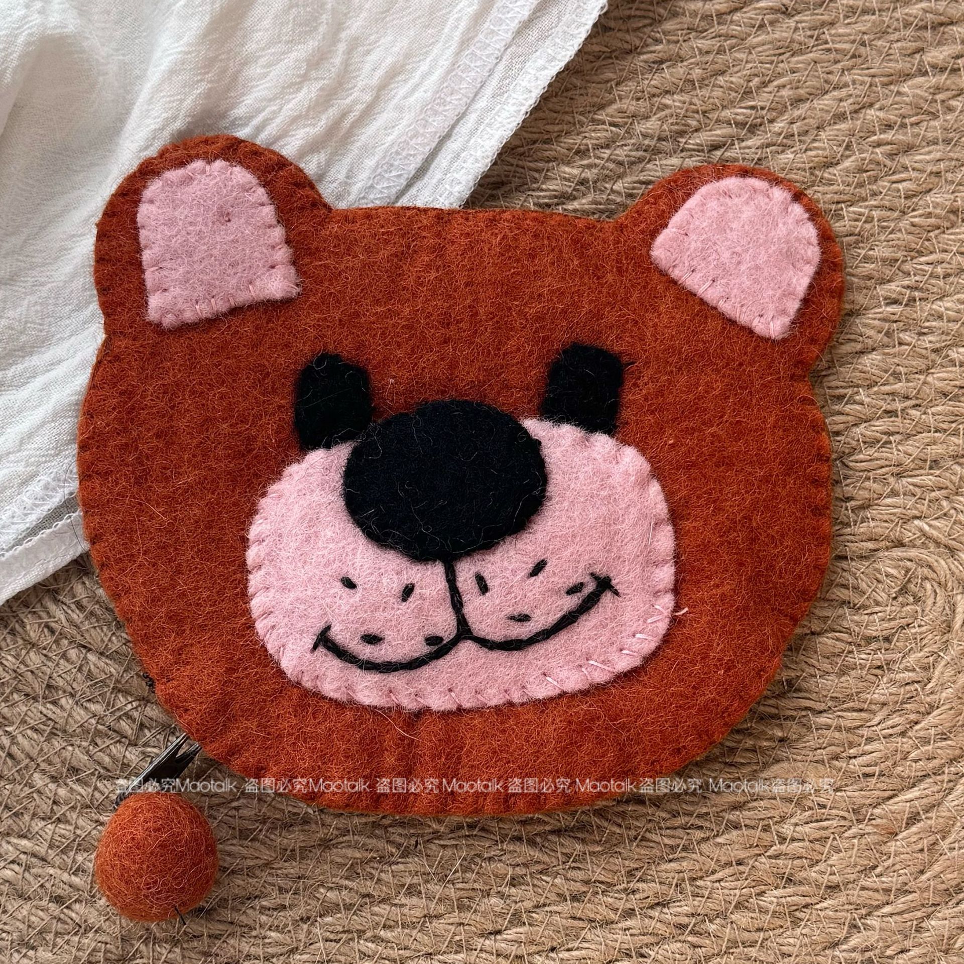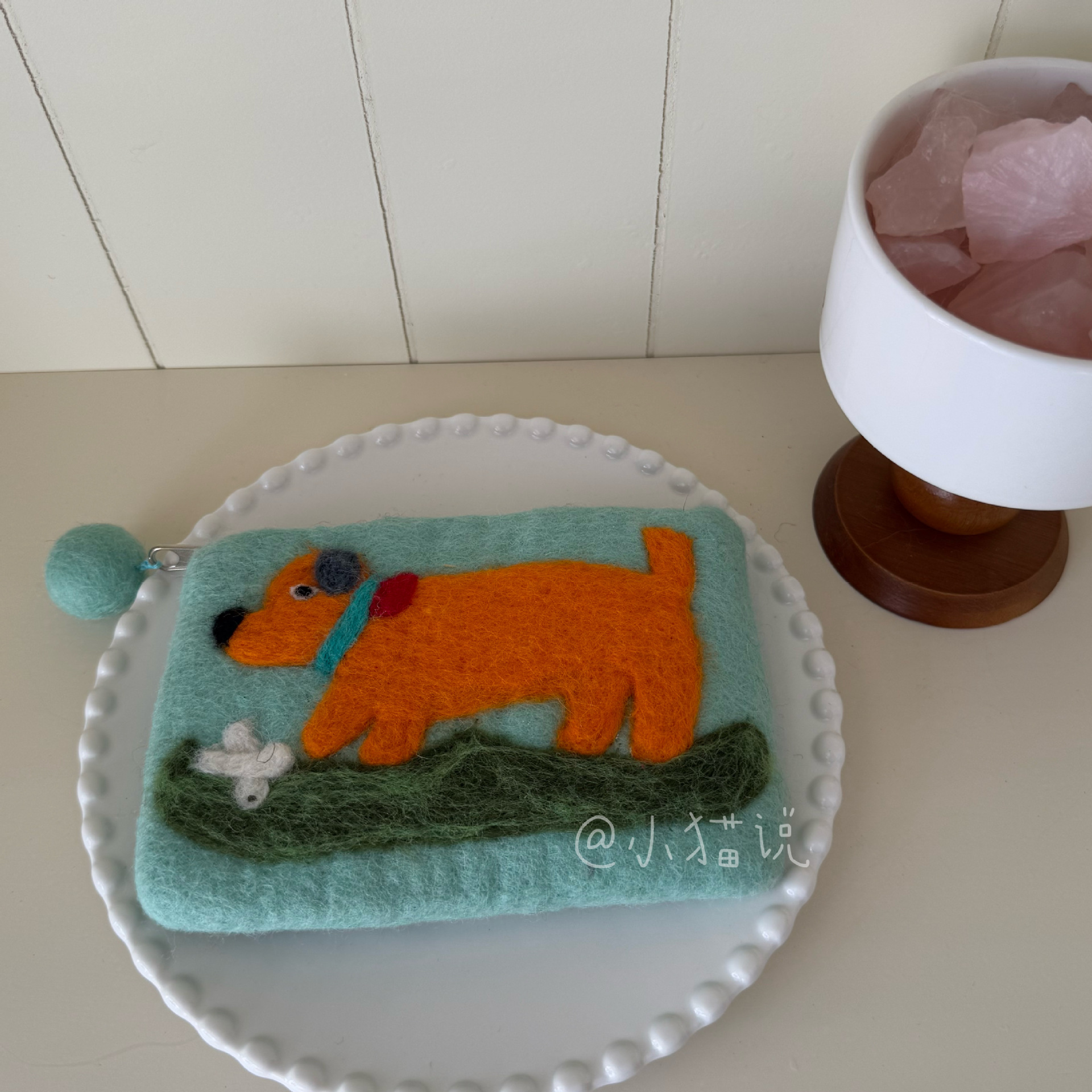 네팔 수제 양모 펠트 동전 지갑 카드 가방 귀여운 동물 강아지 지갑 비글 개 빨간 버섯 카드 가방스토어 가기