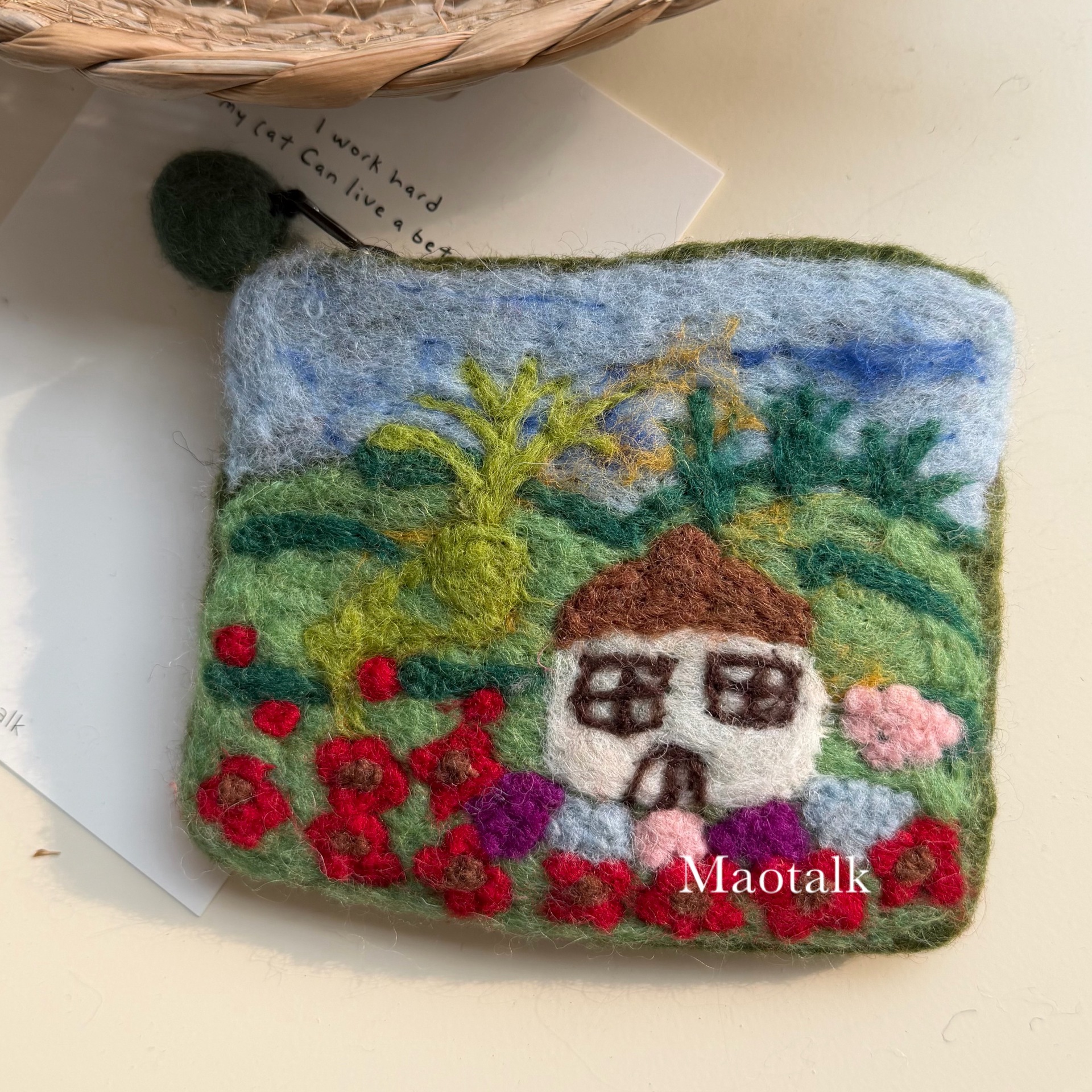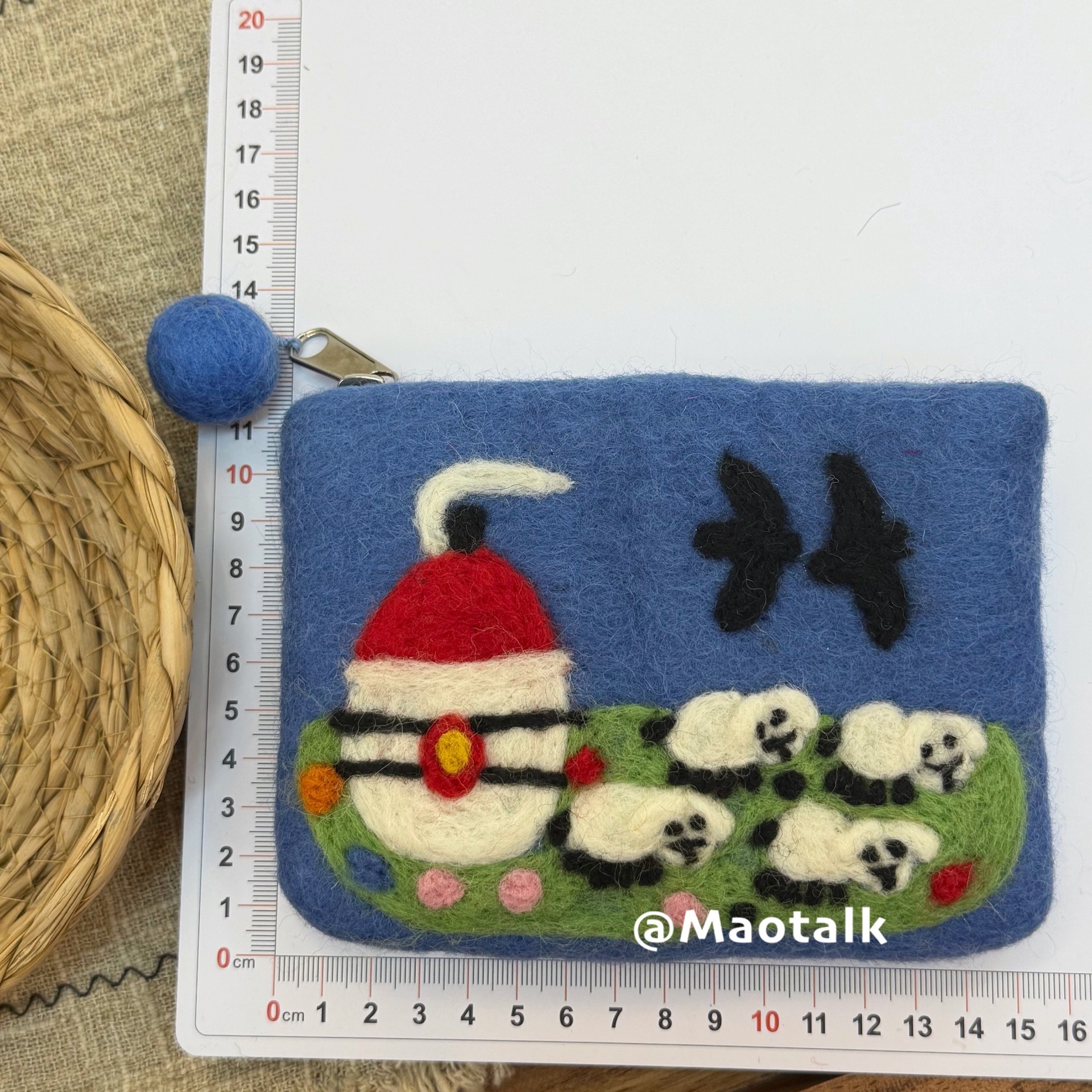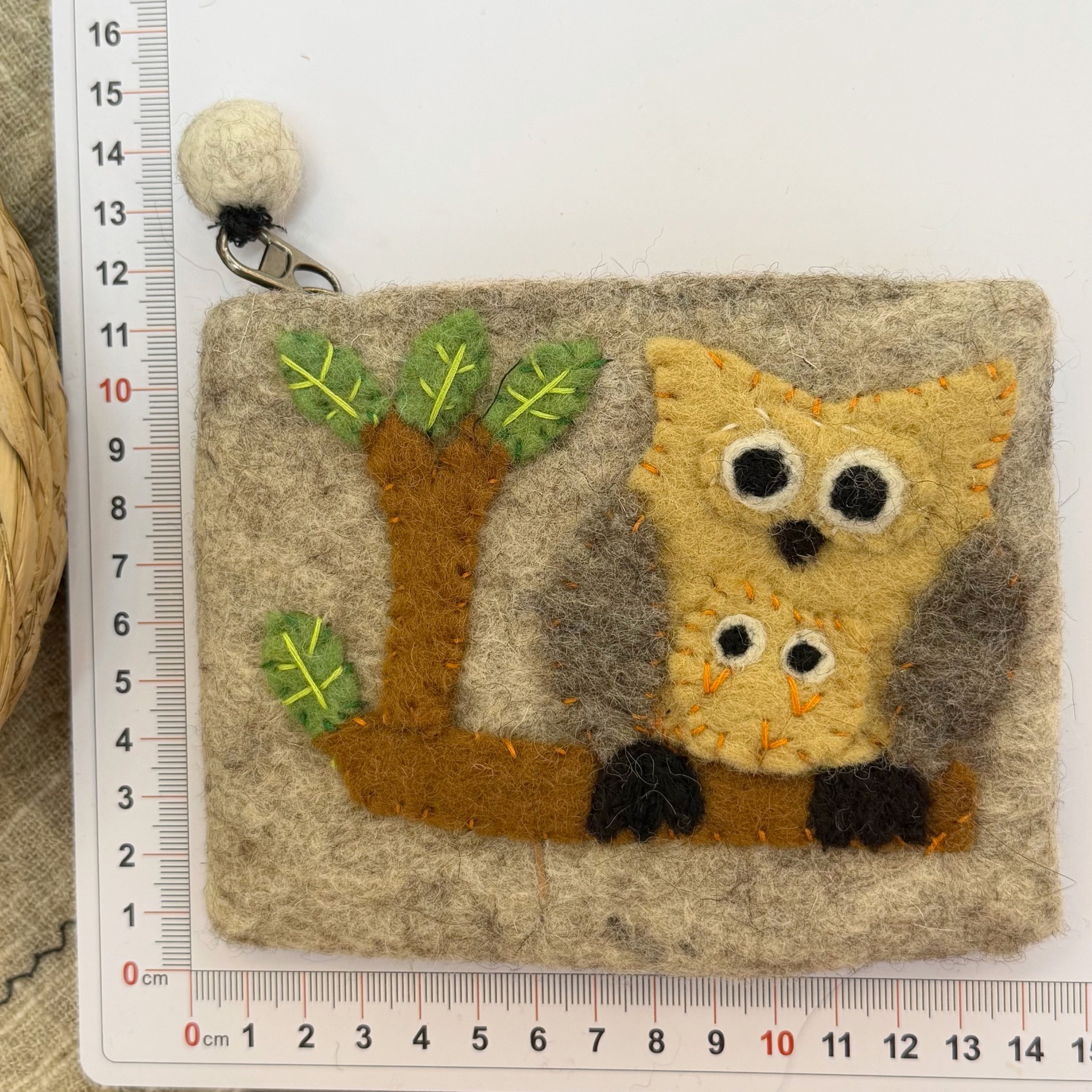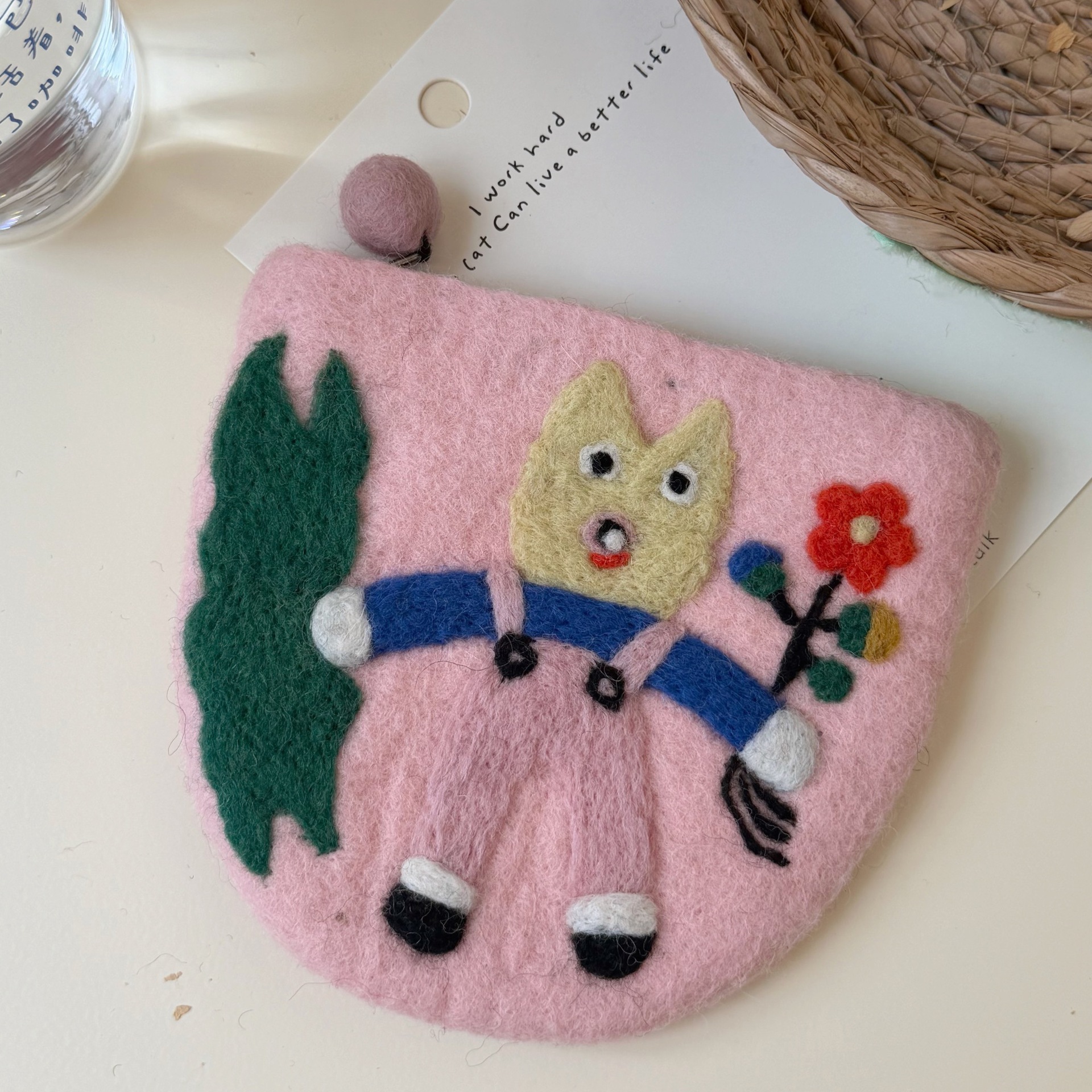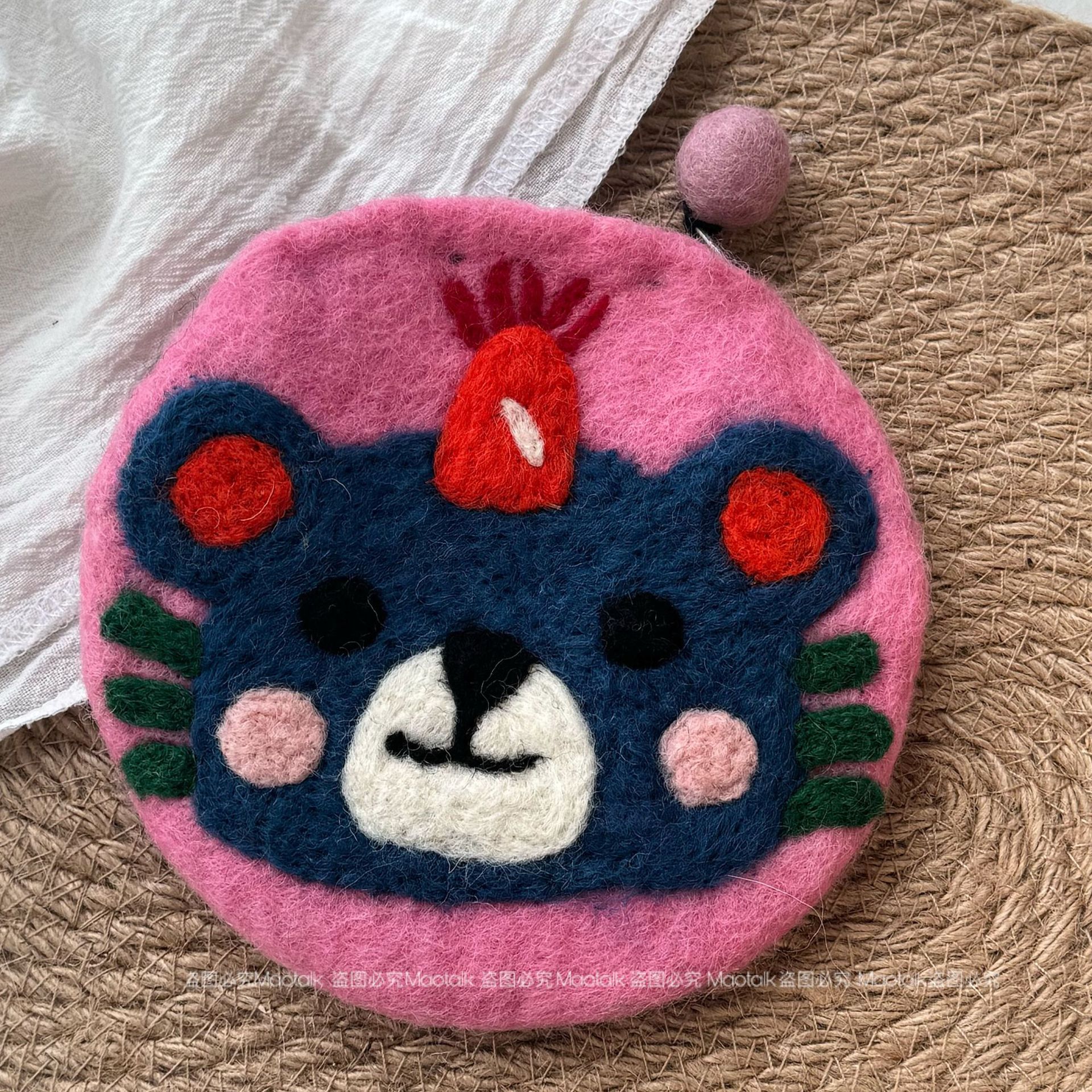 네팔 수제 양모 펠트 동전 지갑 카드 가방 귀여운 동물 강아지 지갑 비글 개 빨간 버섯 카드 가방스토어 가기