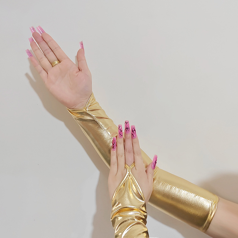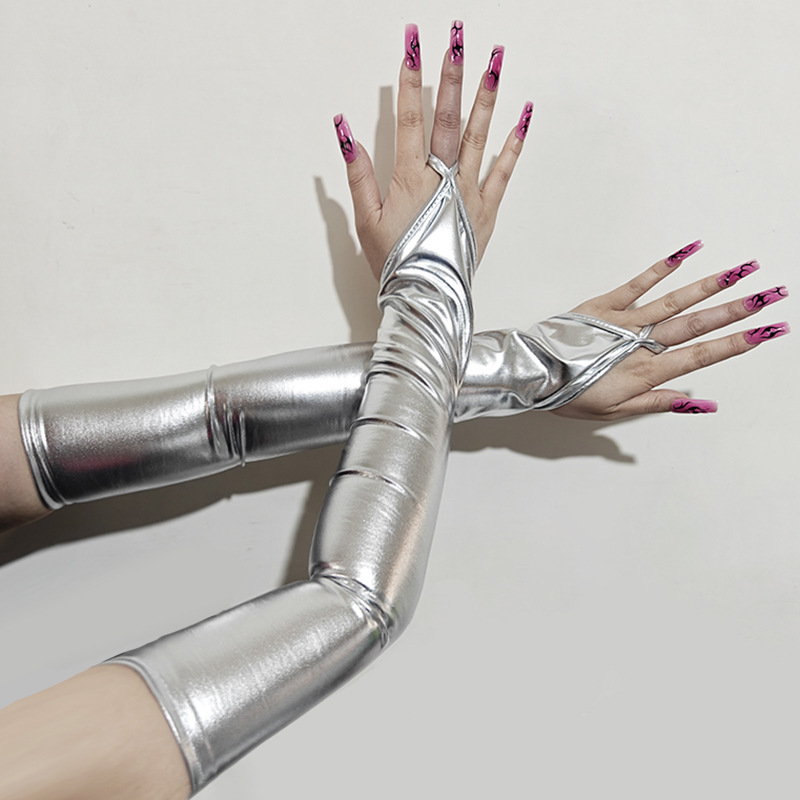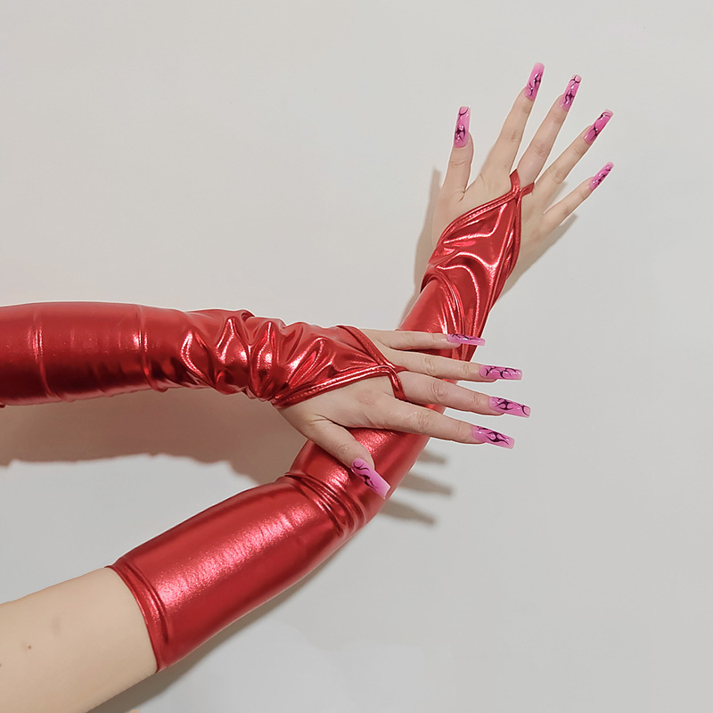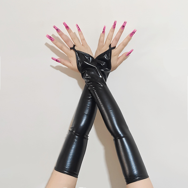 유럽과 미국 스타일의 48cm 특허 가죽 긴 스타일 여성의 섹시한 드레스 신부 파티 오페라 핑거리스 장갑 크로스보더