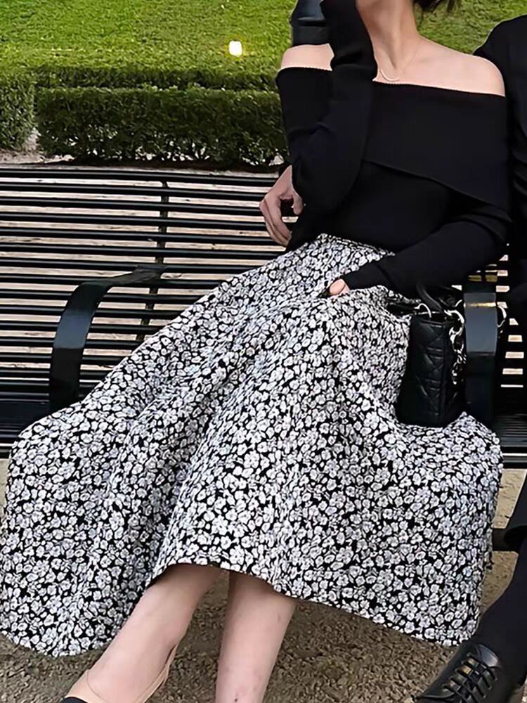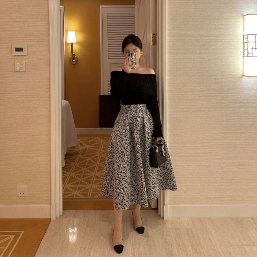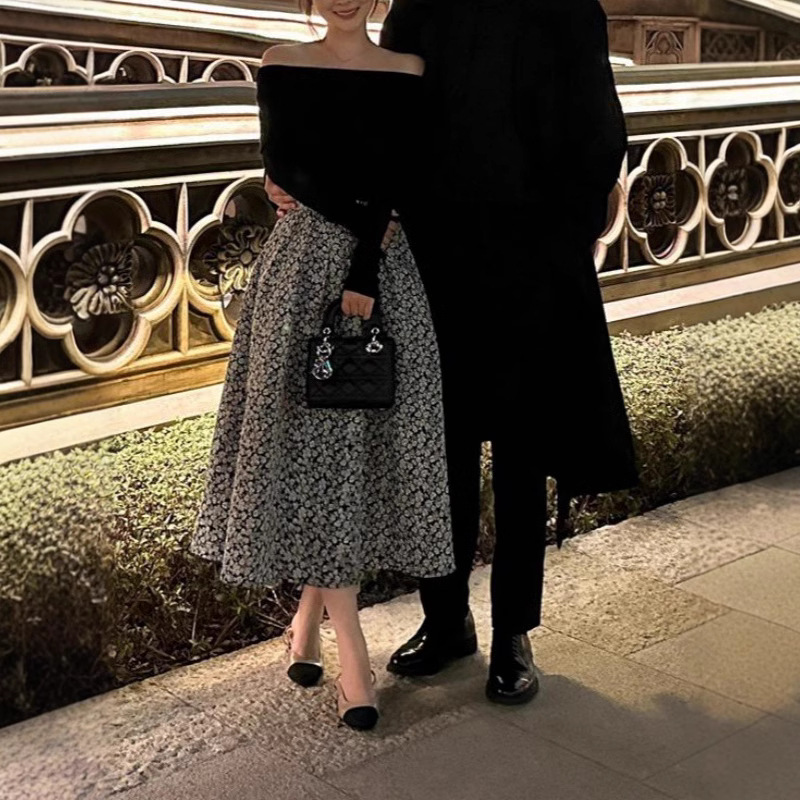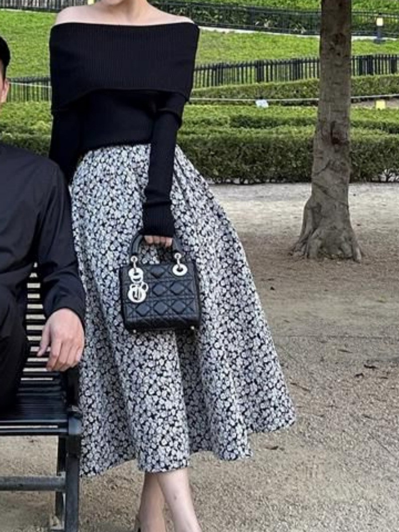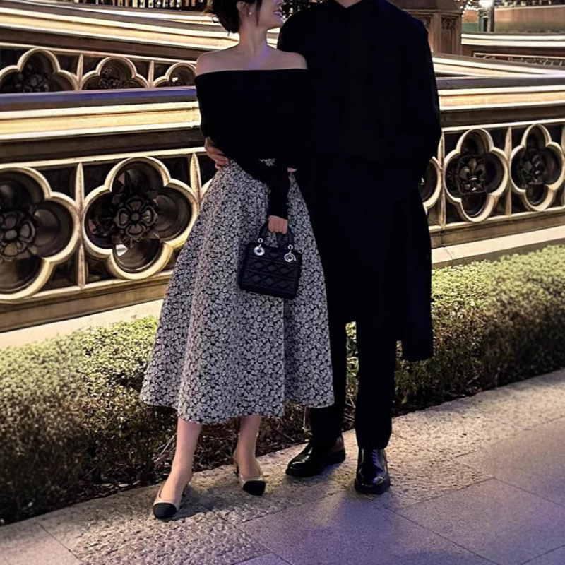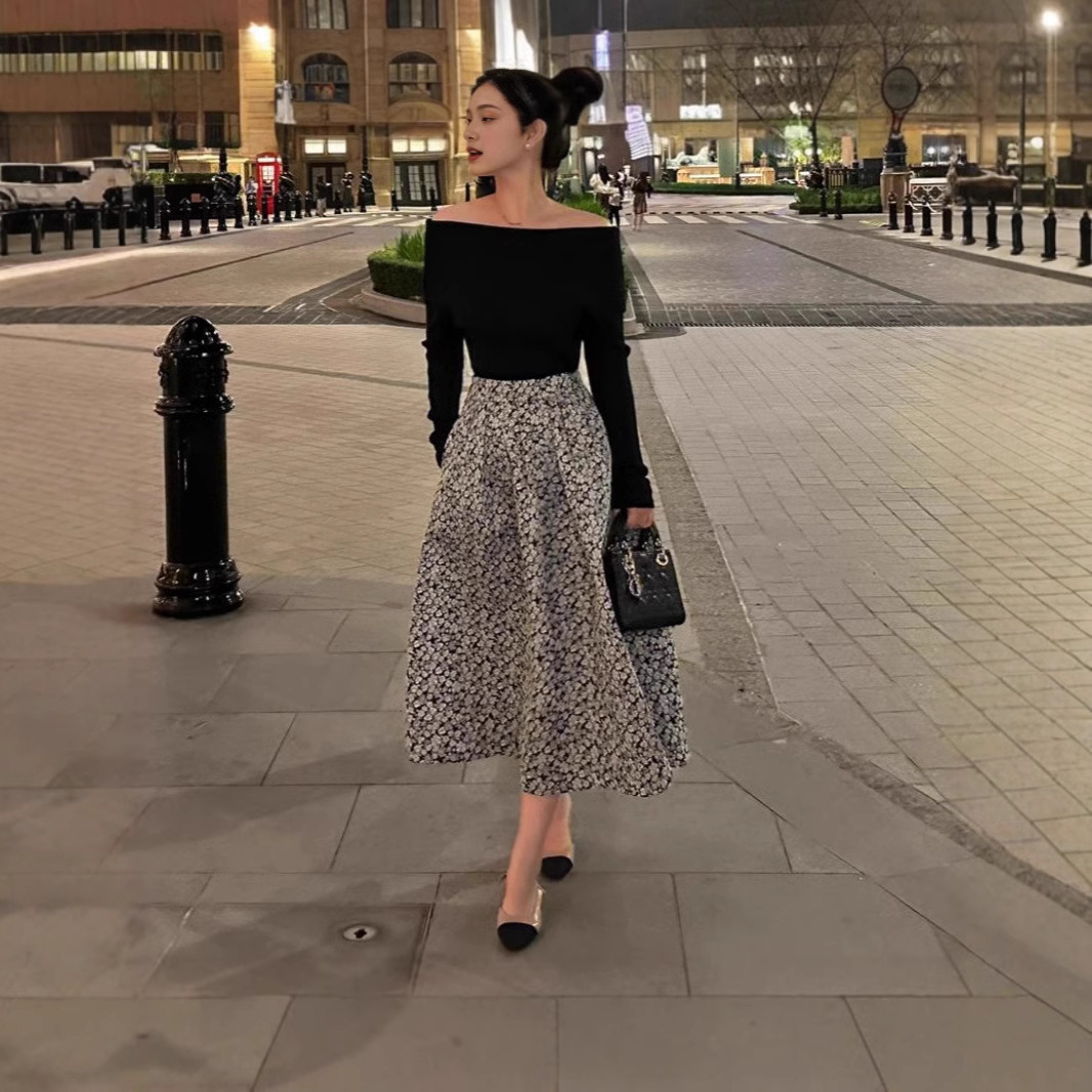 봄 2025 새로운 여성 패션 세트 작은 옷 칼라 블랙 탑 스커트 투피스 세트스토어 가기