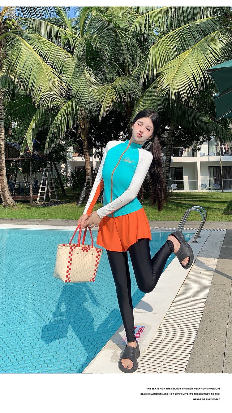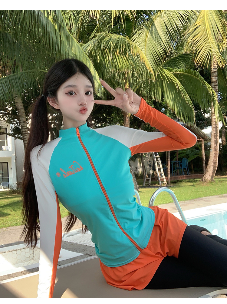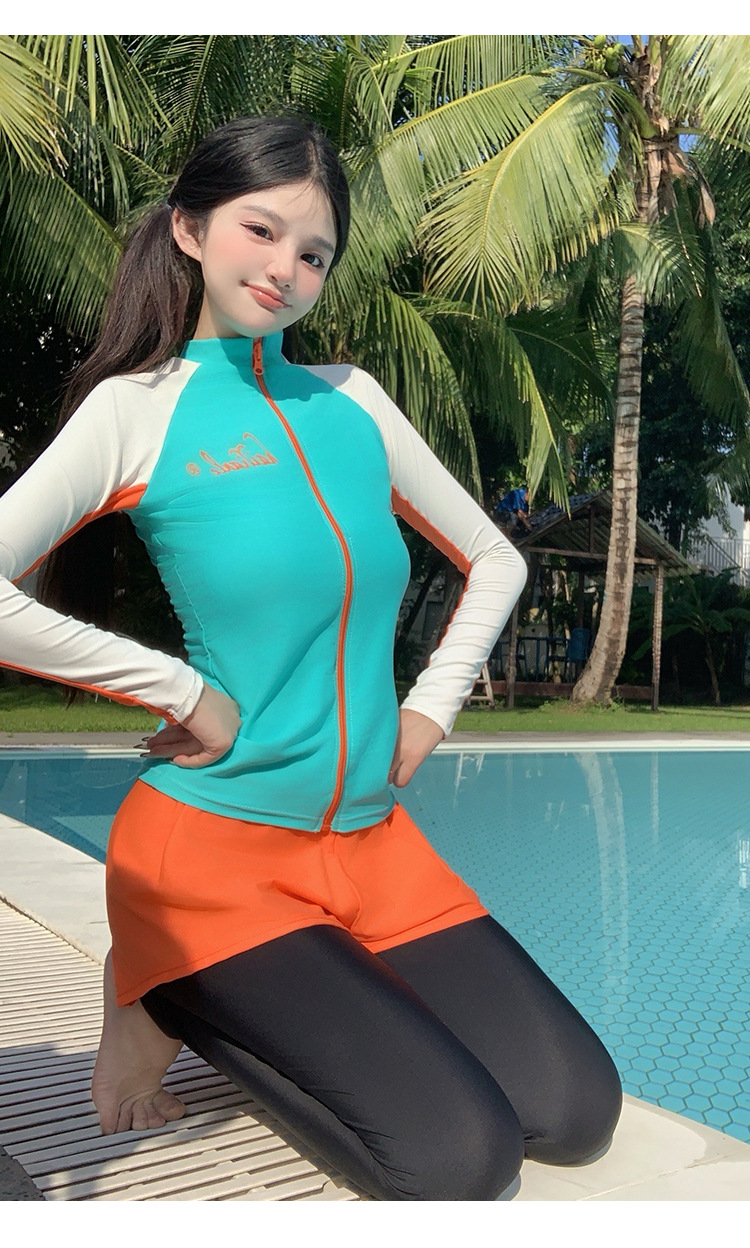 새로운 여성 스플릿 플랫 앵글 긴 소매 바지 정장 슬리밍 배꼽 커버 투피스 세트 잠수복 서핑 도매