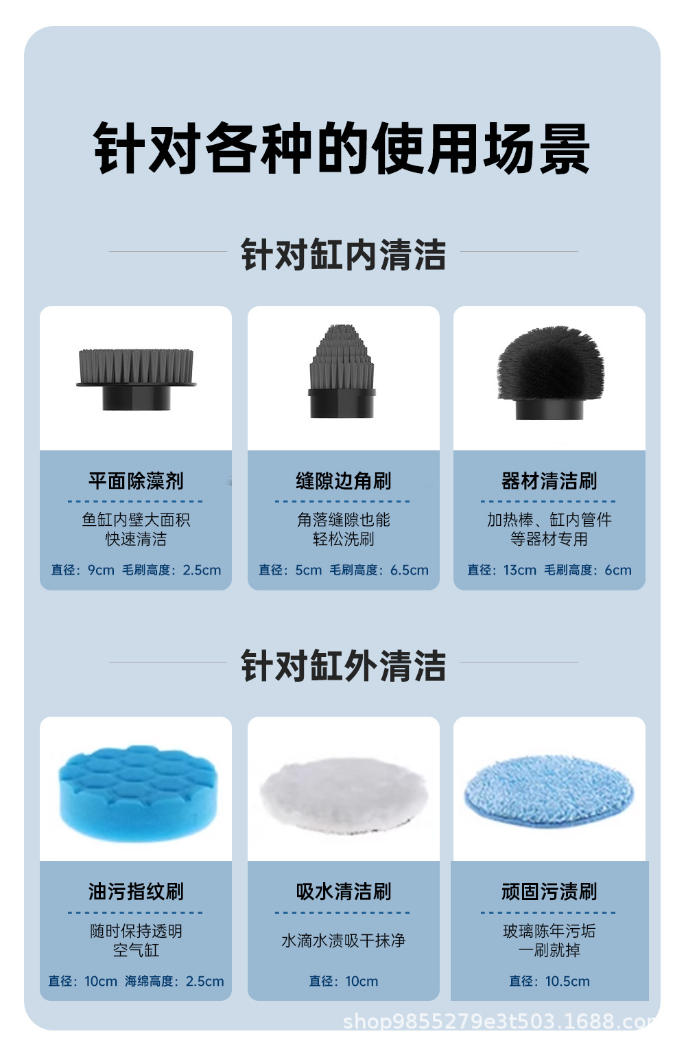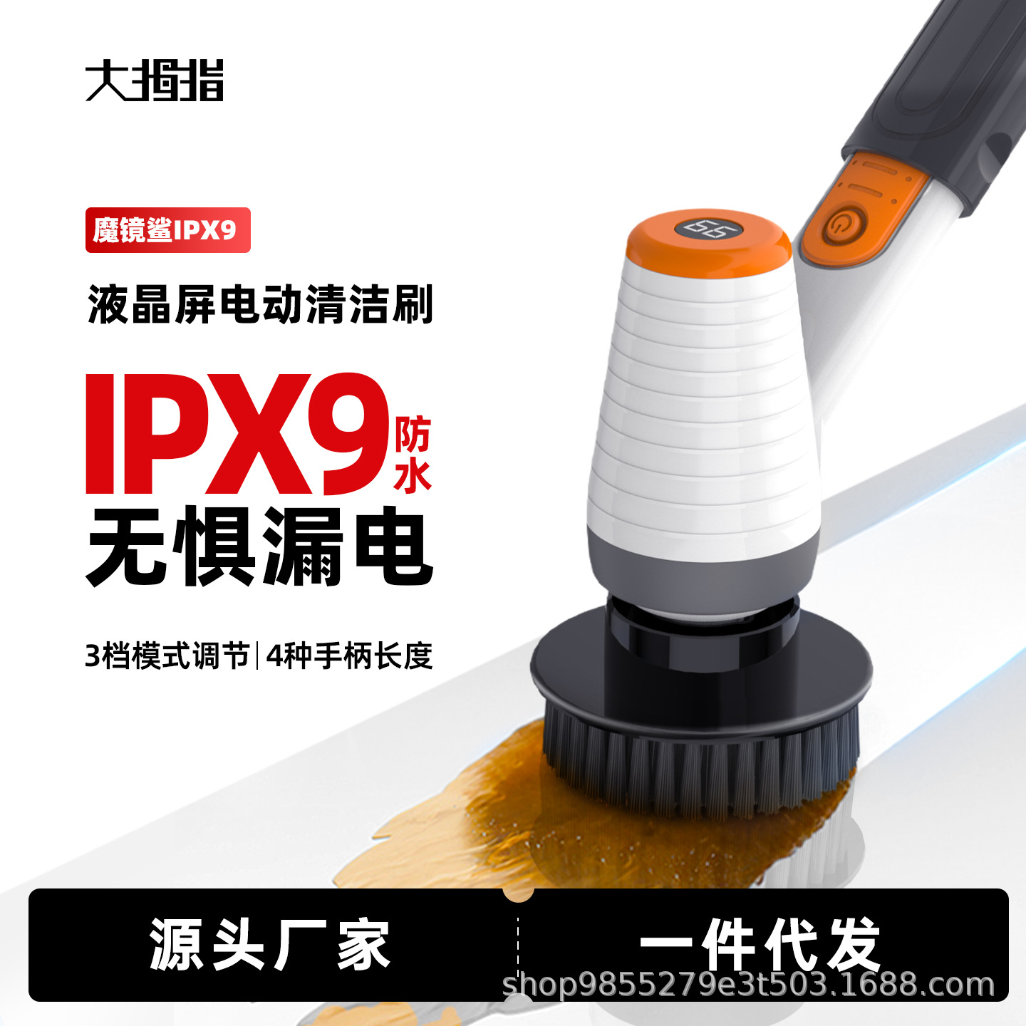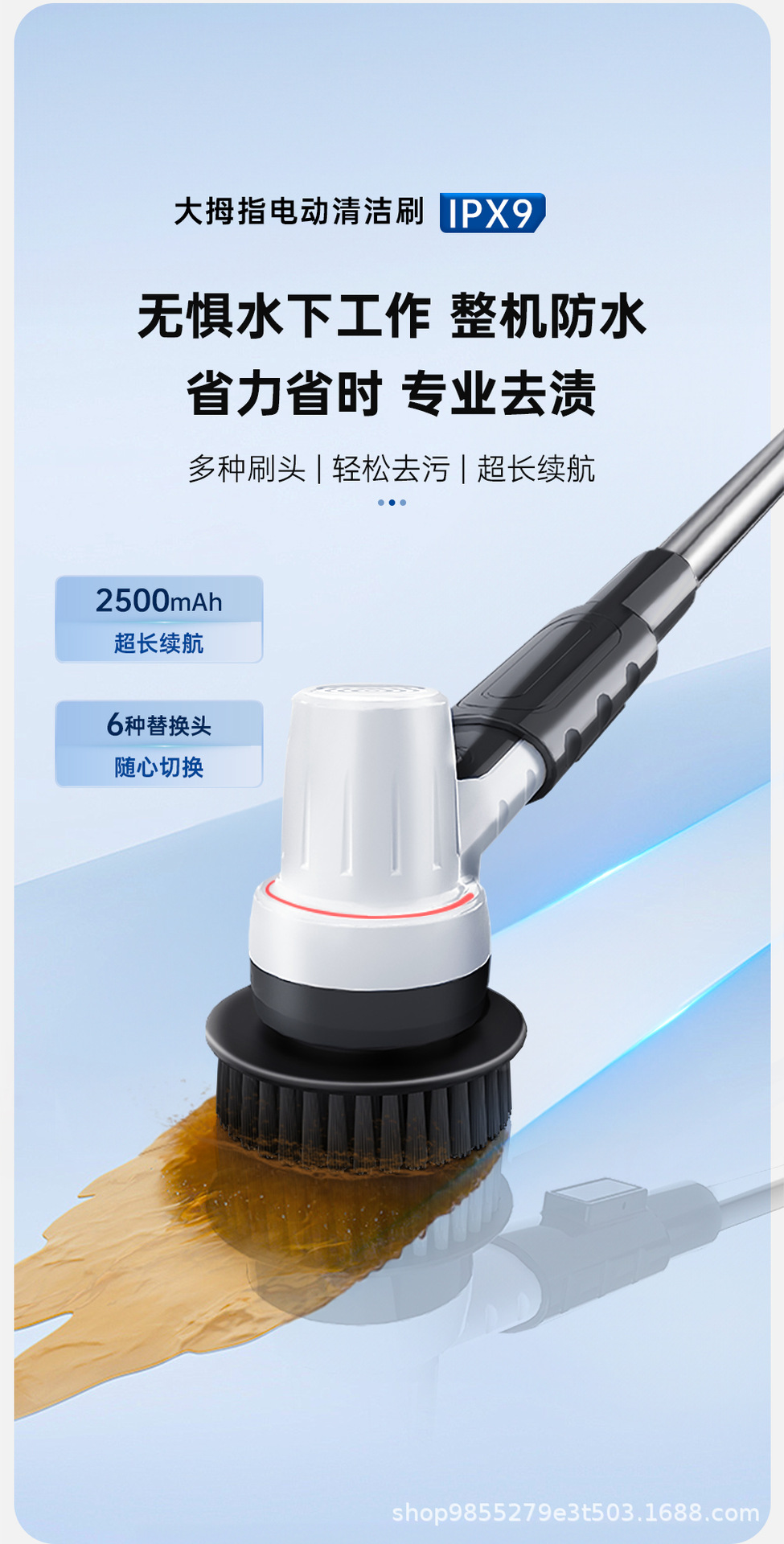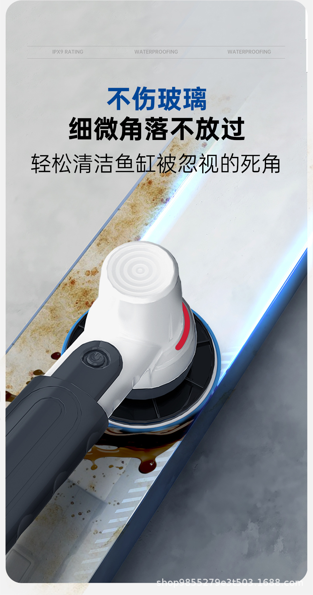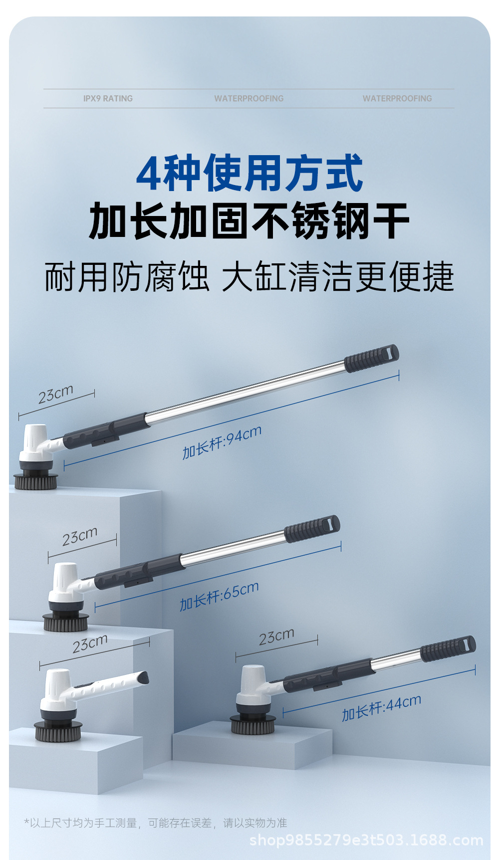 엄지손가락 방수 전기 수조 브러시 청소 도구, 사각지대 없음, 긴 손잡이 청소 도구, 내부 및 외부 벽 청소 도구